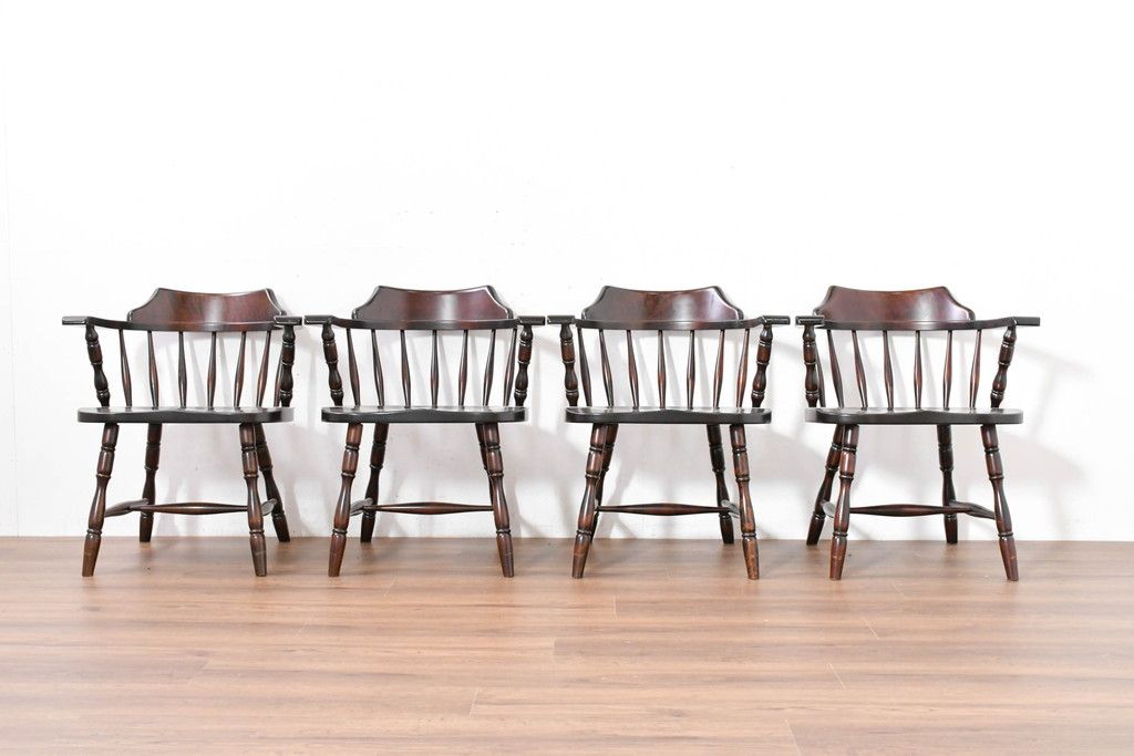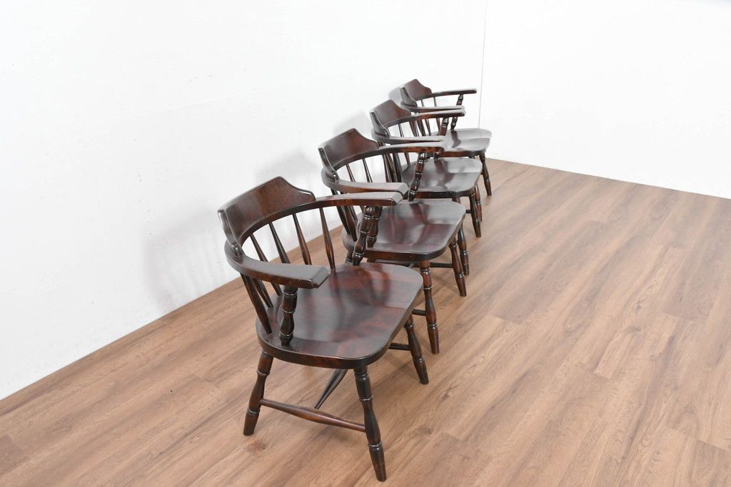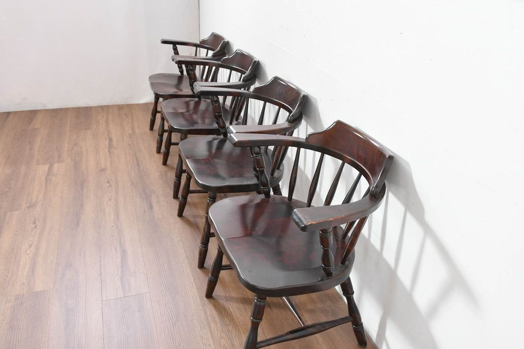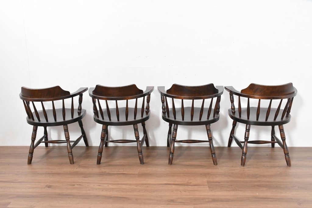 椅子・ベンチ> アームチェア > 中古 北海道民芸家具 希少な廃番品 HM630 格好良い佇まいが魅力のキャプテンチェア4脚セット(肘掛け椅子、アームチェア、イス、板座チェア、ダイニングチェア、バラ売り可能)(R-084306)