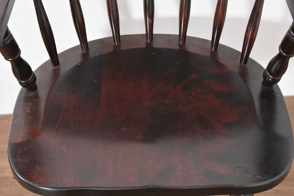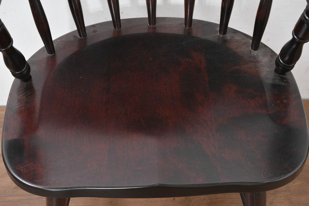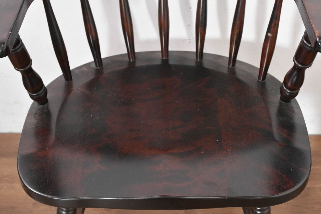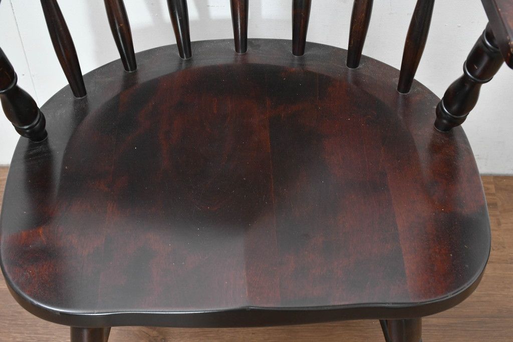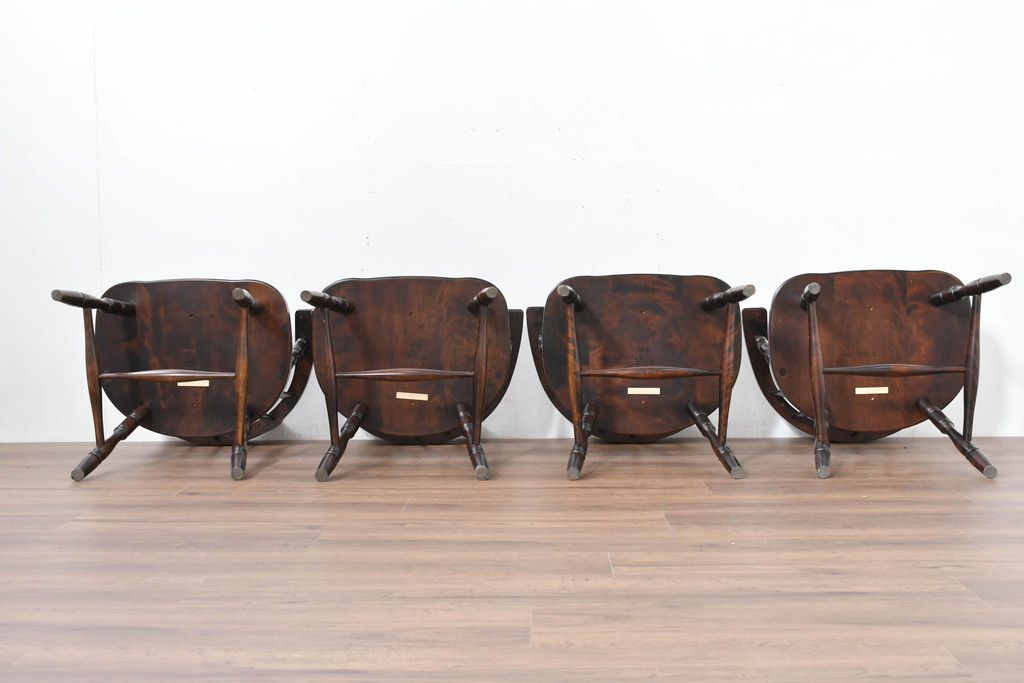 中古 北海道民芸家具 希少な廃番品 HM630 格好良い佇まいが魅力のキャプテンチェア4脚セット(肘掛け椅子、アームチェア、イス、板座チェア、ダイニングチェア、バラ売り可能)(R-084306)