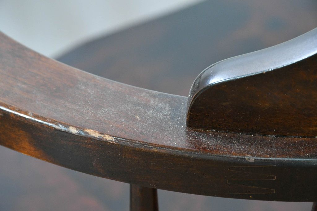 椅子・ベンチ> ダイニングチェア > 中古 北海道民芸家具 希少な廃番品 HM630 格好良い佇まいが魅力のキャプテンチェア4脚セット(肘掛け椅子、アームチェア、イス、板座チェア、ダイニングチェア、バラ売り可能)(R-084306)