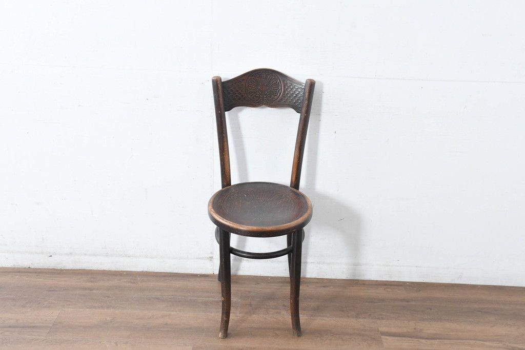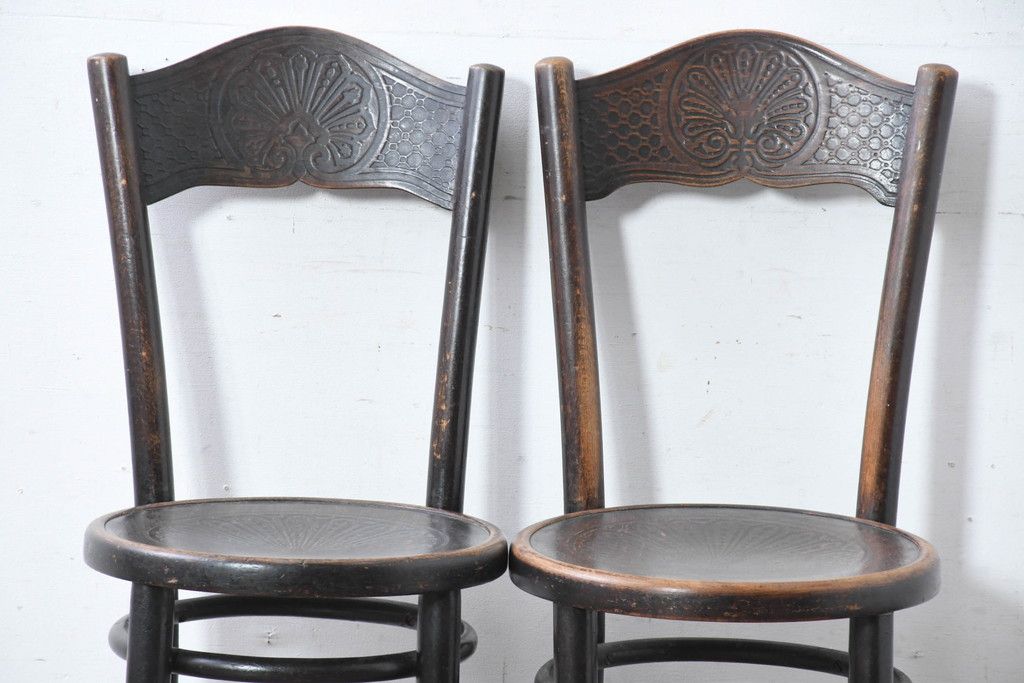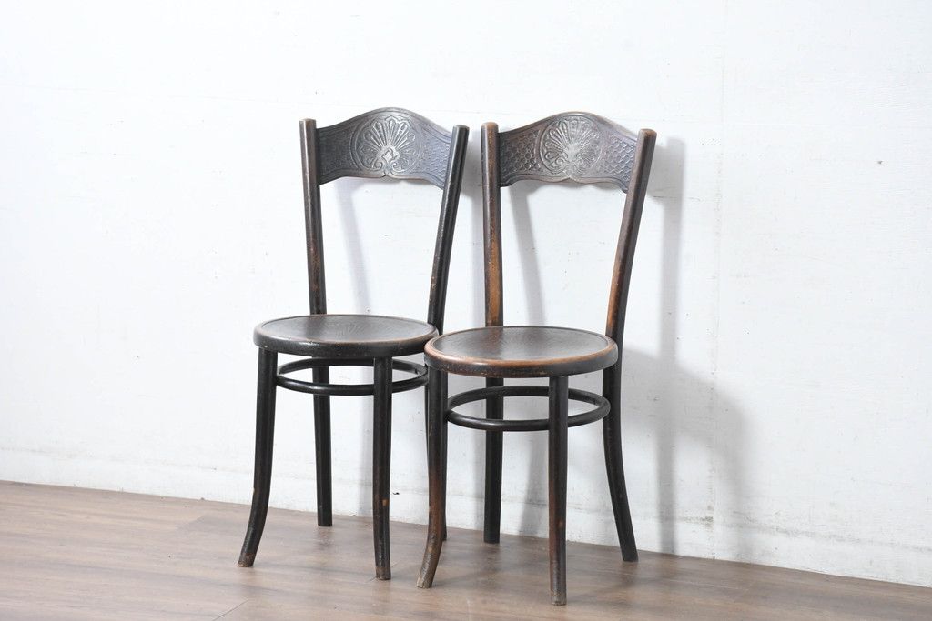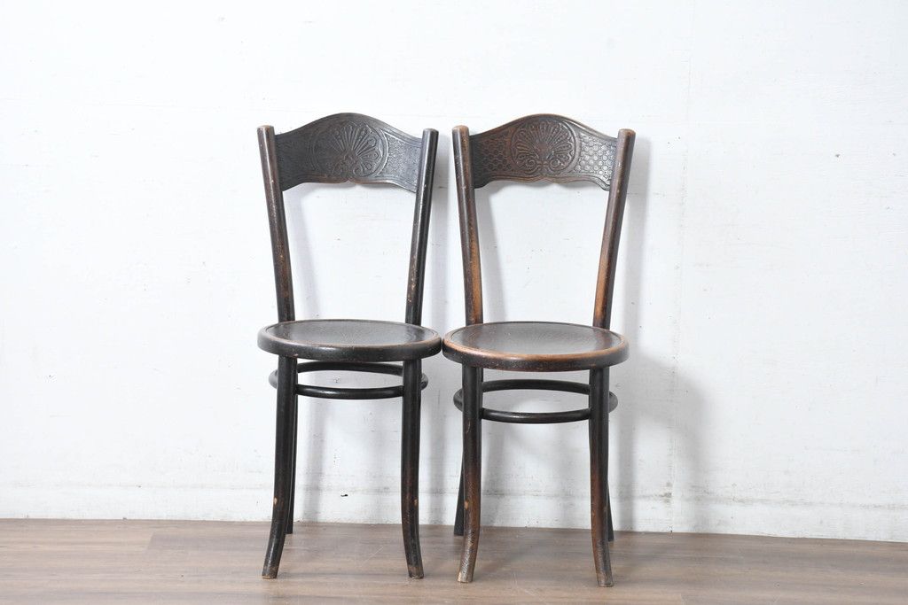 椅子・ベンチ> ダイニングチェア > ヨーロッパアンティーク 背もたれの彫刻が優美な西洋アンティークのベントウッドチェア2脚セット(ダイニングチェア、椅子、イス、バラ売り可能)(R-084308)