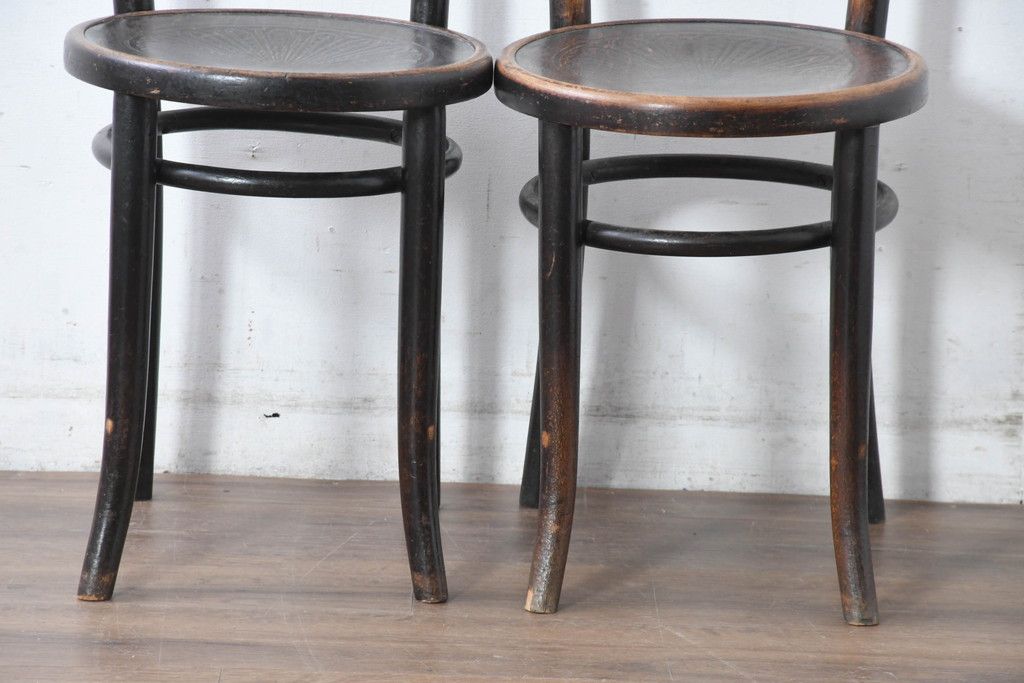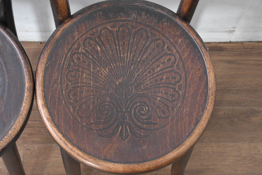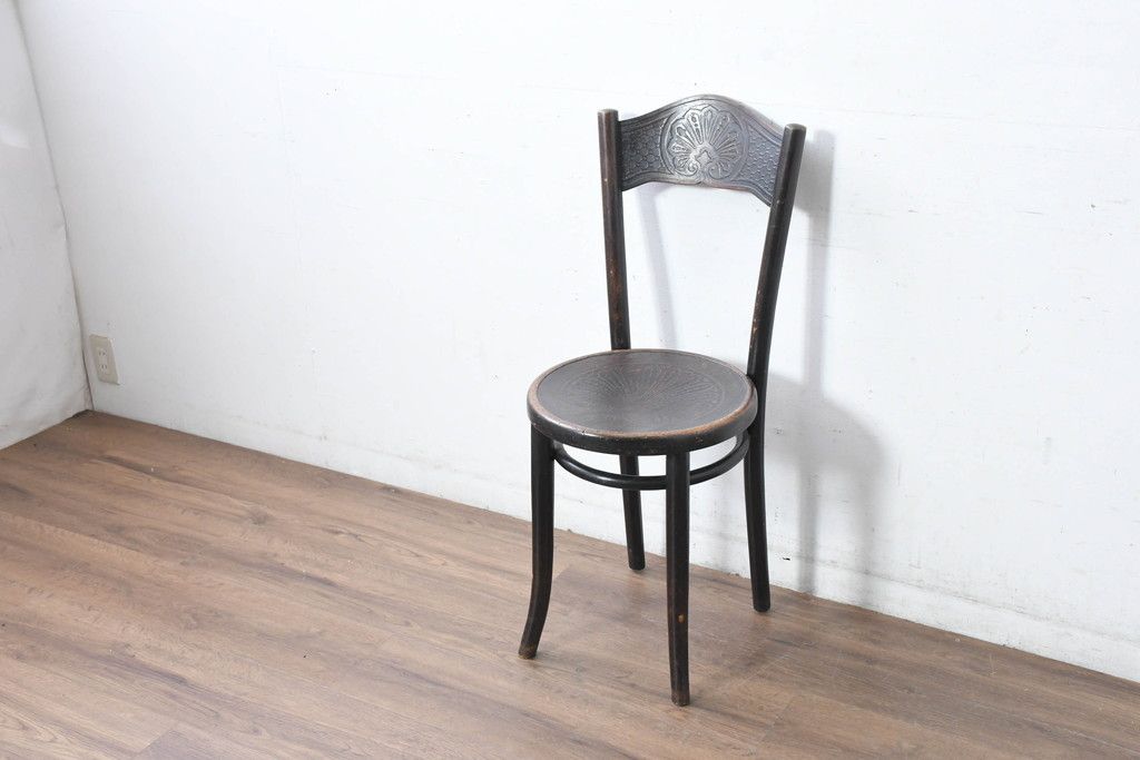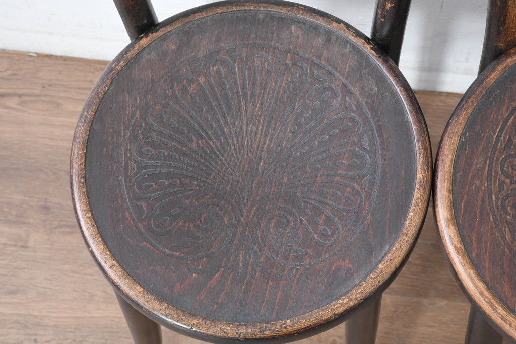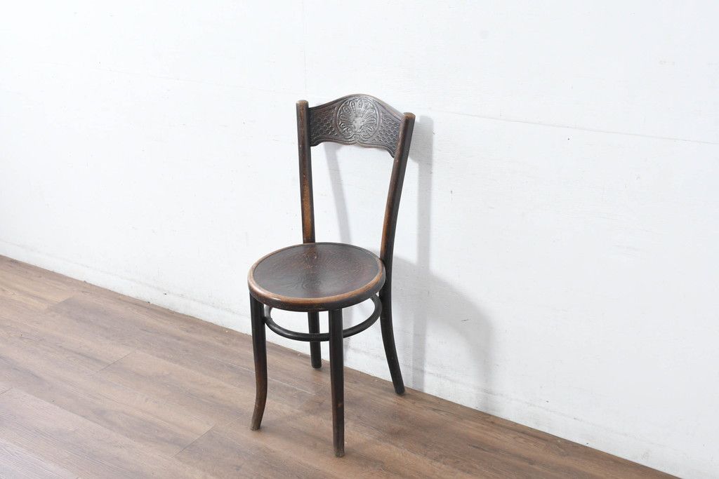 椅子・ベンチ> ダイニングチェア > ヨーロッパアンティーク 背もたれの彫刻が優美な西洋アンティークのベントウッドチェア2脚セット(ダイニングチェア、椅子、イス、バラ売り可能)(R-084308)
