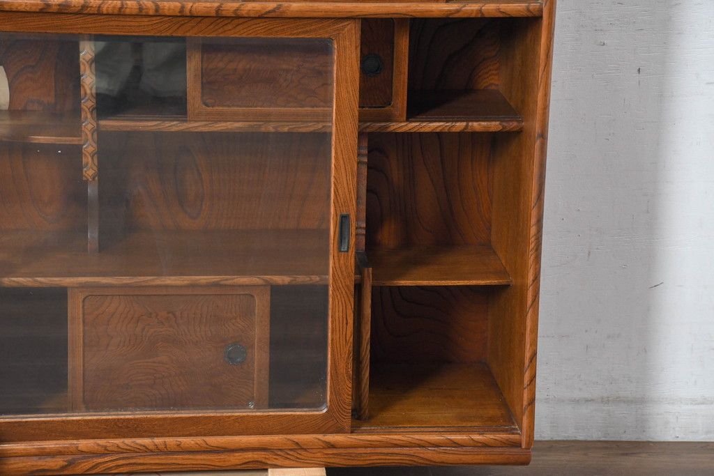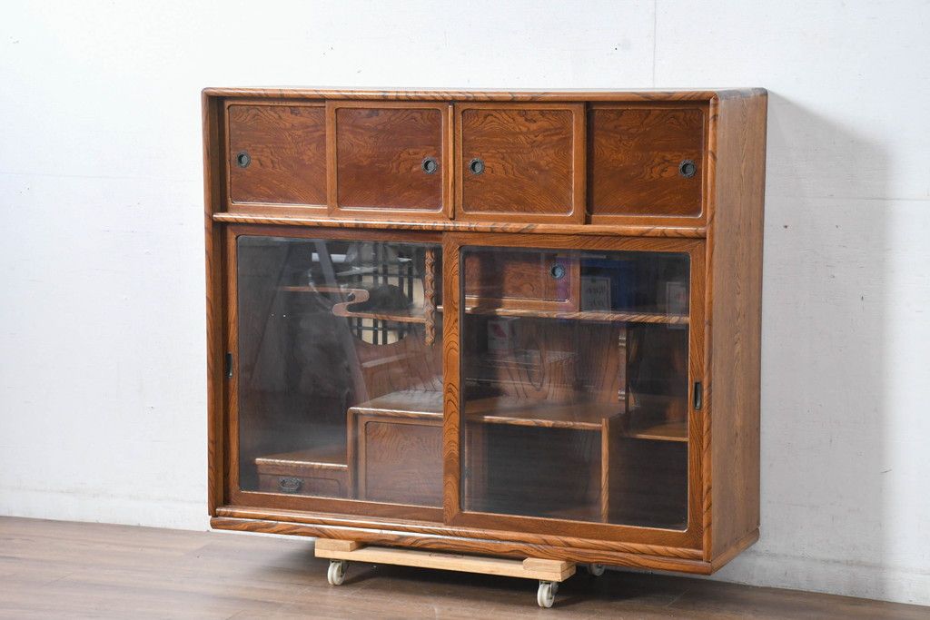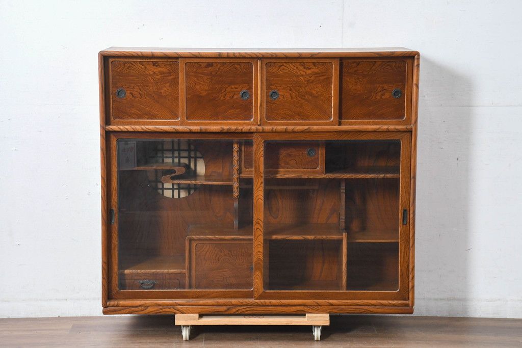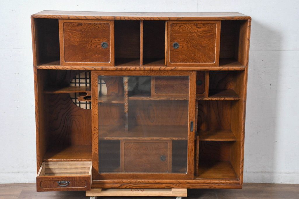 中古 美品 国産 職人手作り品 欅(ケヤキ)材 杢目の素敵なサイドキャビネット(収納棚、戸棚、茶棚、飾り棚)(R-084313)