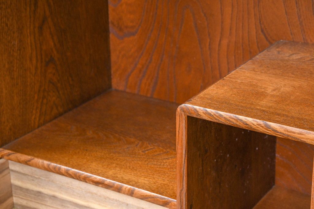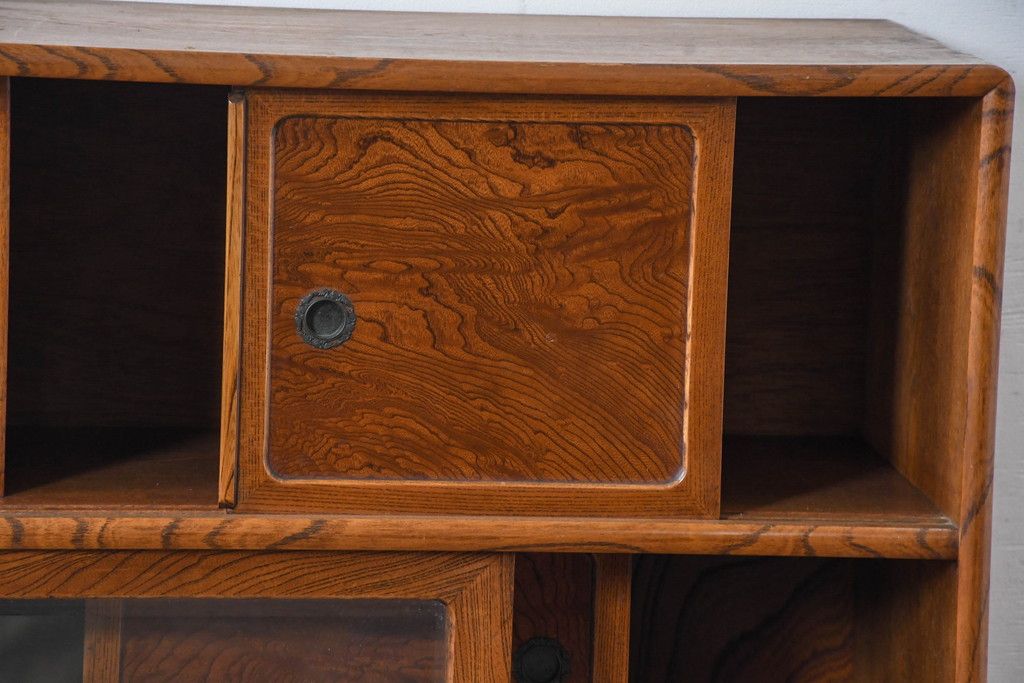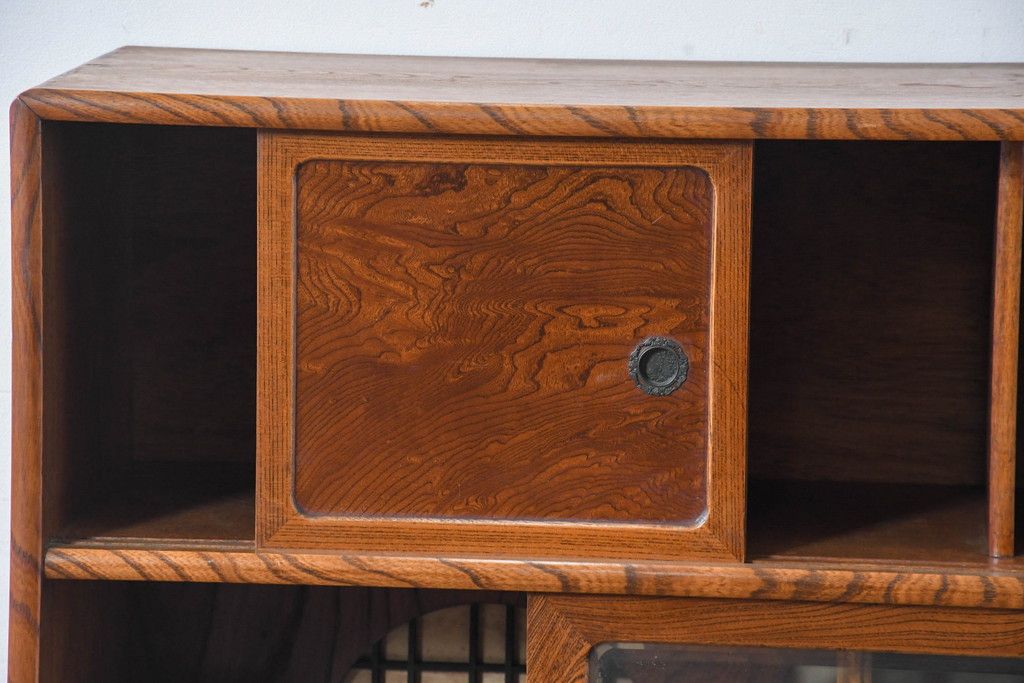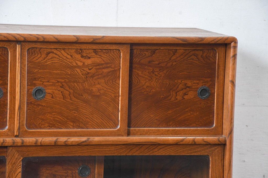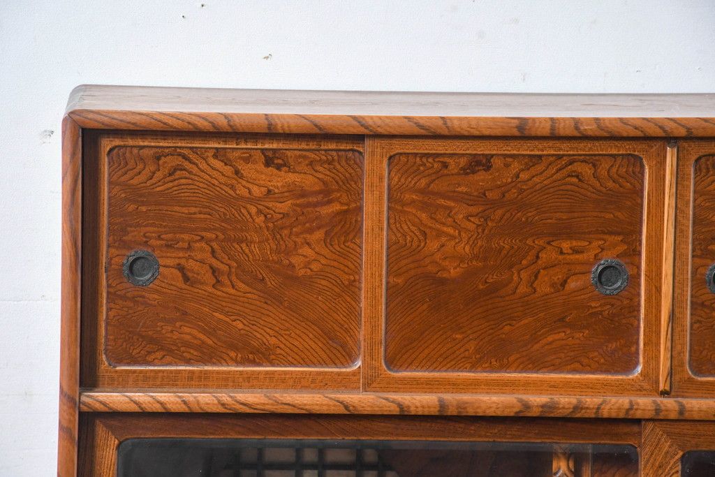 和箪笥> 茶箪笥・茶棚 > 中古 美品 国産 職人手作り品 欅(ケヤキ)材 杢目の素敵なサイドキャビネット(収納棚、戸棚、茶棚、飾り棚)(R-084313)