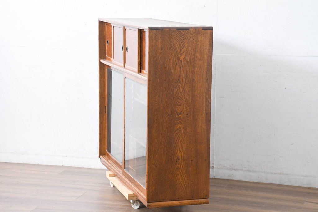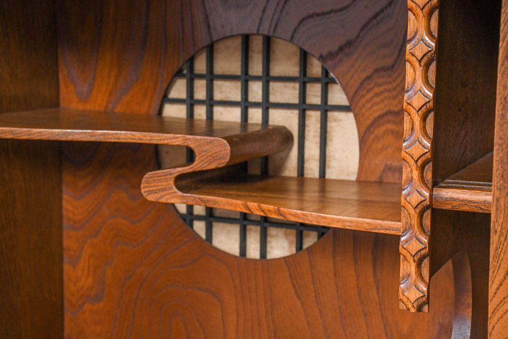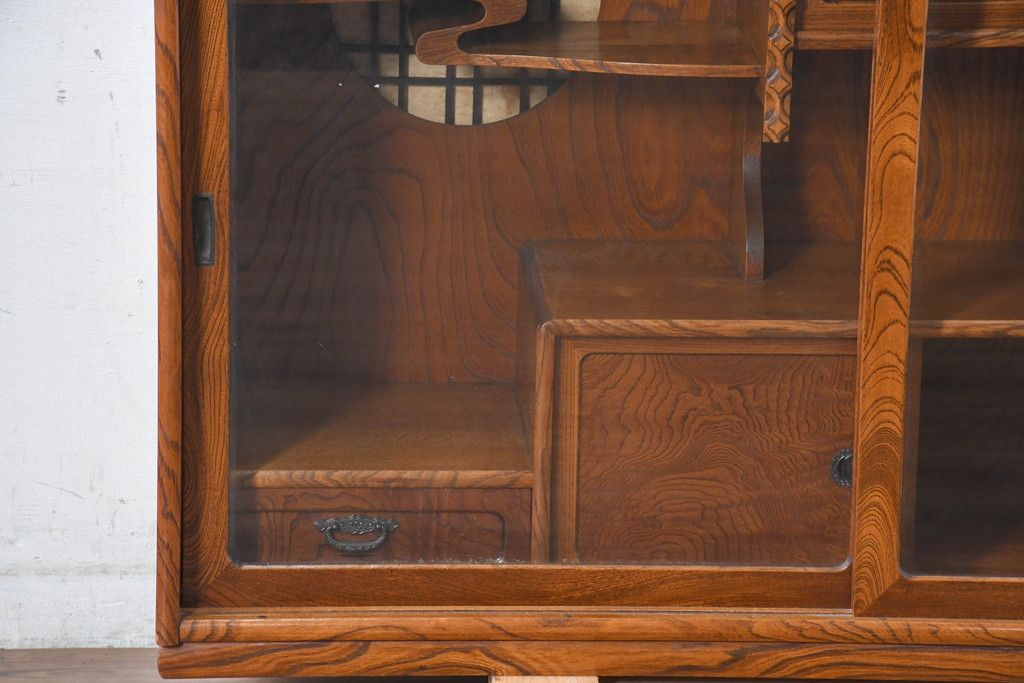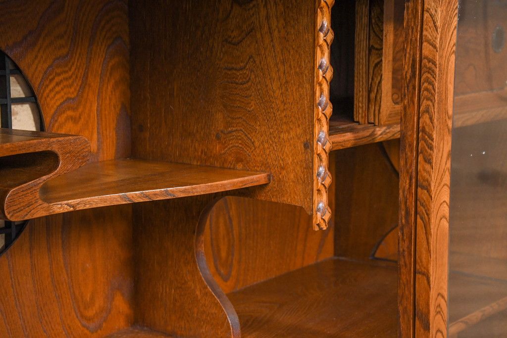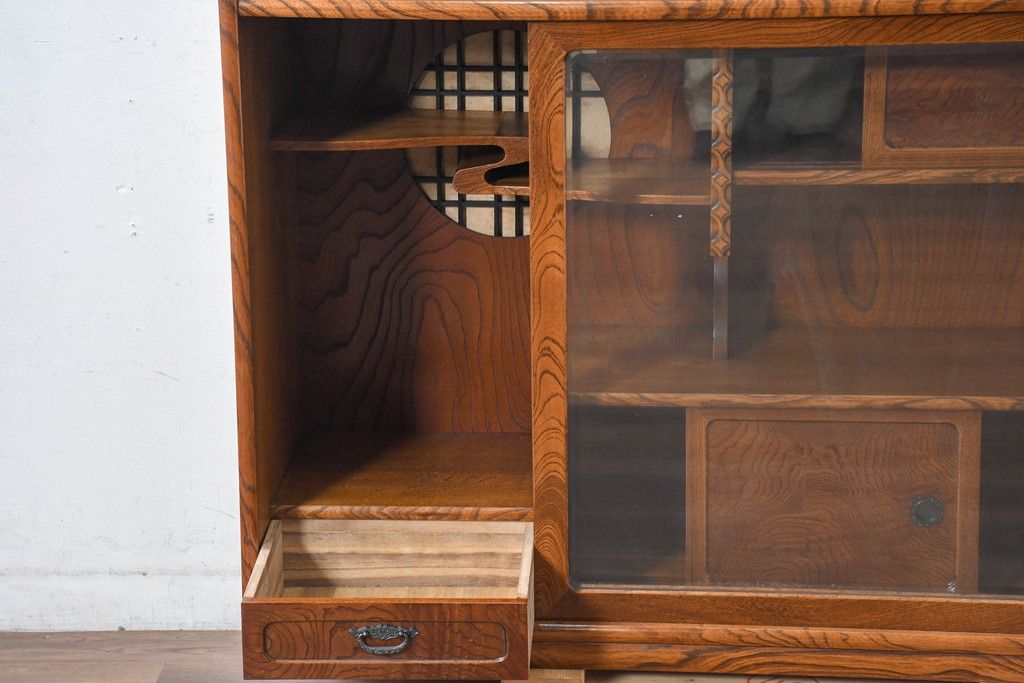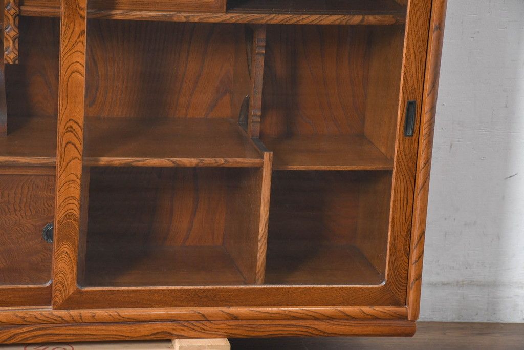 和箪笥> 茶箪笥・茶棚 > 中古 美品 国産 職人手作り品 欅(ケヤキ)材 杢目の素敵なサイドキャビネット(収納棚、戸棚、茶棚、飾り棚)(R-084313)