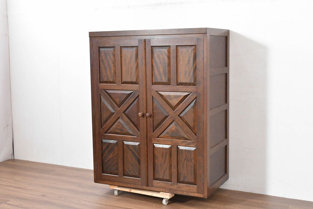 ラフジュ工房> キャビネット・戸棚 > 中古 松本民芸家具 当店リメイク シックで品のある雰囲気が魅力的なワードローブ収納棚(靴箱、下駄箱、キャビネット、戸棚)(R-084316)