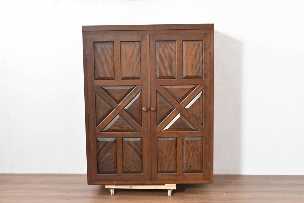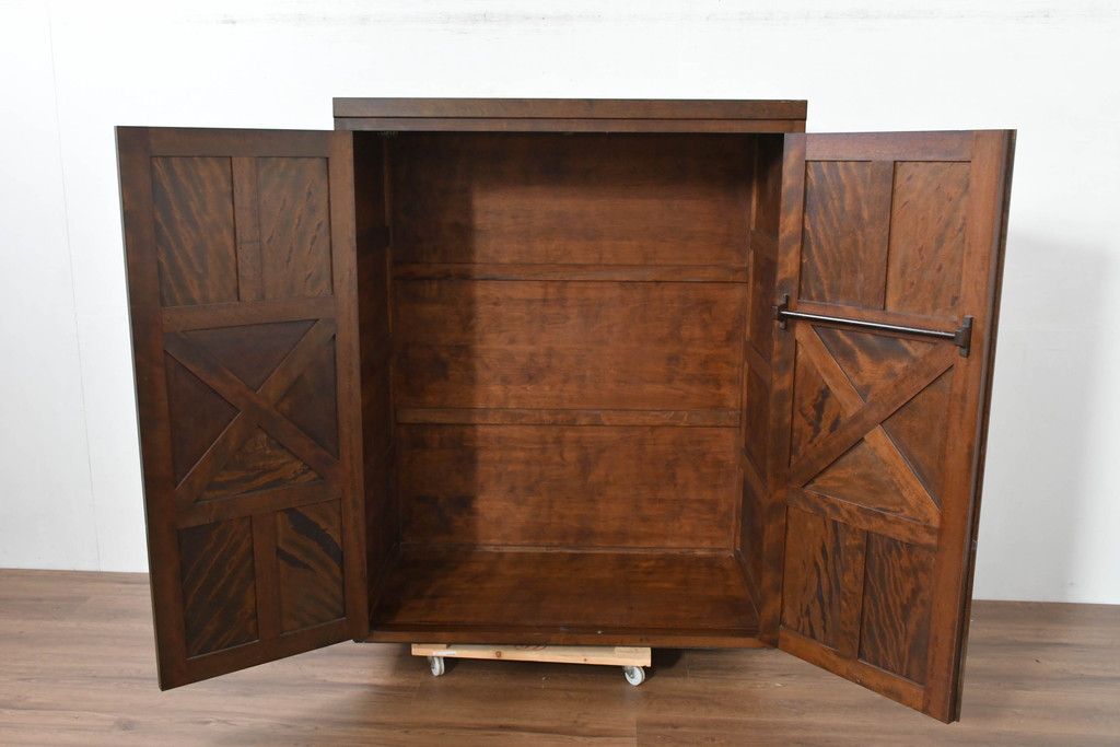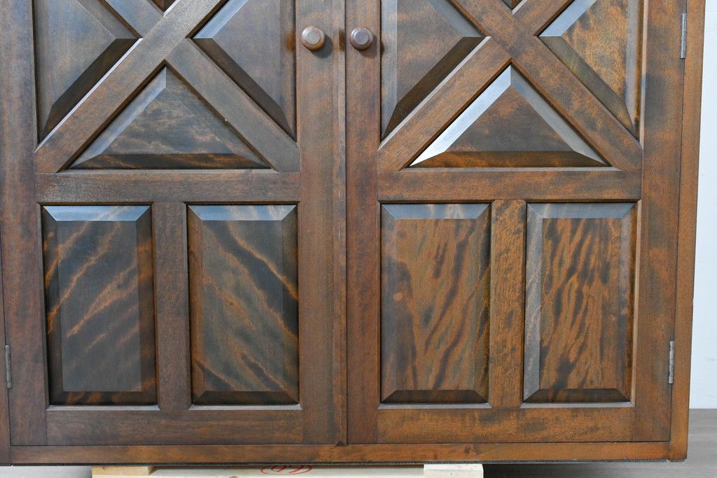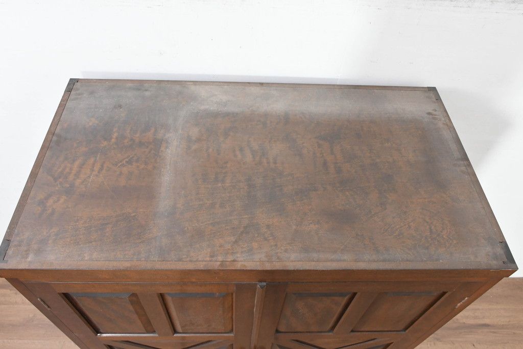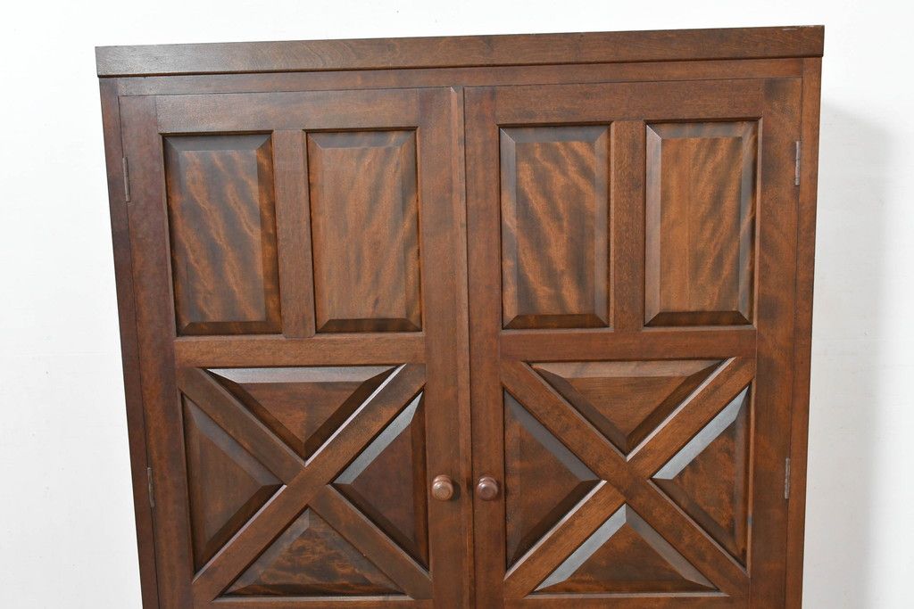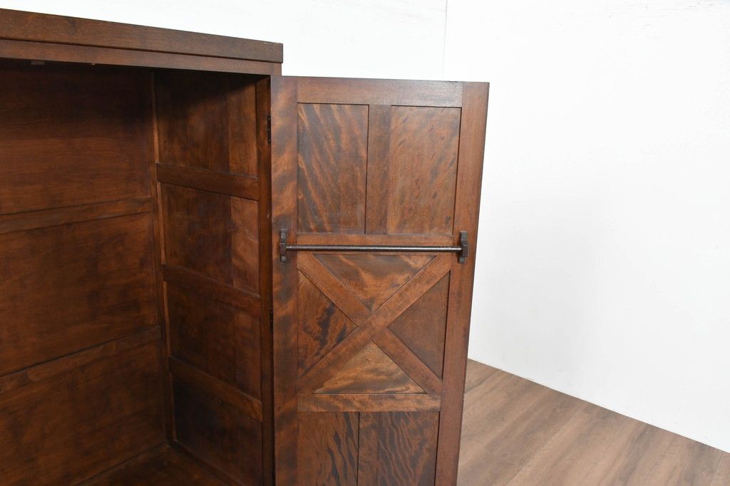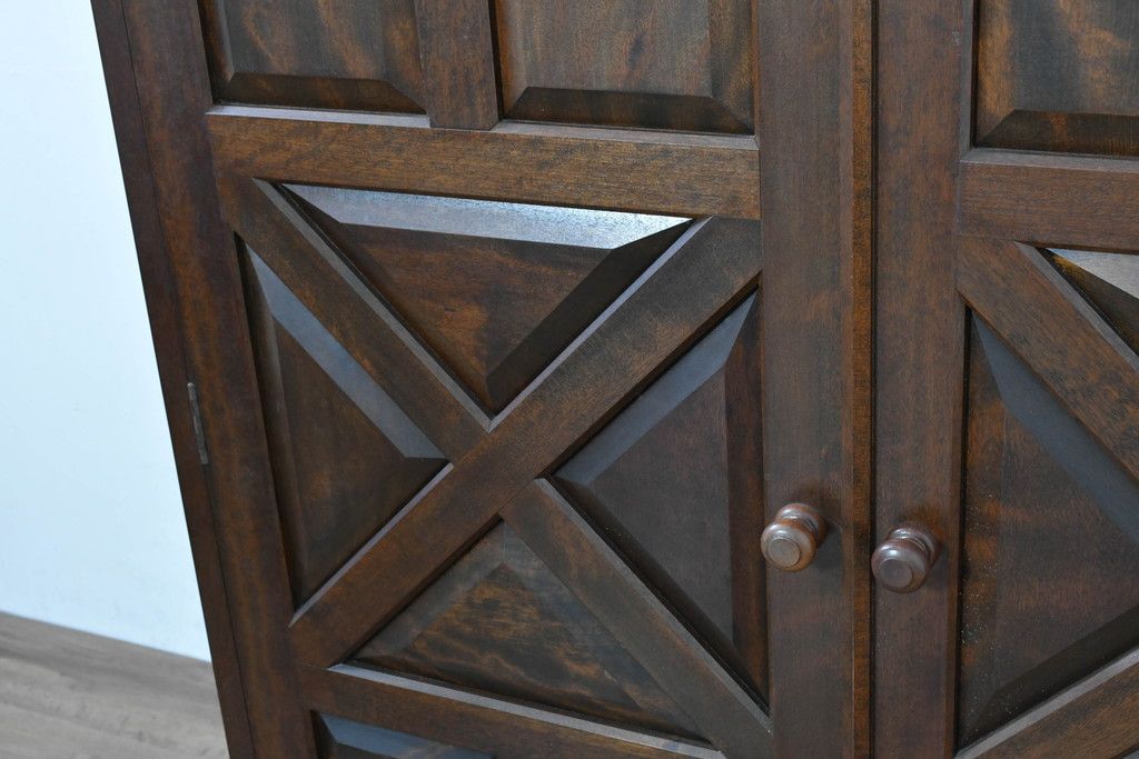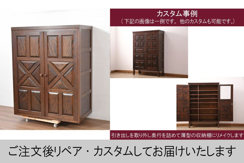 中古 松本民芸家具 当店リメイク シックで品のある雰囲気が魅力的なワードローブ収納棚(靴箱、下駄箱、キャビネット、戸棚)(R-084316)