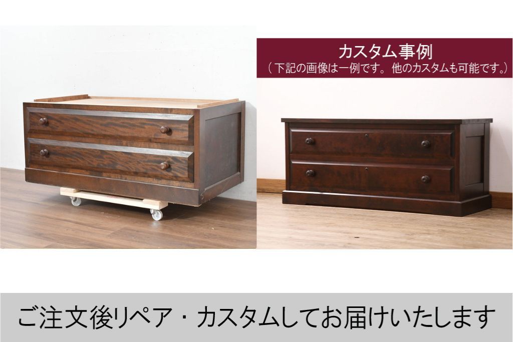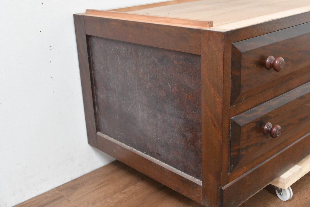 ラフジュ工房> チェスト・引き出し> ローチェスト > 中古 松本民芸家具 天板リメイク シックで品のある雰囲気が魅力的なローチェスト(ローボード、サイドチェスト、引き出し、衣装タンス、テレビ台)(R-084317)