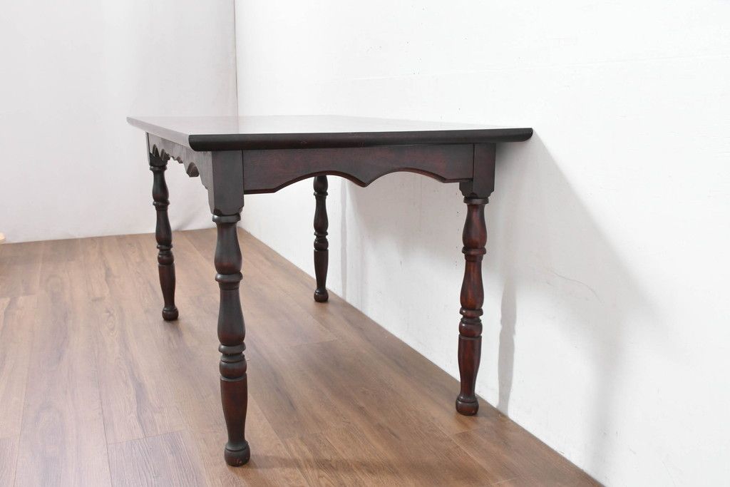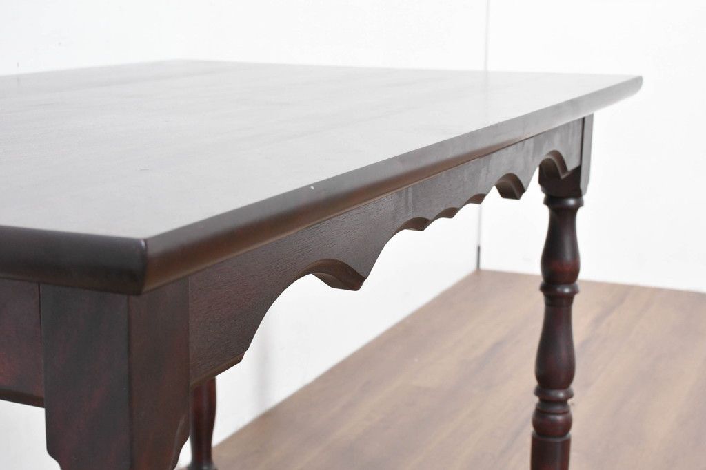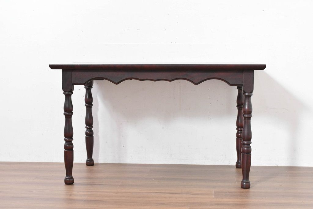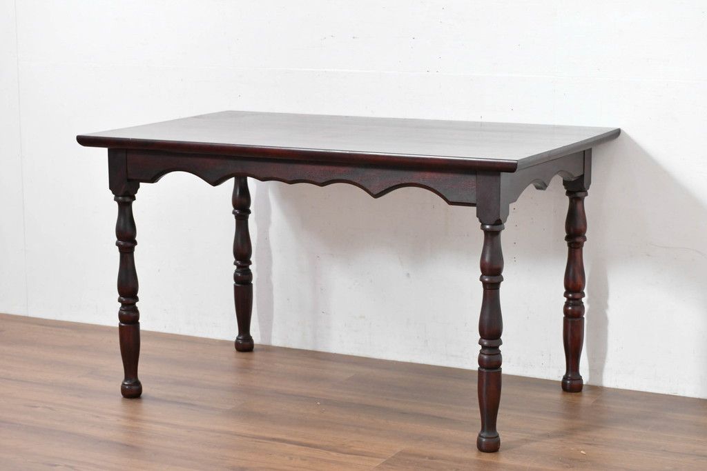 中古 樺(カバ)材 希少な小振りサイズ!! クラシカルなデザインが上品な民芸調ダイニングテーブル(2人用、2人掛け、食卓)(R-084320)です。
