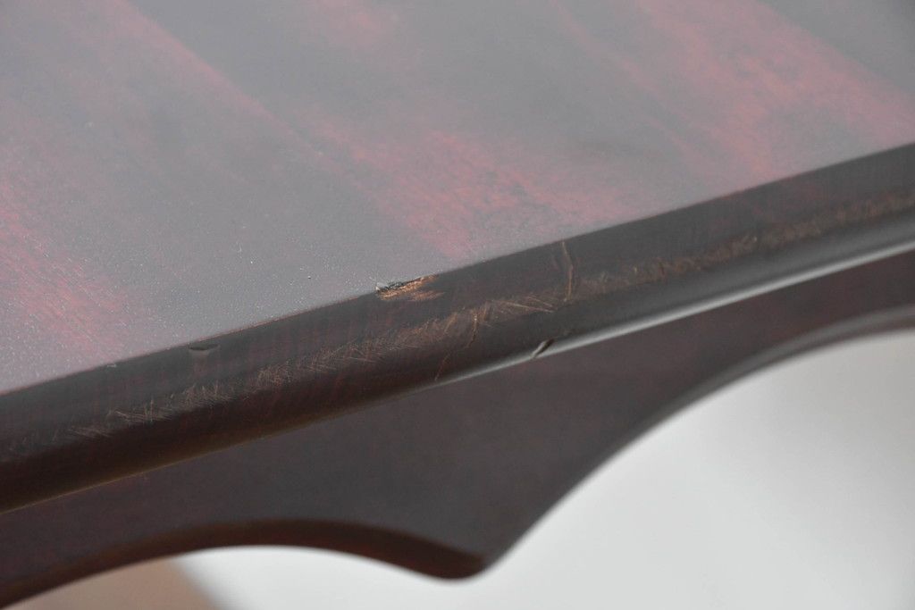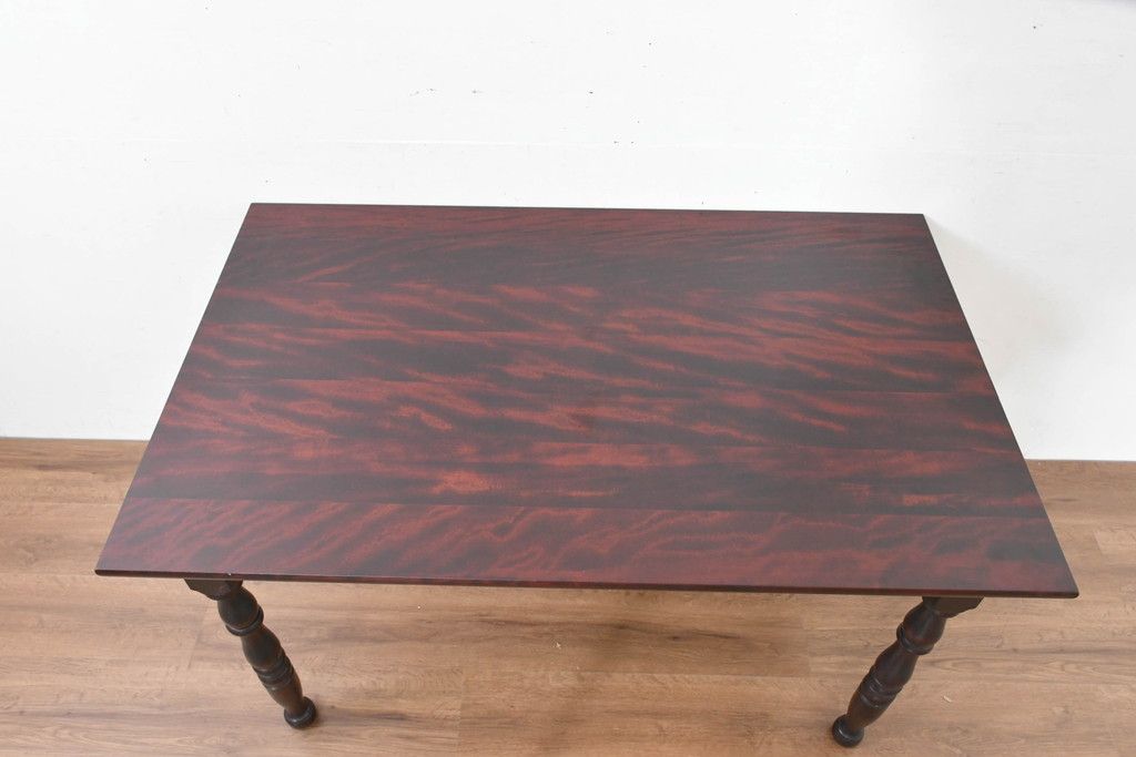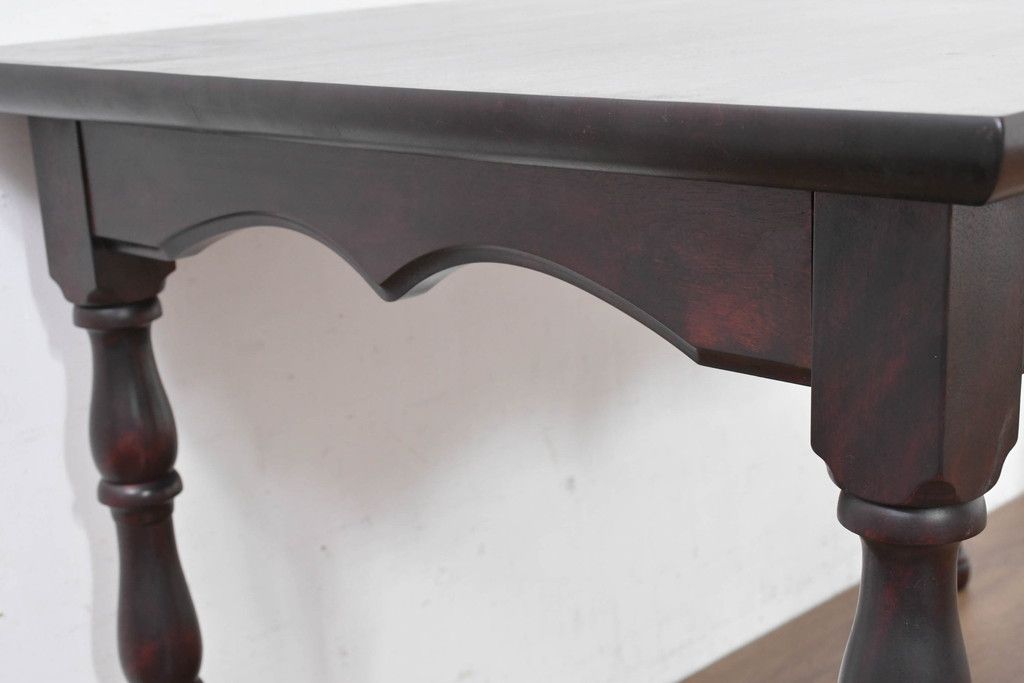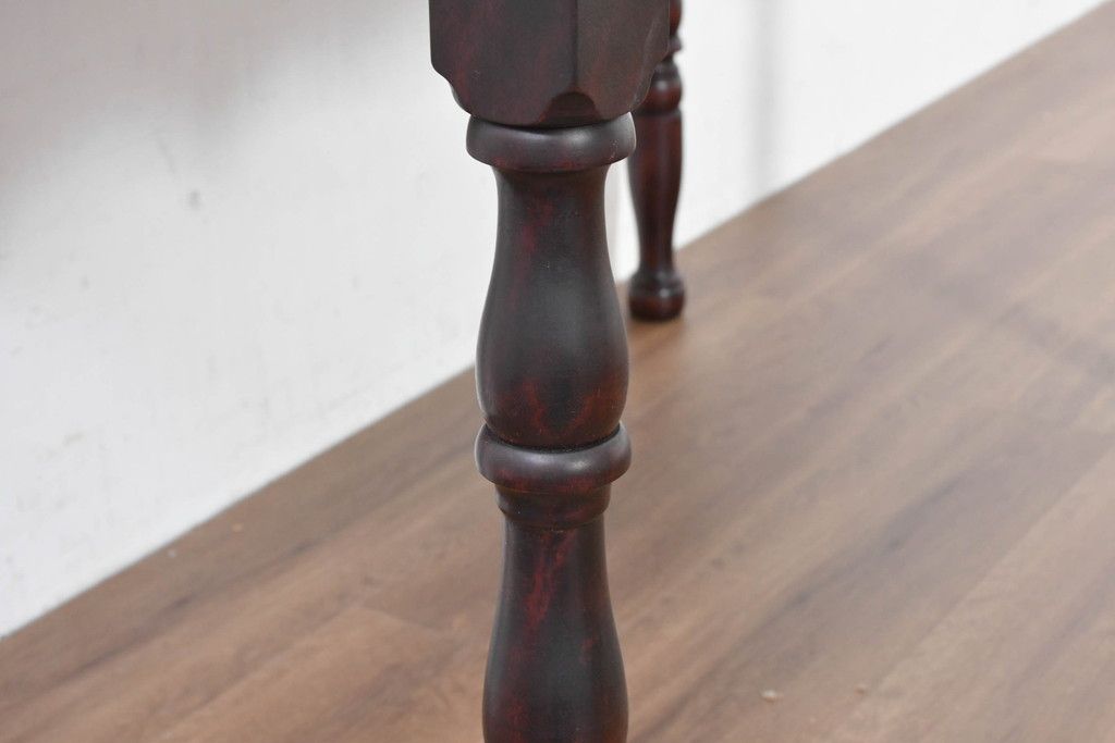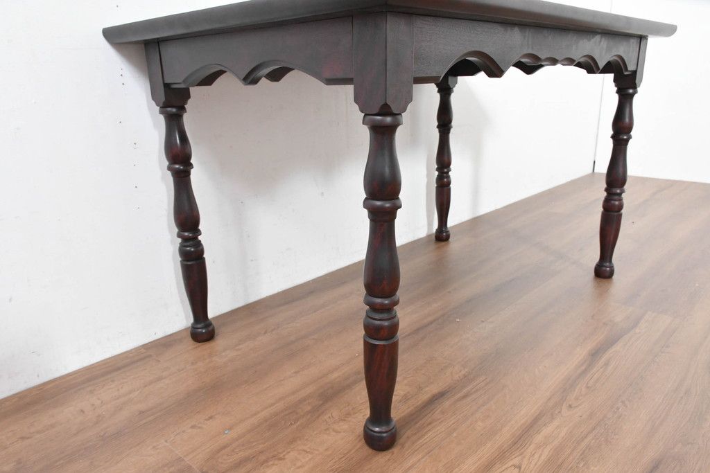 中古 樺(カバ)材 希少な小振りサイズ!! クラシカルなデザインが上品な民芸調ダイニングテーブル(2人用、2人掛け、食卓)(R-084320)