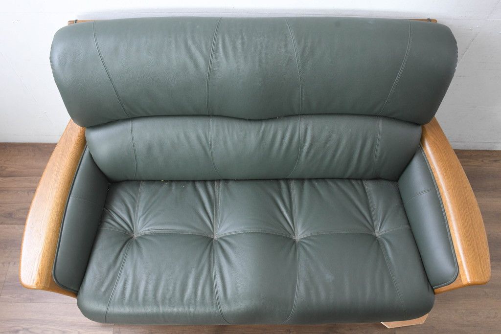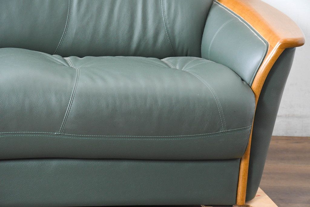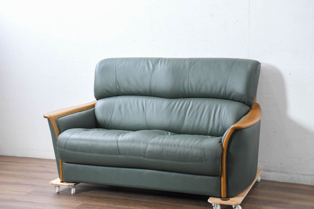 ソファ> 2人掛けソファ > 中古 美品!! 浜本工芸 ロングセラー ベストセラーモデル 1800 くつろぎの時間におすすめ!どっしりとした存在感のある2人掛けレザーソファ(2P、本革、2人掛けソファ、二人掛け、ラブソファ)(定価約21万円)(R-084327)