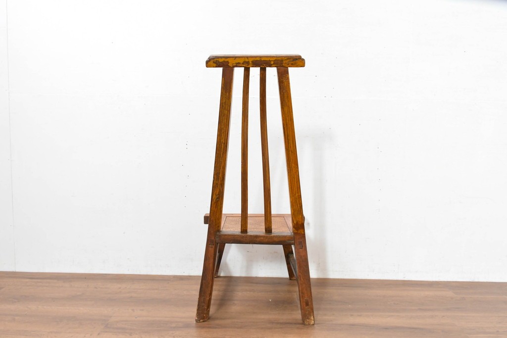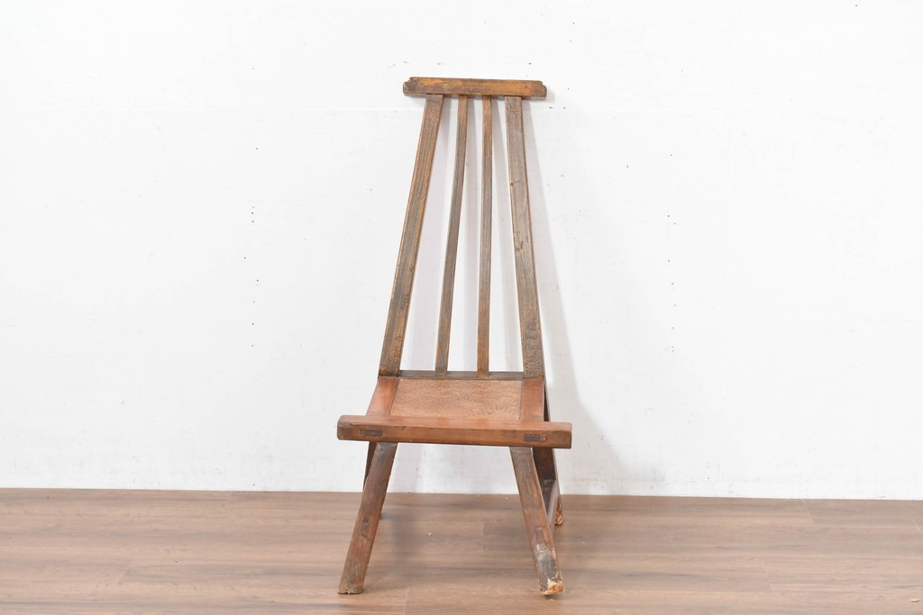 椅子・ベンチ > ジャンク品 中国アンティーク 民芸の趣 籐座面 二本縦桟のハイバックチャイナチェア (R-084329)