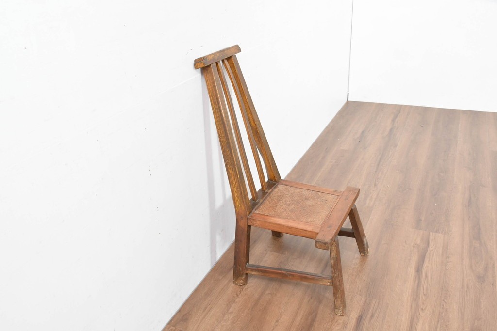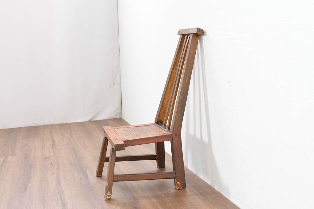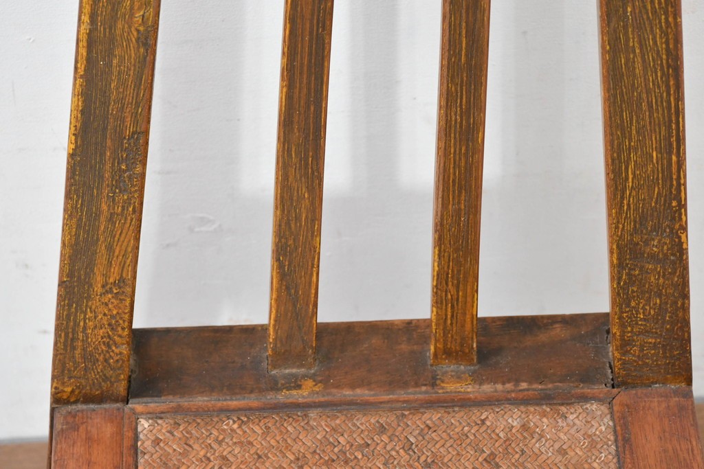 古家具> 古家具-椅子・ベンチ > ジャンク品 中国アンティーク 民芸の趣 籐座面 二本縦桟のハイバックチャイナチェア (R-084329)