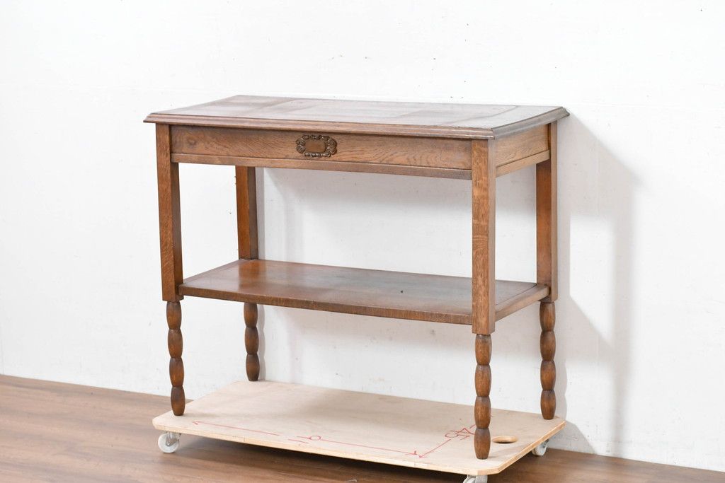 テーブル> サイドテーブル > 和製アンティーク ナラ材 洗練されたモダンデザインが素敵な古い洋館のコンソールテーブル(サイドテーブル、花台、飾り台)(R-084333)