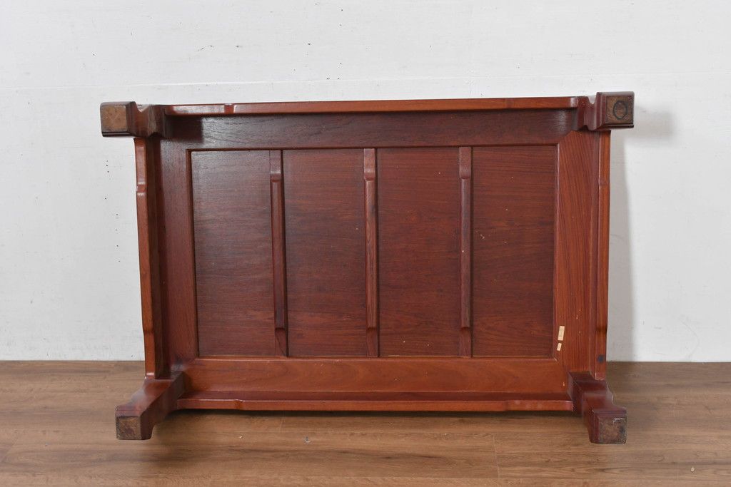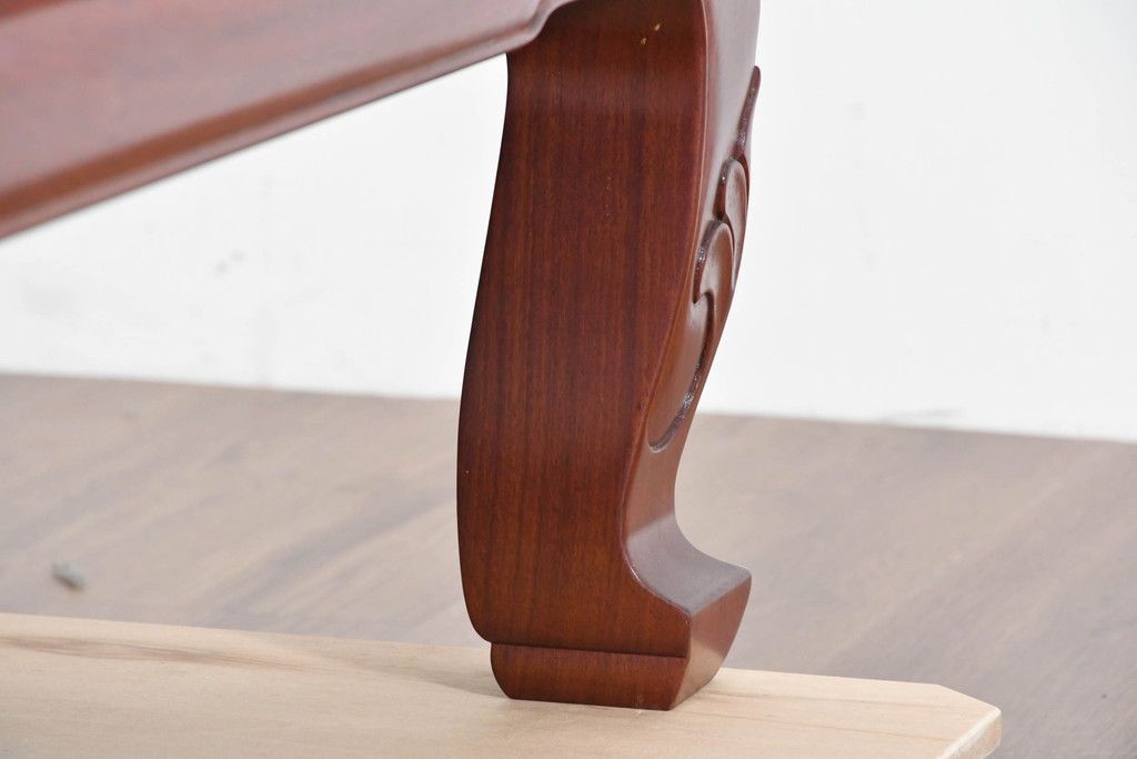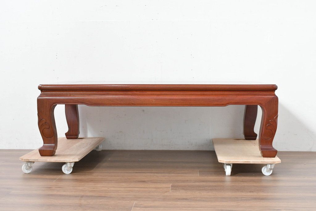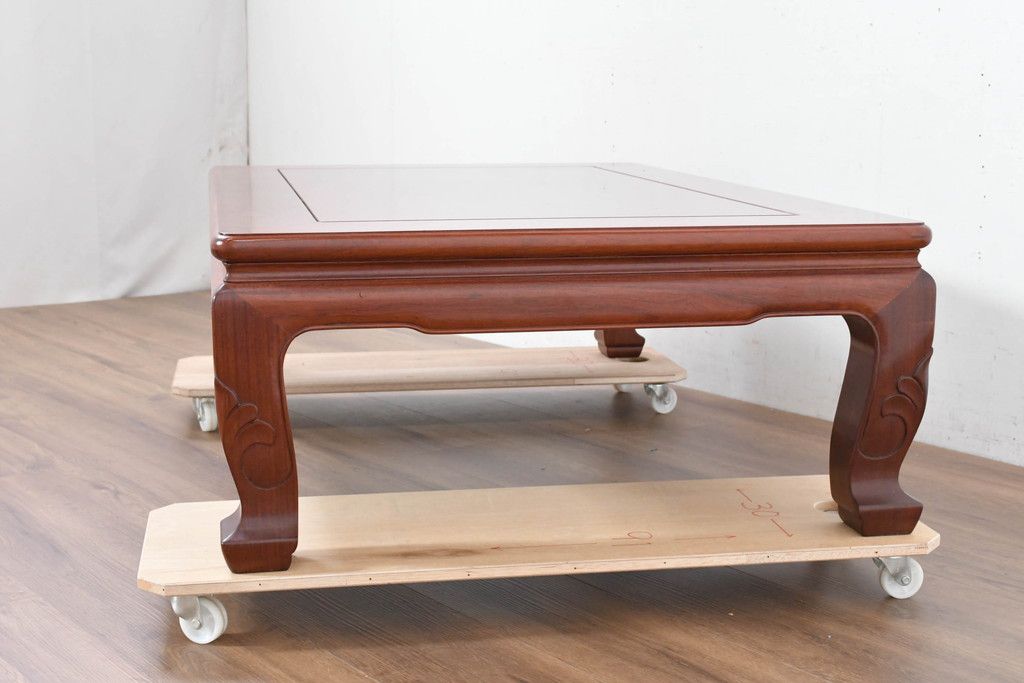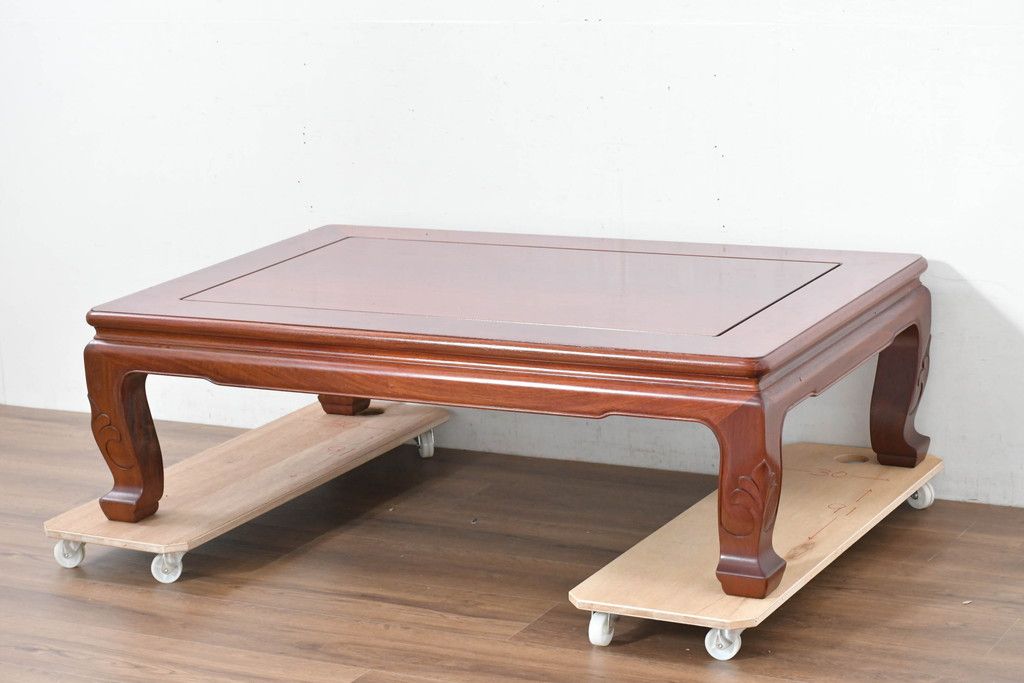 テーブル> センターテーブル・ローテーブル > 中古 美品 花梨(カリン)材ならではの赤褐色が美しい彫刻入りの座卓(ローテーブル、センターテーブル、リビングテーブル)(R-084336)