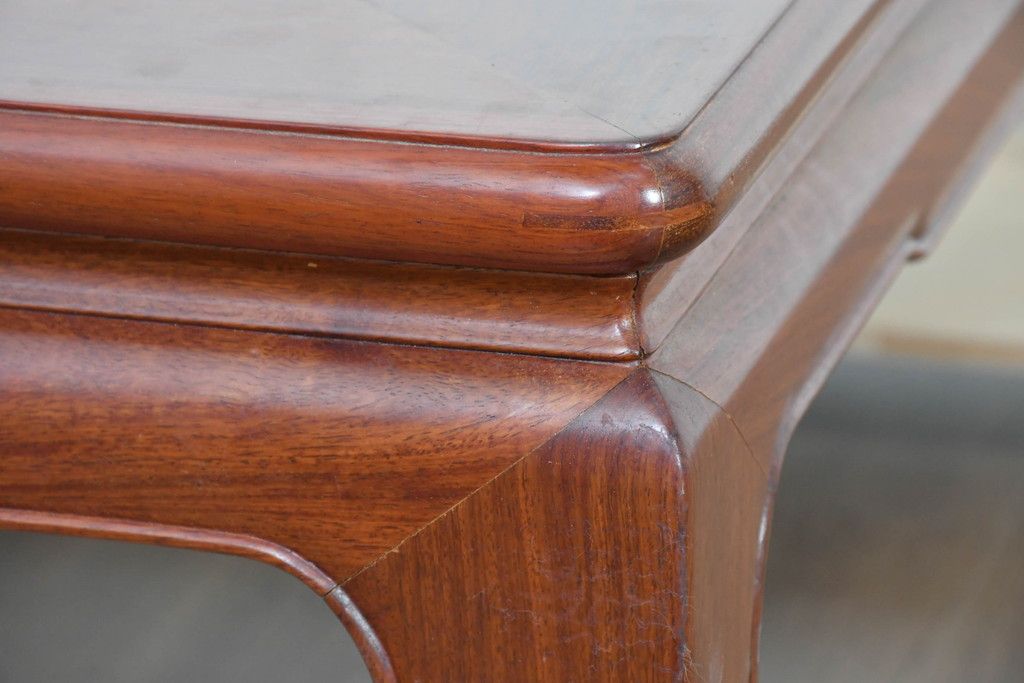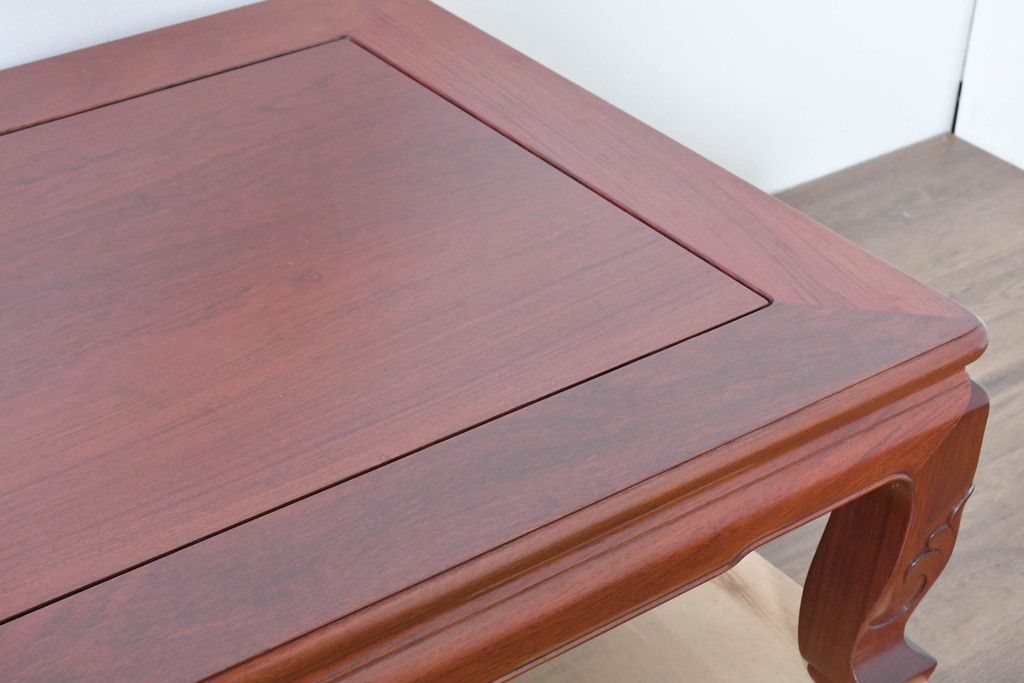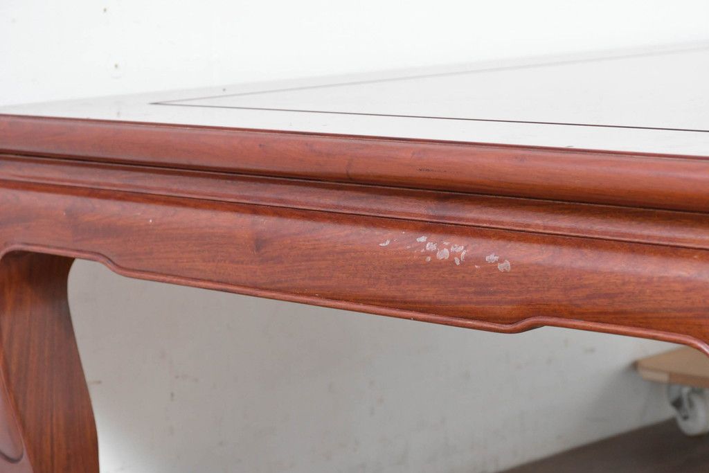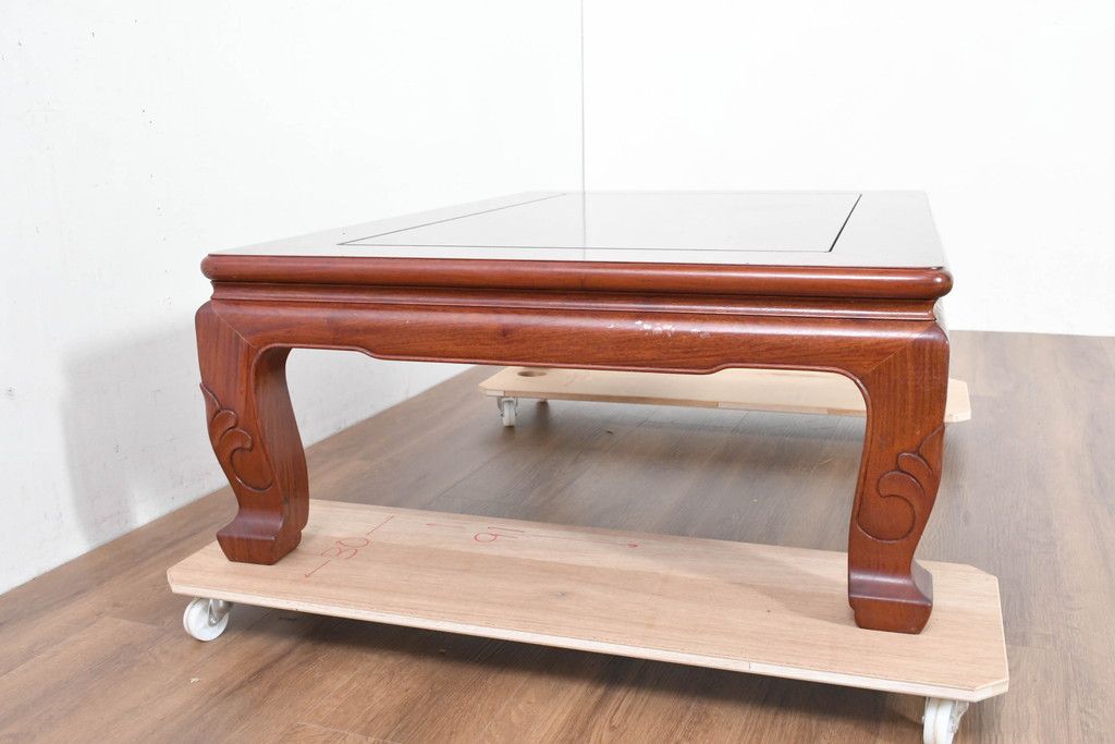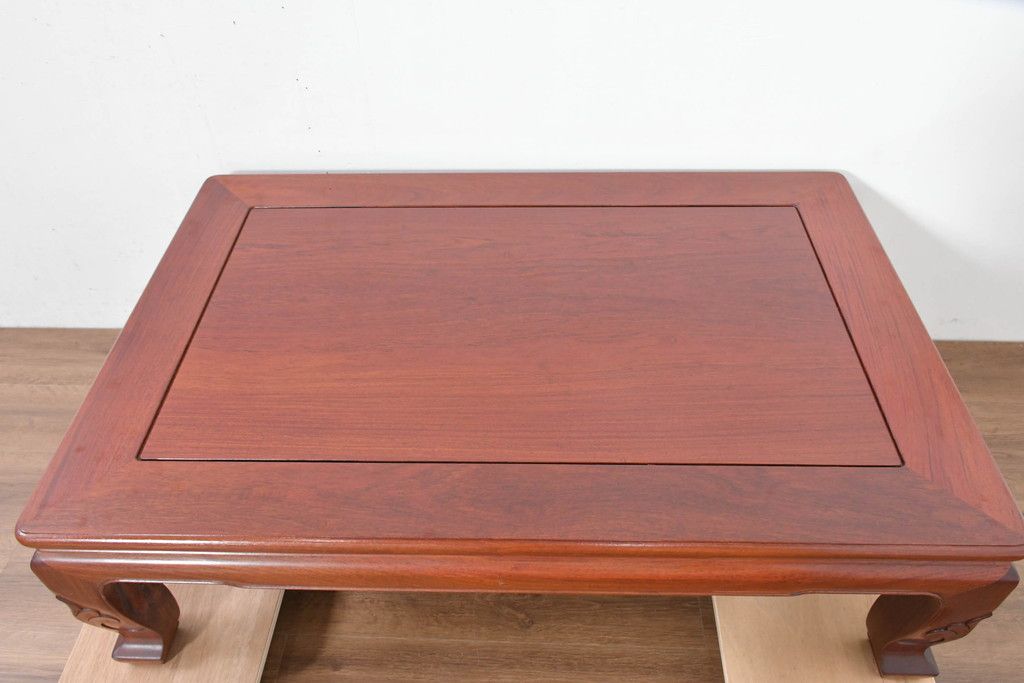 テーブル> 座卓 > 中古 美品 花梨(カリン)材ならではの赤褐色が美しい彫刻入りの座卓(ローテーブル、センターテーブル、リビングテーブル)(R-084336)