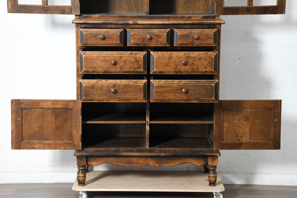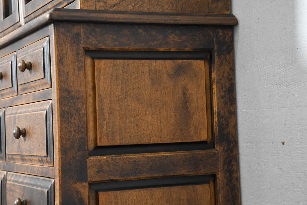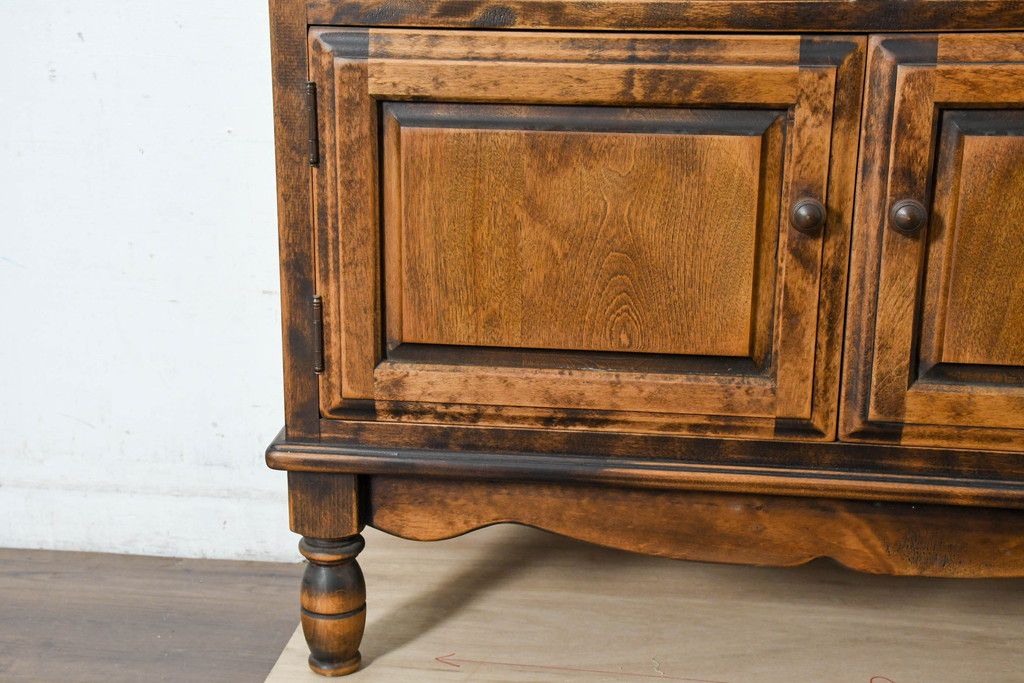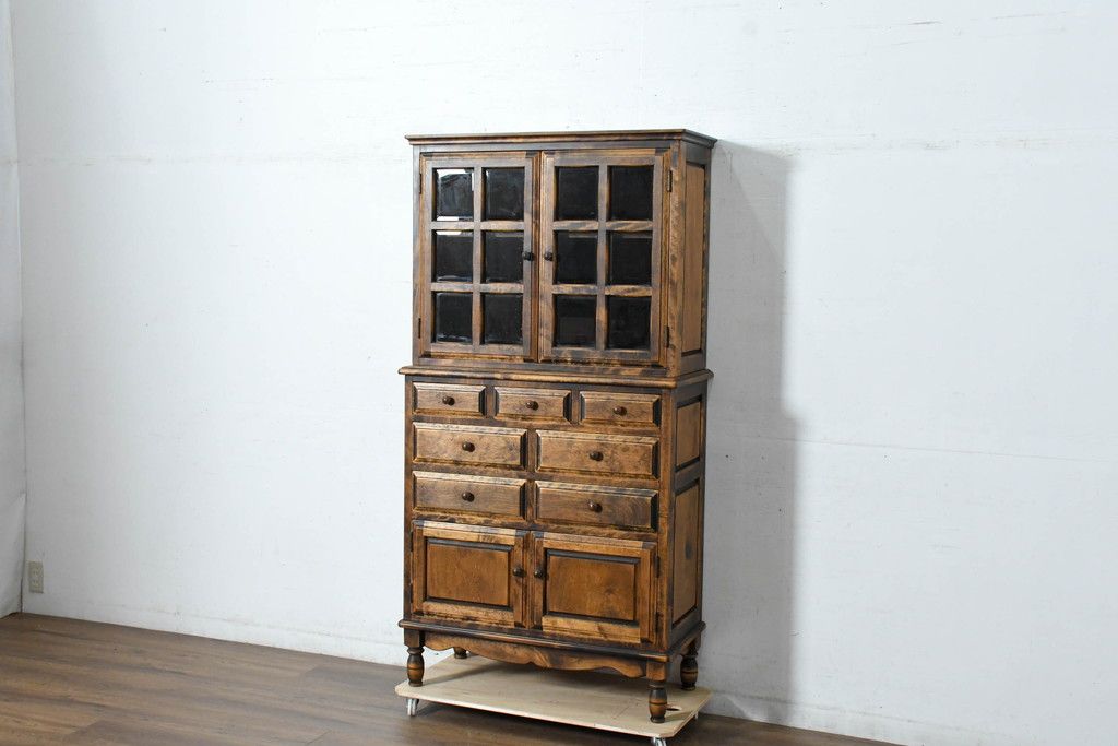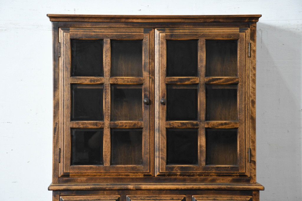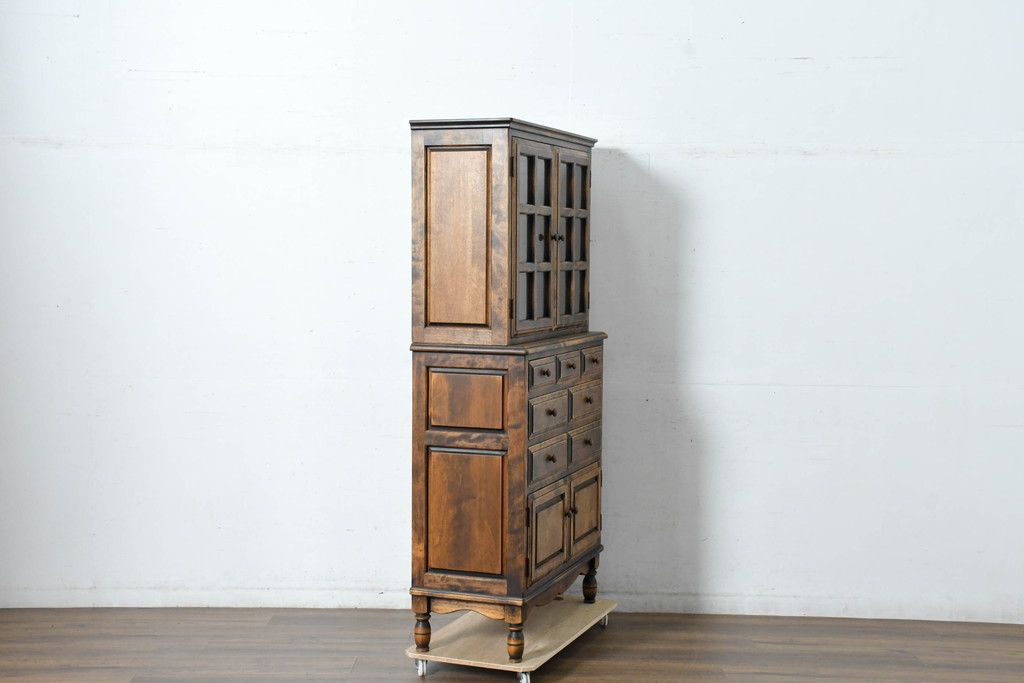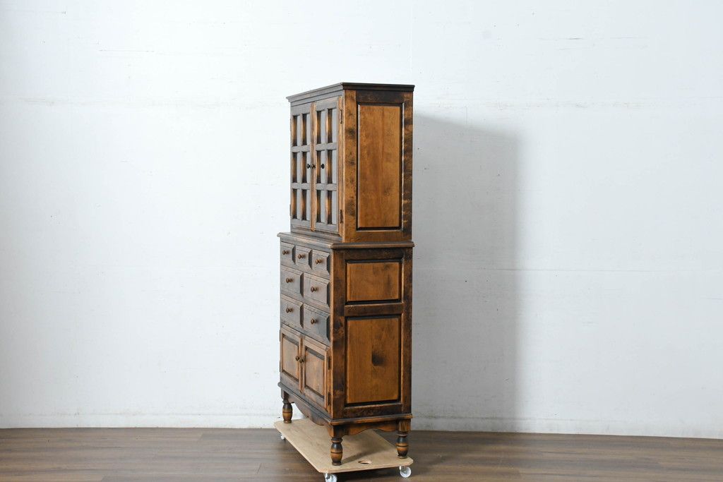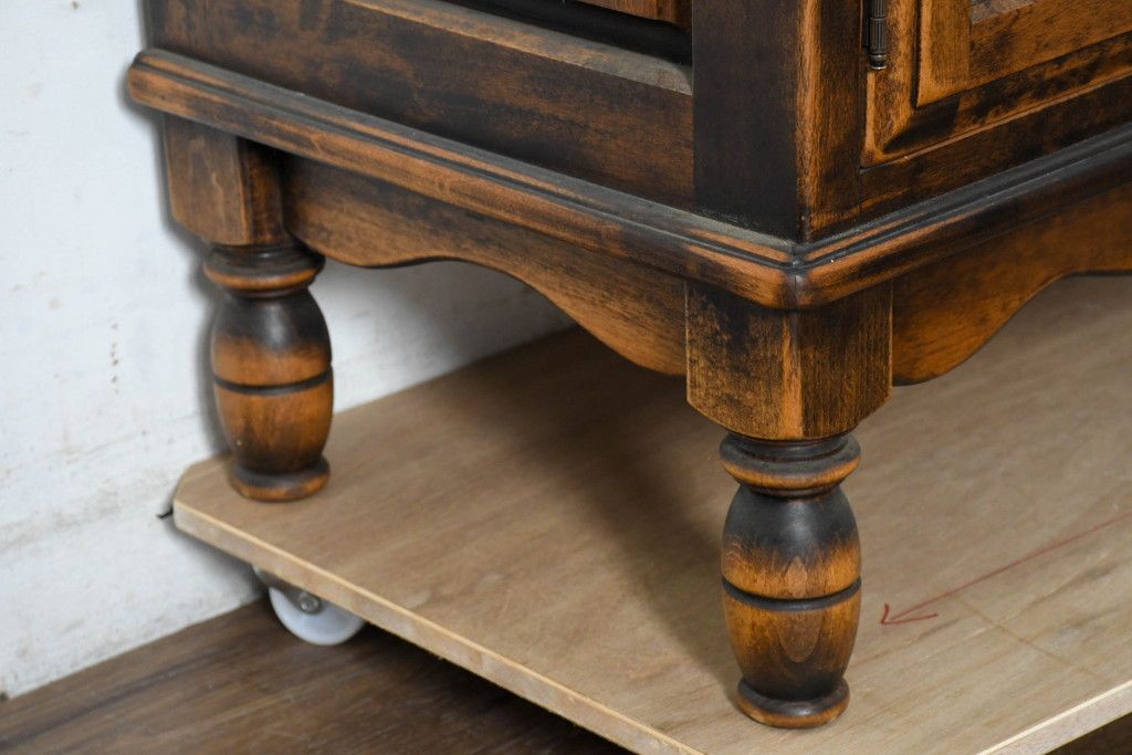 中古 美品 国産職人手作り アンティーク調 作りの良い脚付き民芸キャビネット(食器棚、収納棚、戸棚、カップボード、バラ売り可能)(R-084339)
