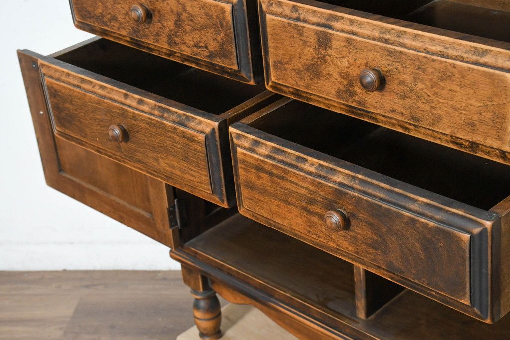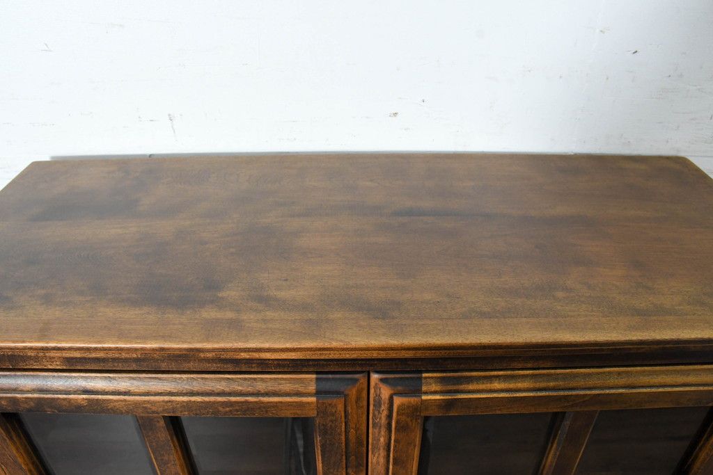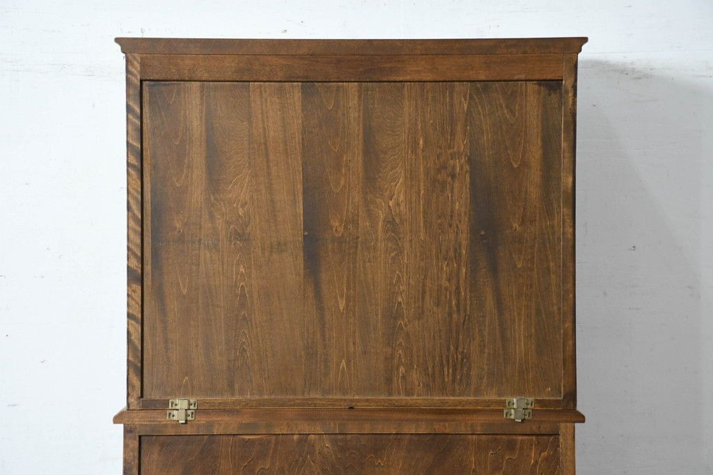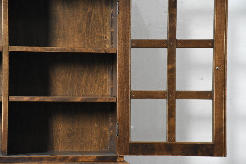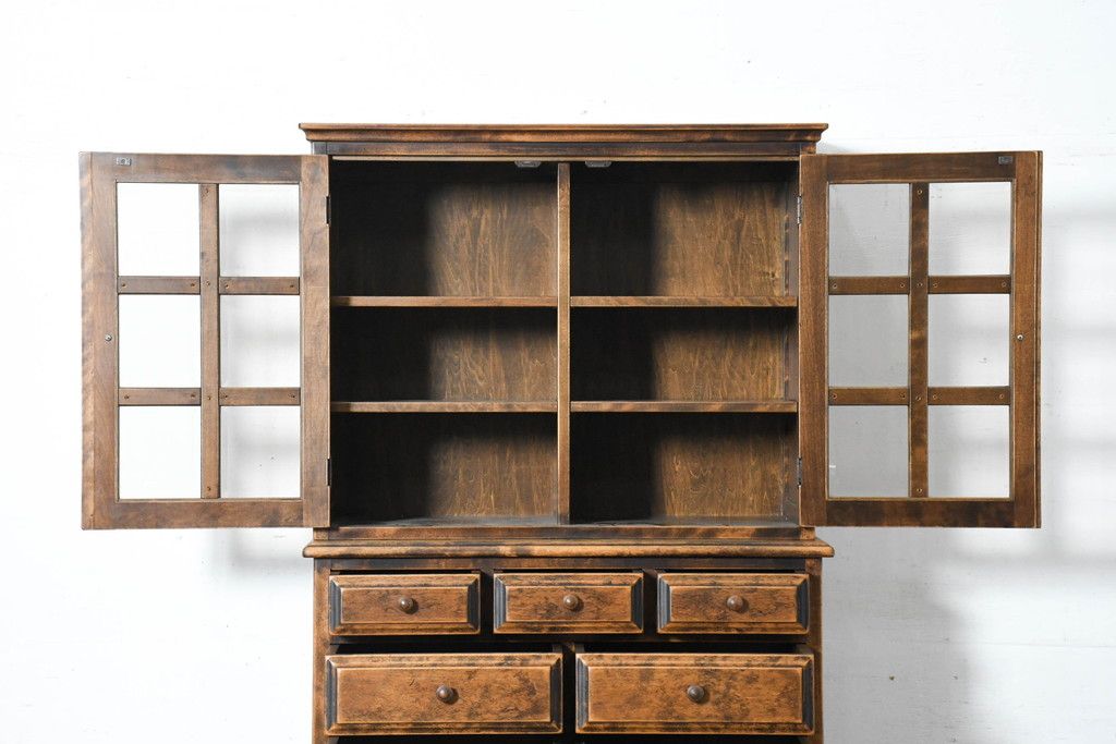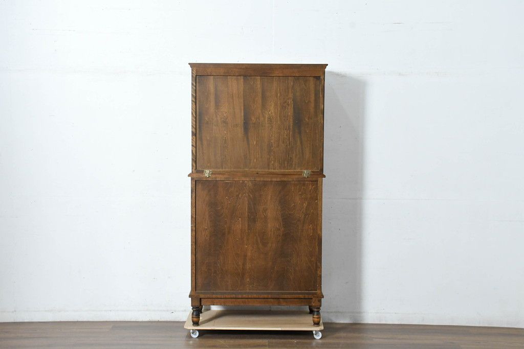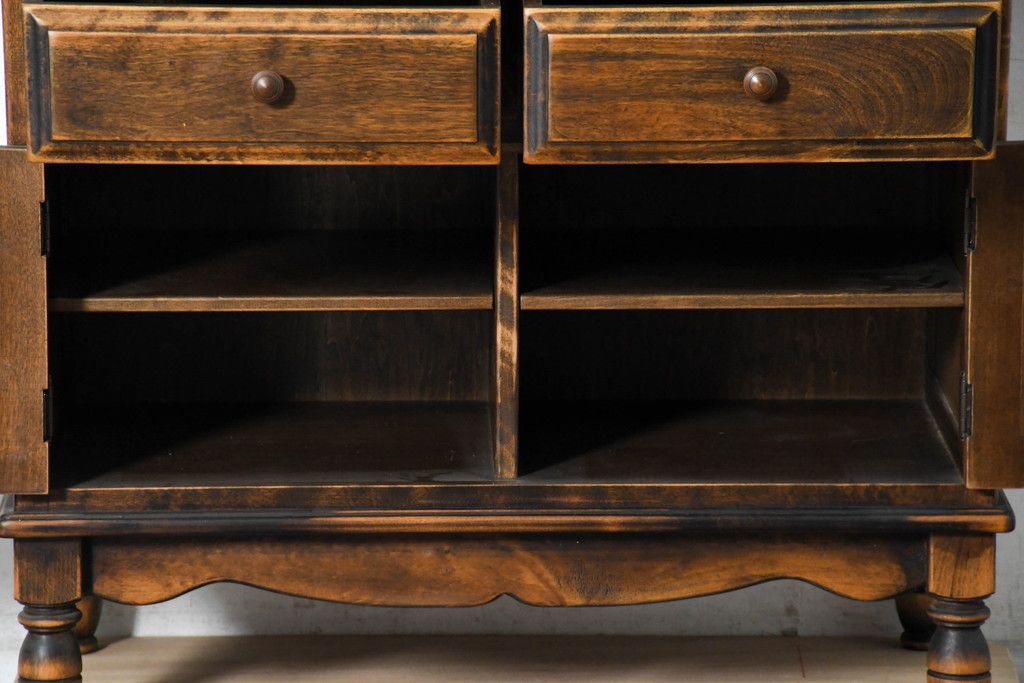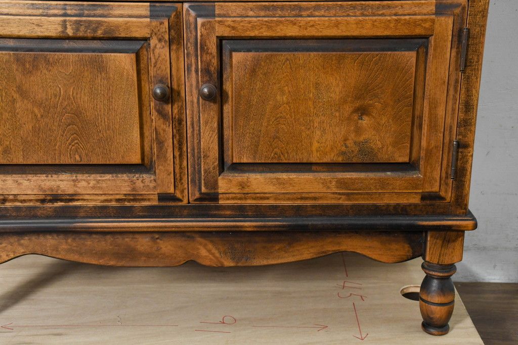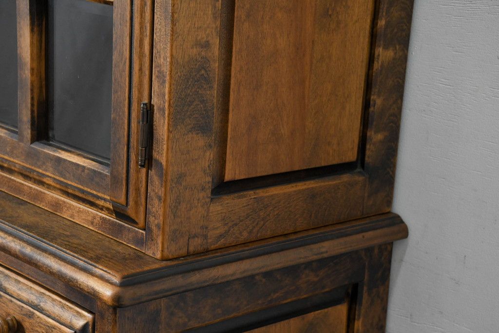 中古 美品 国産職人手作り アンティーク調 作りの良い脚付き民芸キャビネット(食器棚、収納棚、戸棚、カップボード、バラ売り可能)(R-084339)