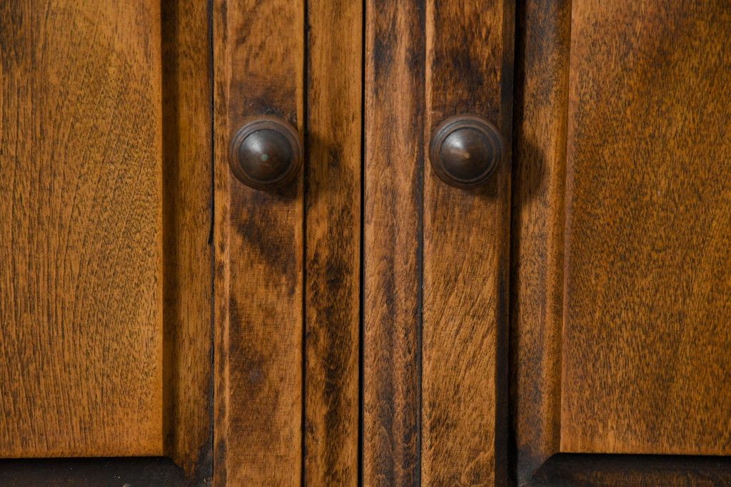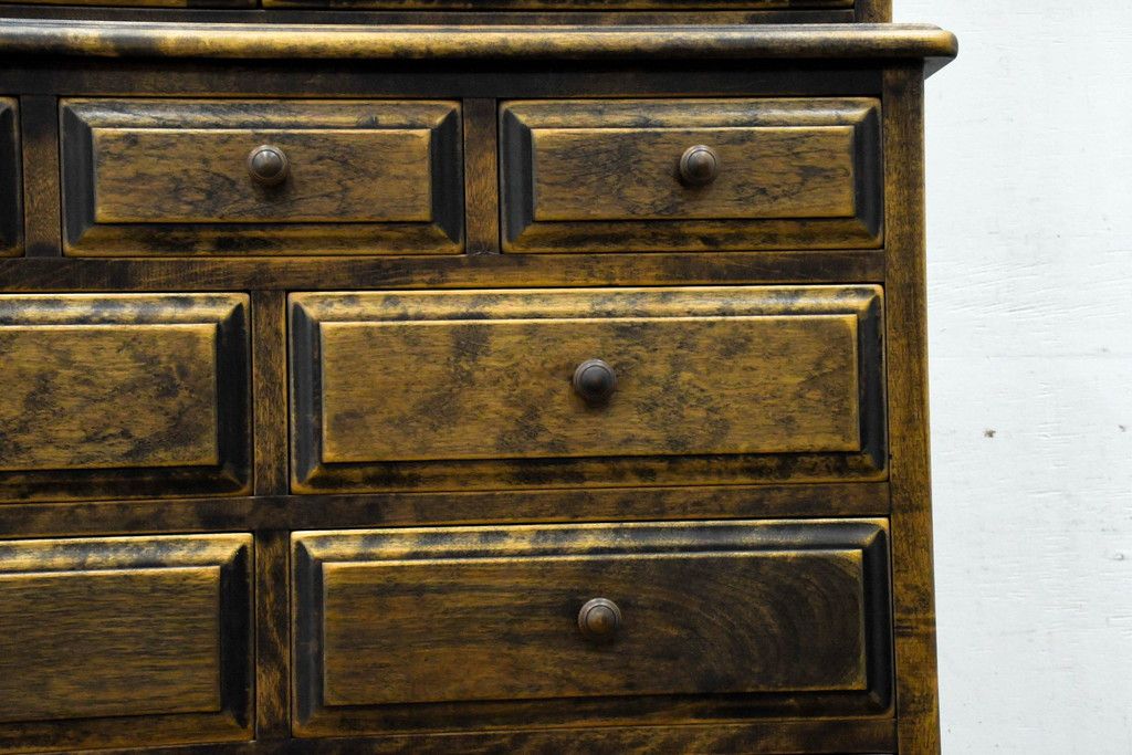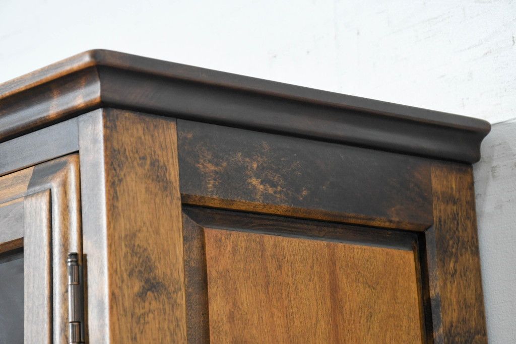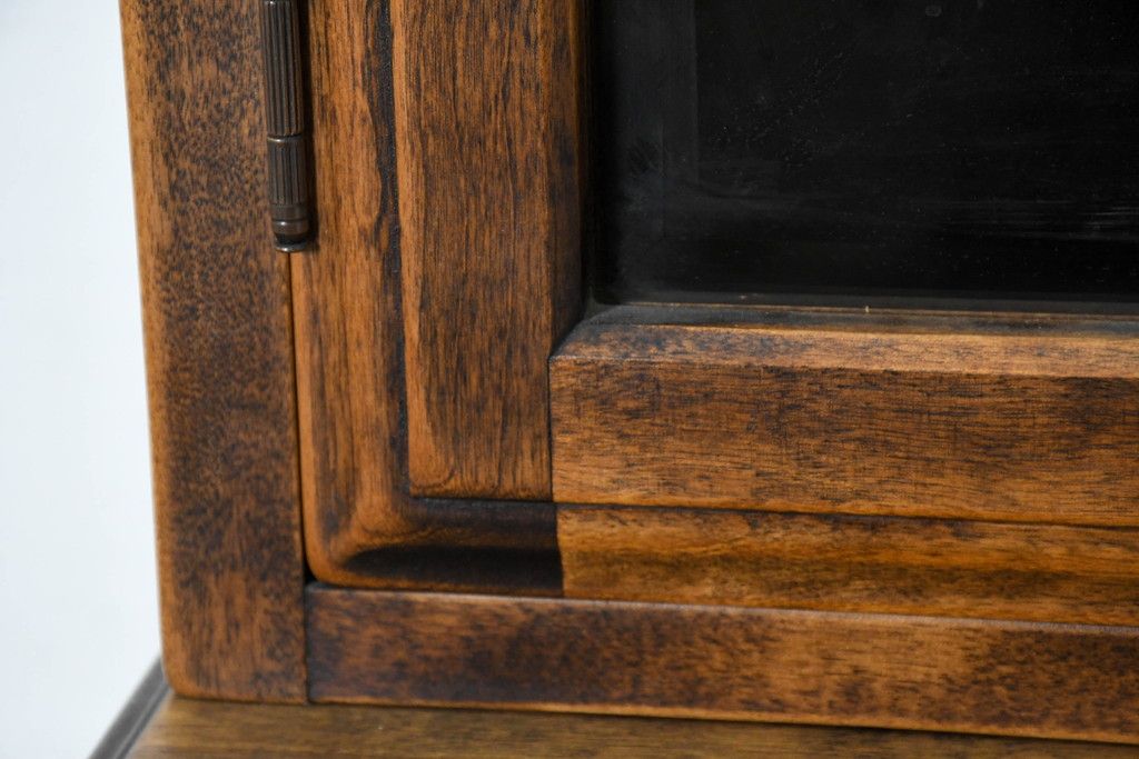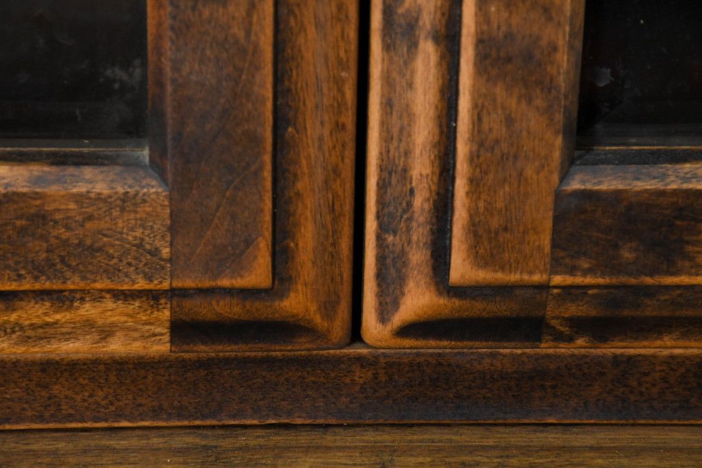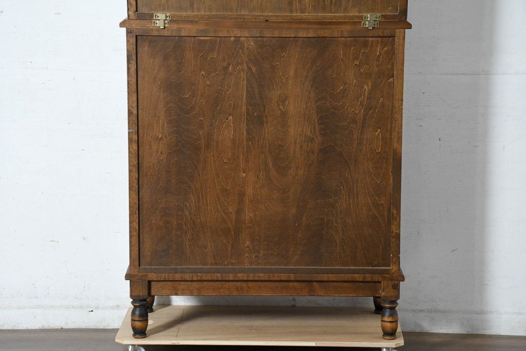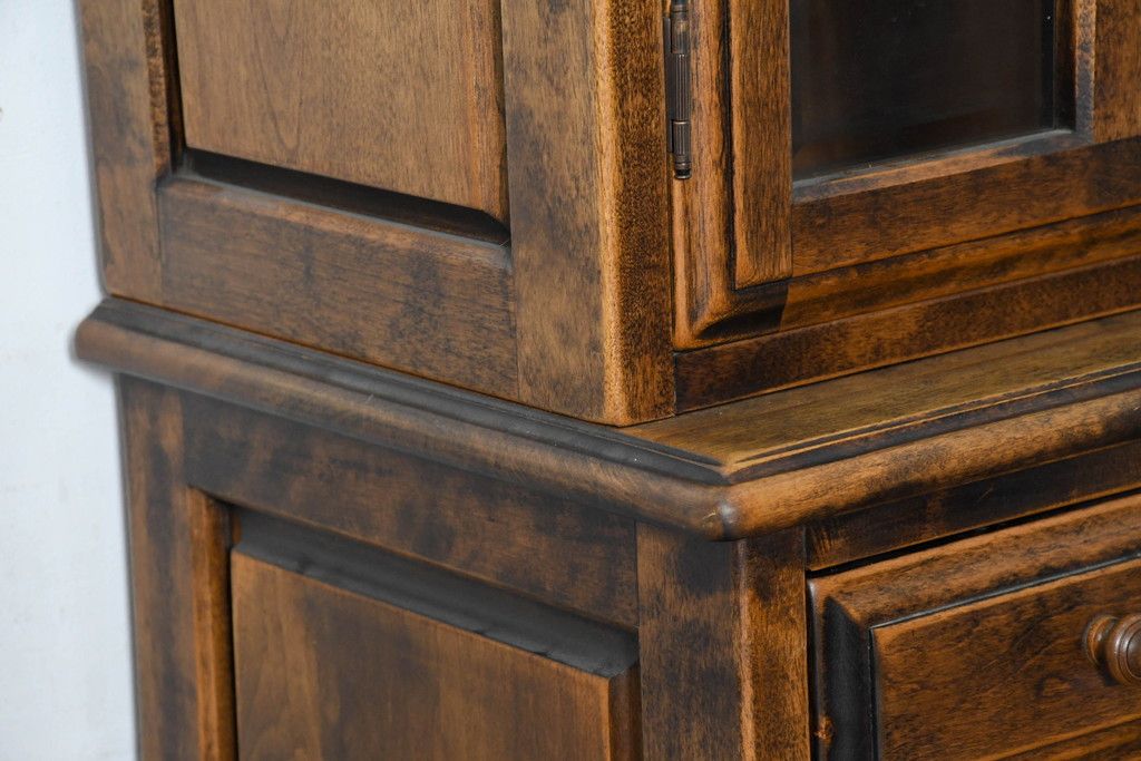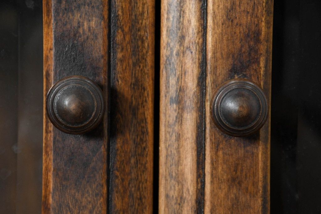 中古 美品 国産職人手作り アンティーク調 作りの良い脚付き民芸キャビネット(食器棚、収納棚、戸棚、カップボード、バラ売り可能)(R-084339)