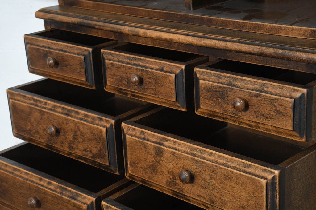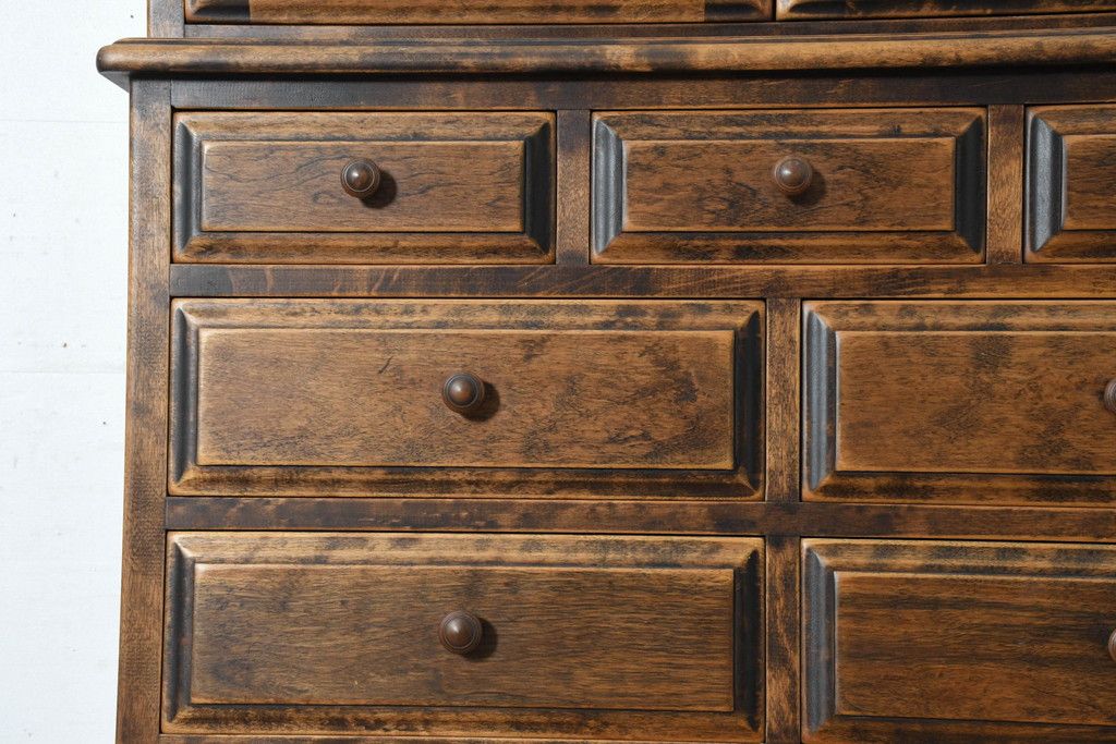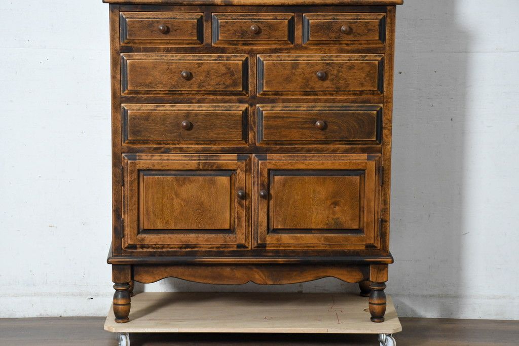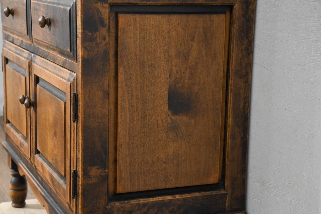 中古 美品 国産職人手作り アンティーク調 作りの良い脚付き民芸キャビネット(食器棚、収納棚、戸棚、カップボード、バラ売り可能)(R-084339)です。