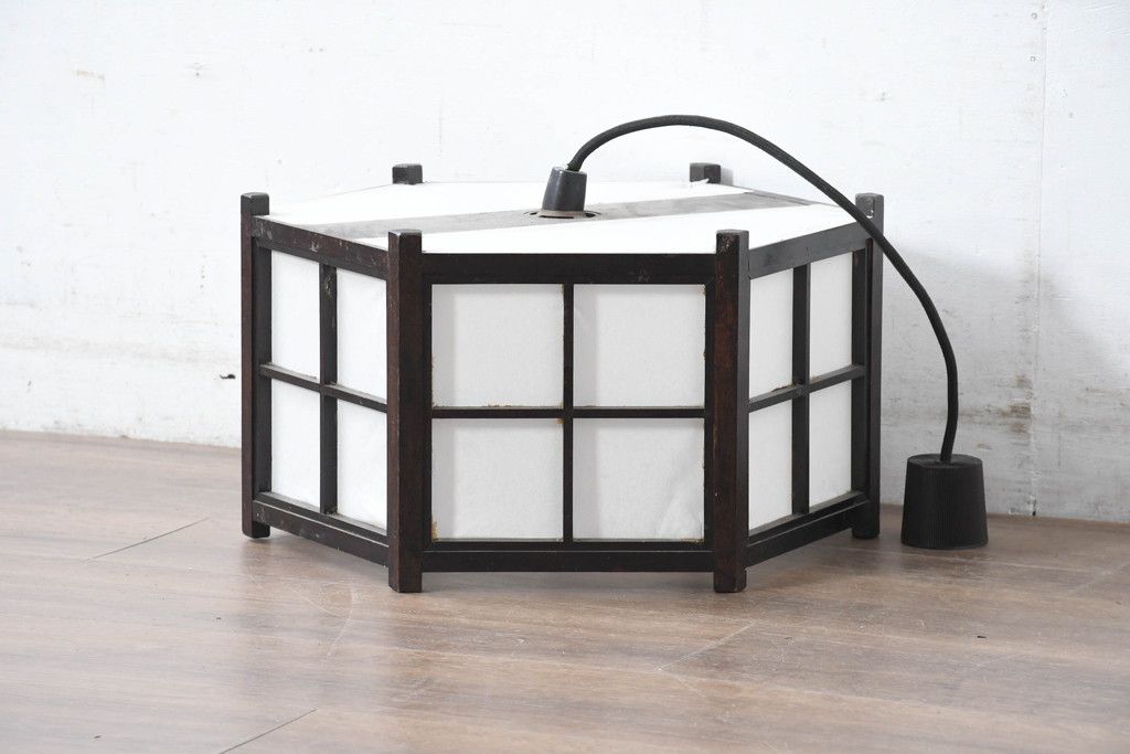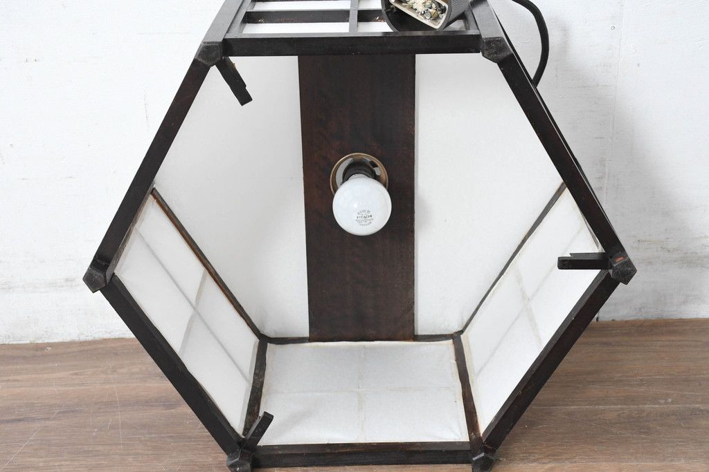 中古 松本民芸家具 和モダンスタイルの空間づくりにぴったりな障子張りの六角吊り下げ照明(天井照明、ペンダントライト、電笠)(R-084351)