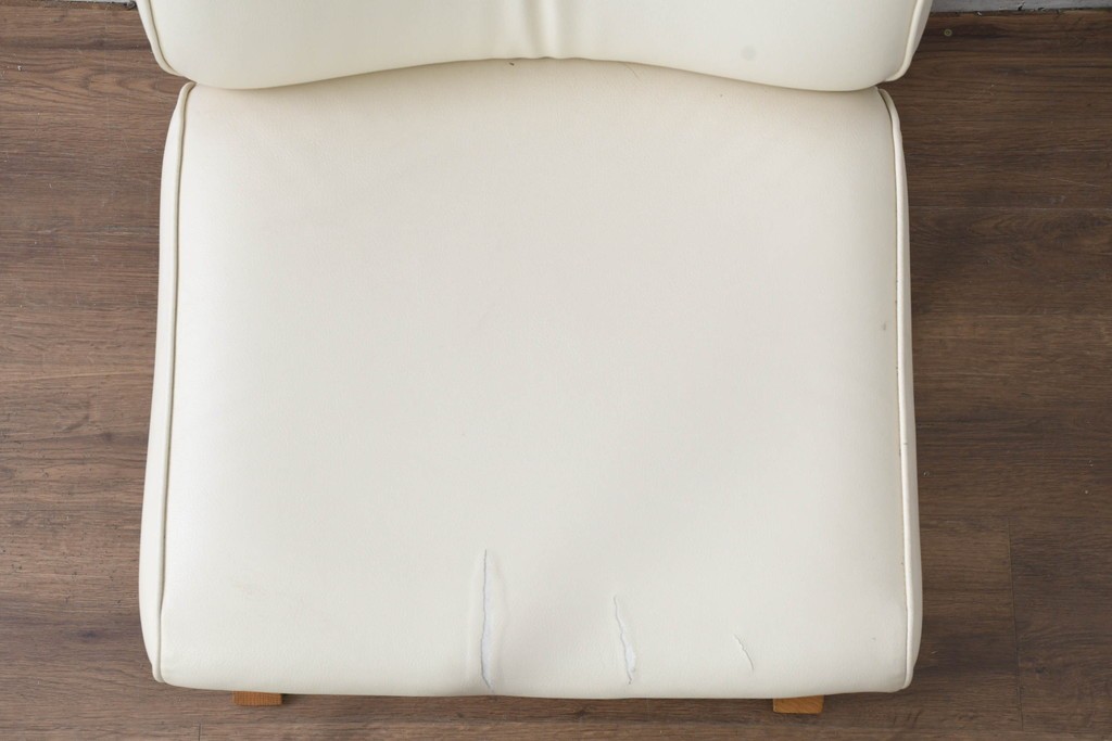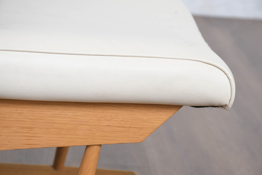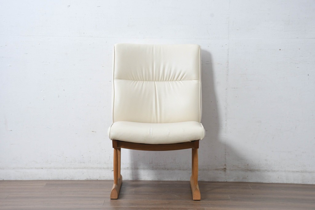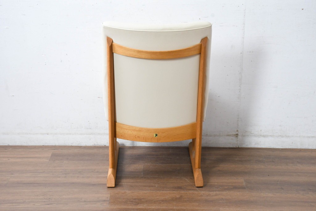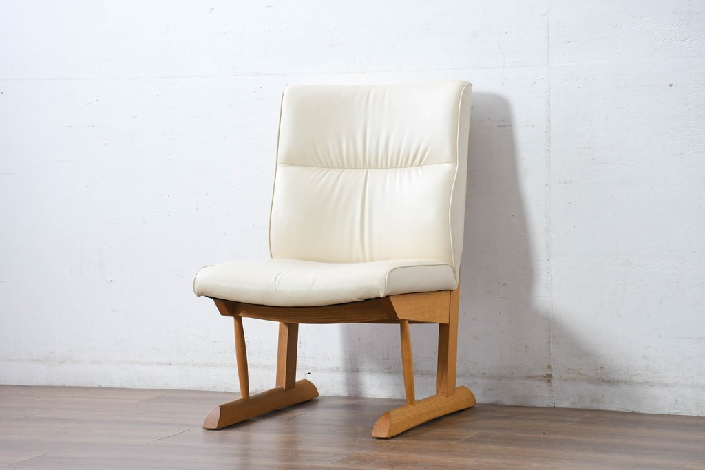 椅子・ベンチ> ラウンジチェア > ジャンク品 中古 飛騨産業 キツツキ カヤ(KAYA)シリーズ オーク材 合皮 上質で落ち着いた雰囲気が魅力的なアームレスチェア 定価約10万円相当 (R-084353)