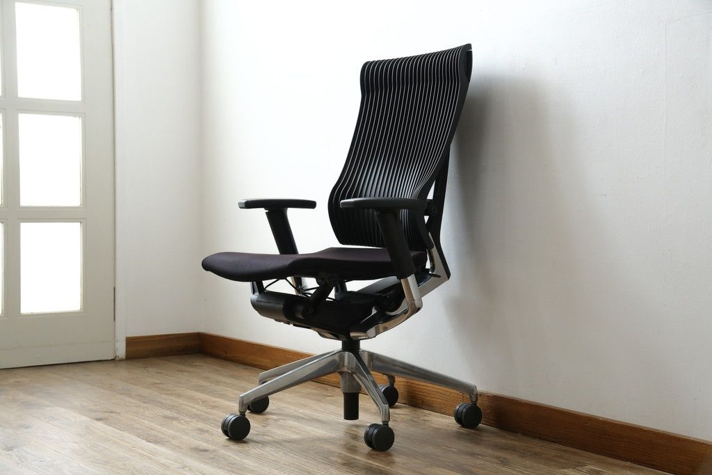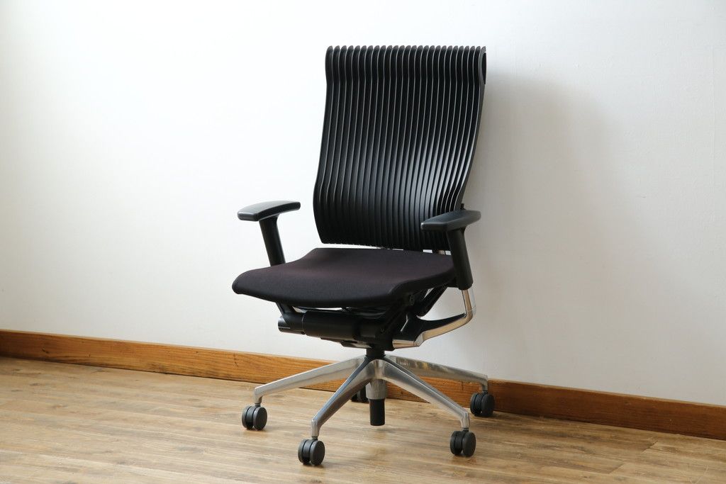 椅子・ベンチ> 回転椅子 > 中古 イトーキ(ITOKI) アルミミラー仕上げ エラストマーバック スピーナチェア(Spina) 高級感と快適性を兼ね備えたオフィスチェア(アームチェア、デスクチェア、回転チェア、椅子、イス)(定価約25万円)(R-084360)