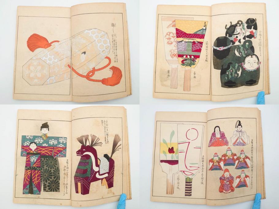 明治24年~40年 清水晴風 「うなゐの友(うないの友)」 1・2・3・4編 4冊セット(芸艸堂、人形、玩具、木版画集、和本、古書)(R-084366)