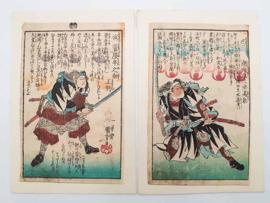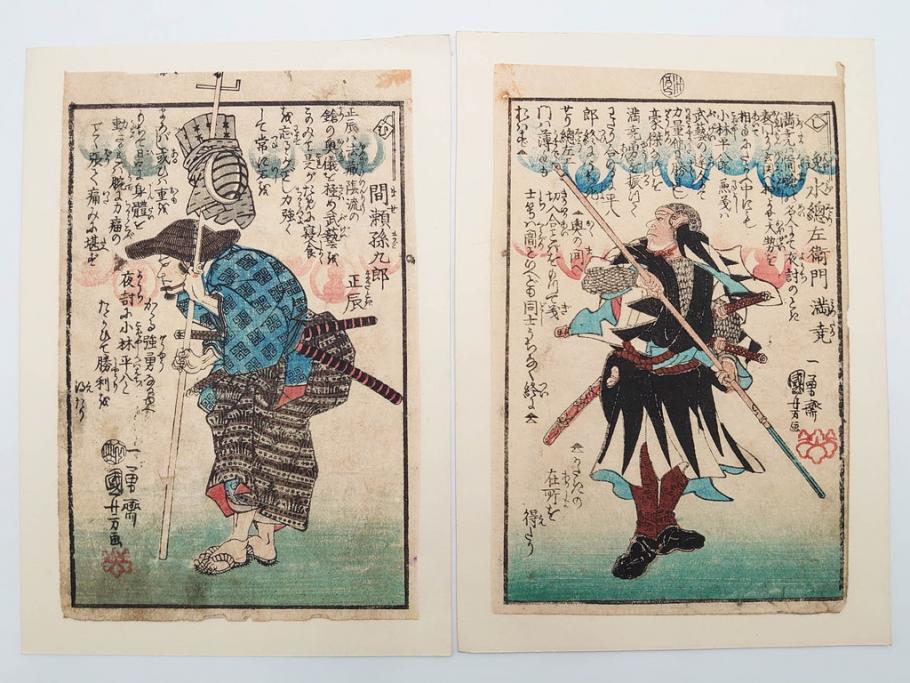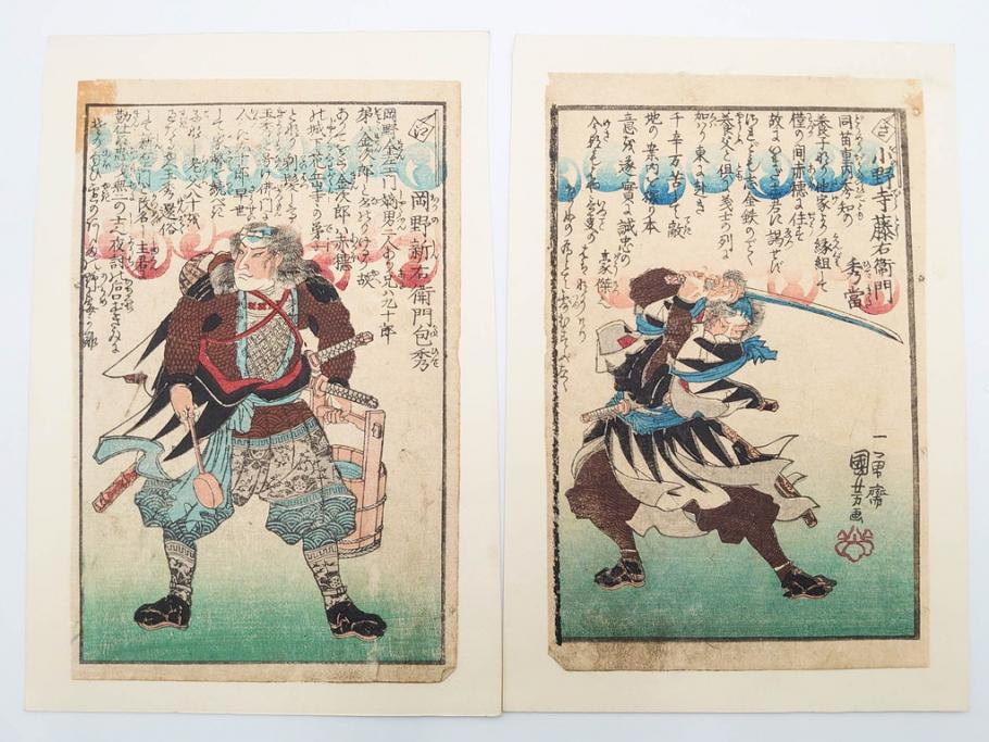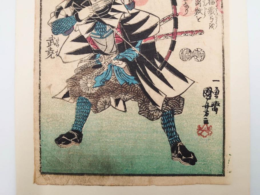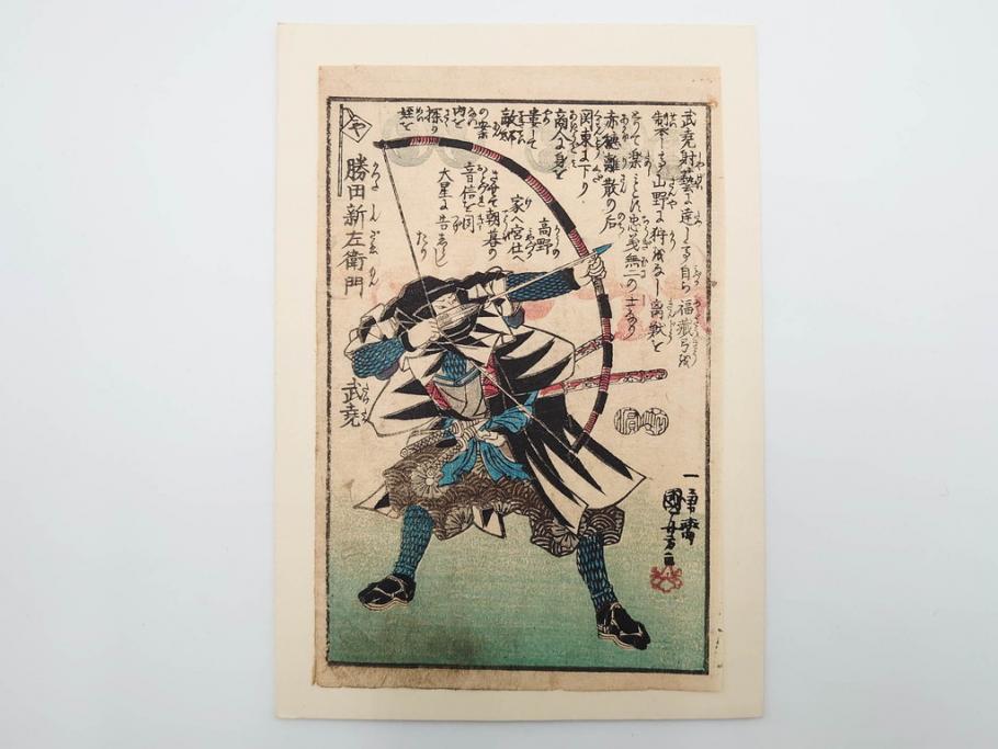 それぞれの武者の個性を描き分ける筆致が味わい深く、浮世絵ならではの風合いが感じられます。
