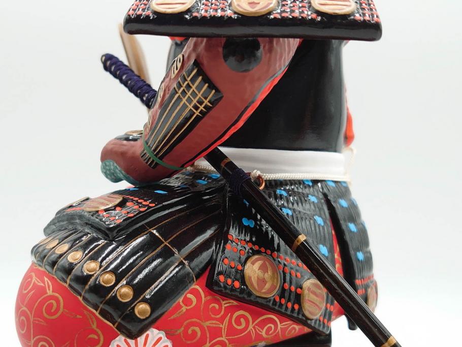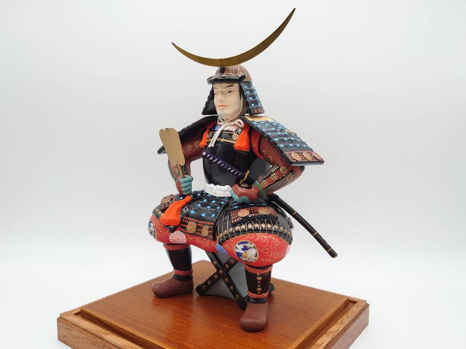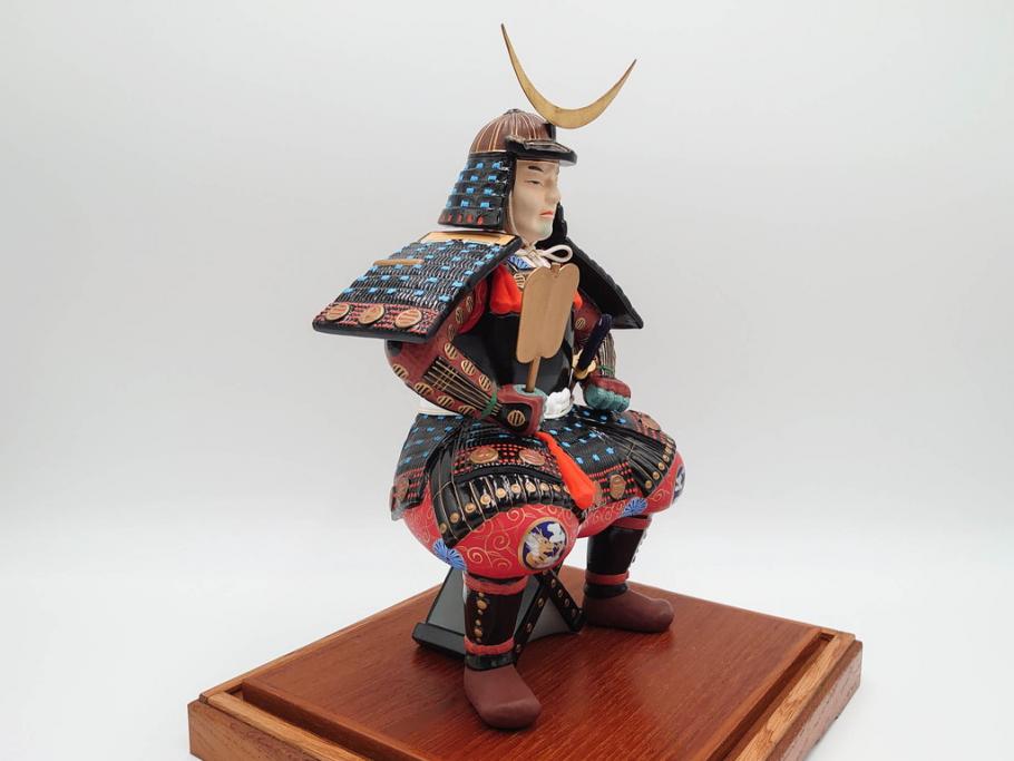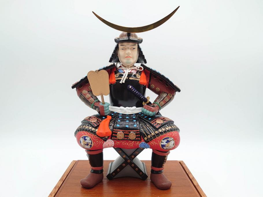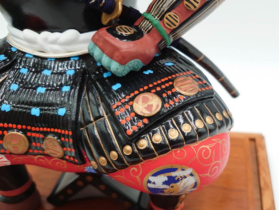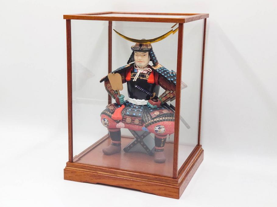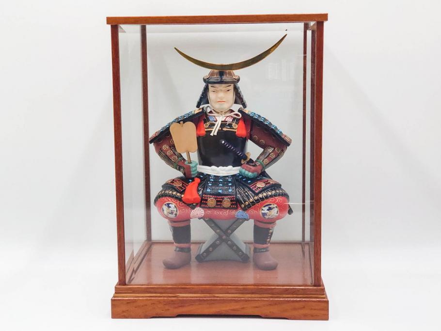 伊達政宗 ガラスケース付き 名将の風格を宿す堤人形(武将、土人形、伝統工芸、郷土玩具)(R-084371)