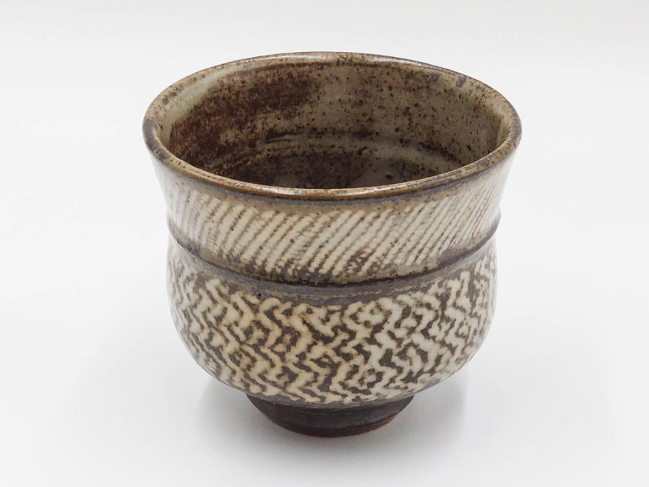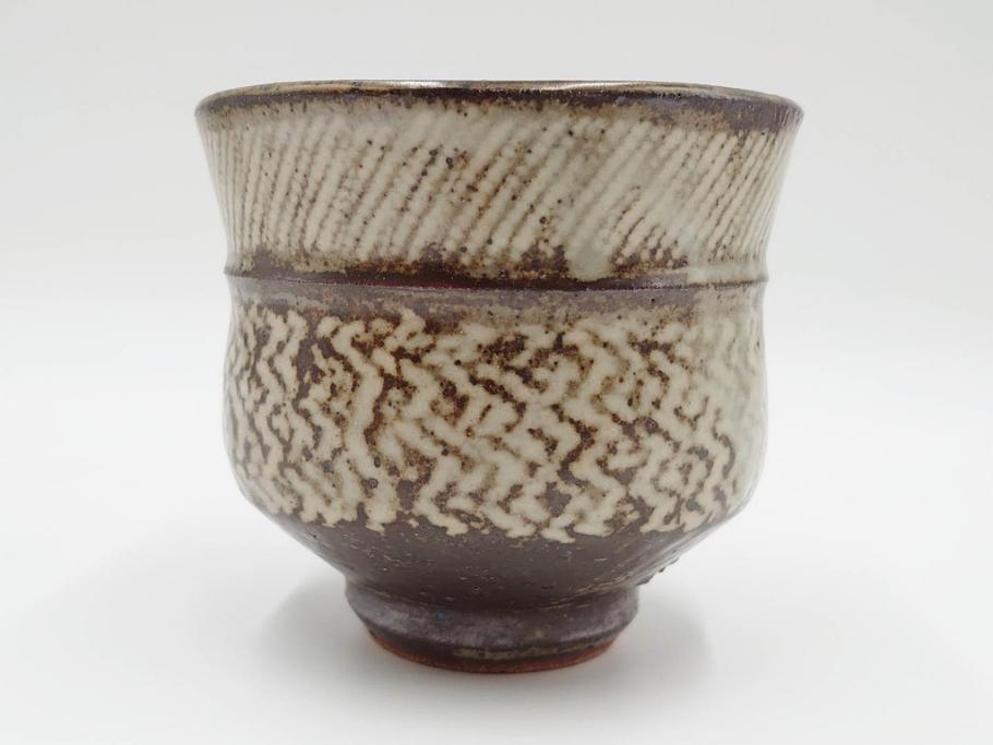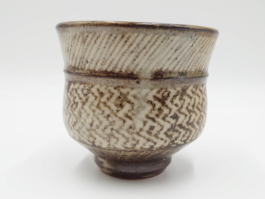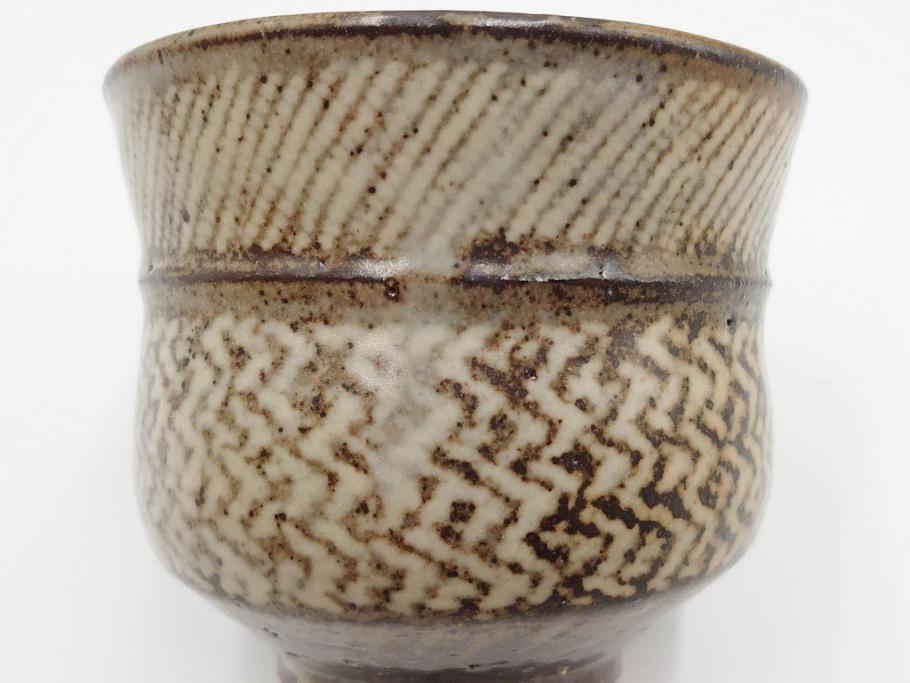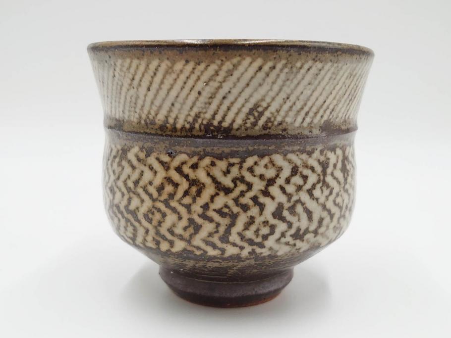ラフジュ工房> 和食器・茶道具> お椀・茶碗 > 人間国宝 島岡達三 益子焼 地釉象嵌 縄文碗 約11cm 3.6寸 熟練の職人技が息づく美しい文様が魅力の茶碗(R-084375)