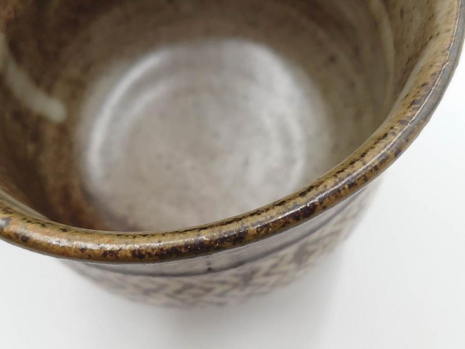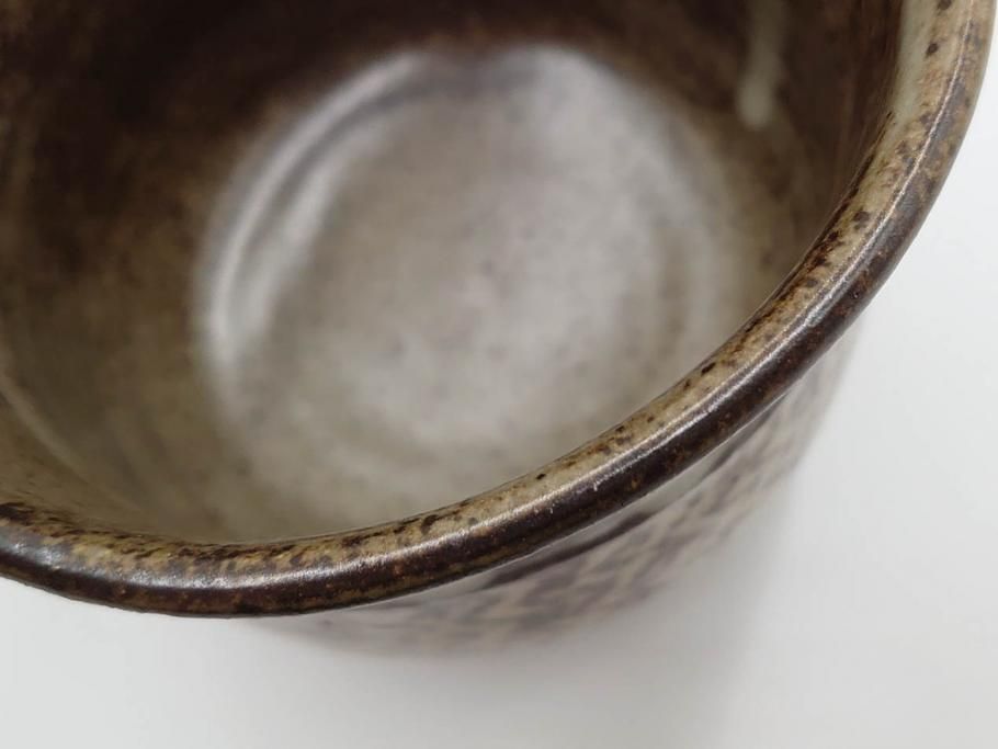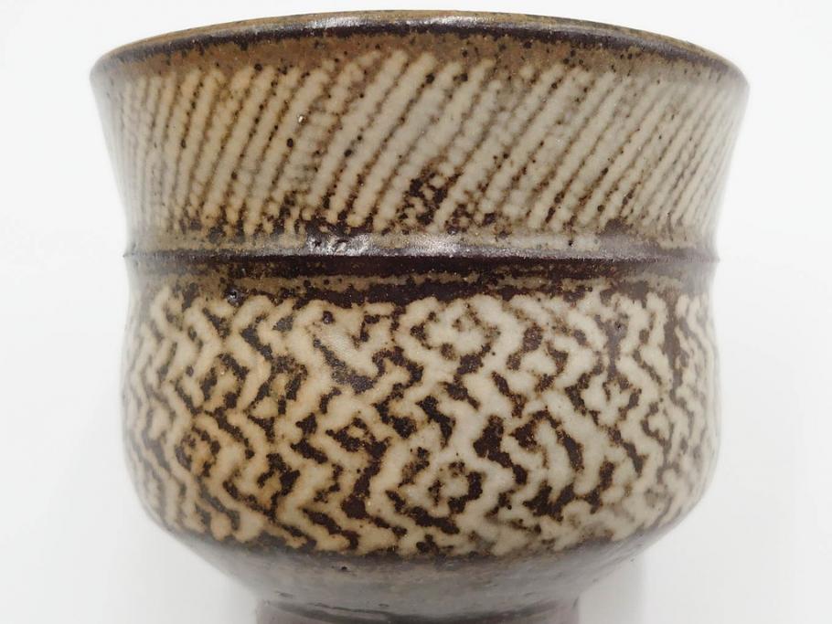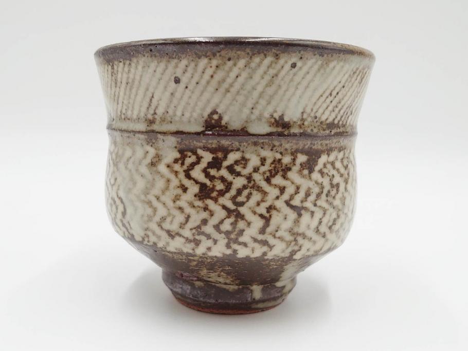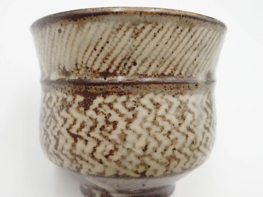 ラフジュ工房> 和食器・茶道具> お椀・茶碗 > 人間国宝 島岡達三 益子焼 地釉象嵌 縄文碗 約11cm 3.6寸 熟練の職人技が息づく美しい文様が魅力の茶碗(R-084375)