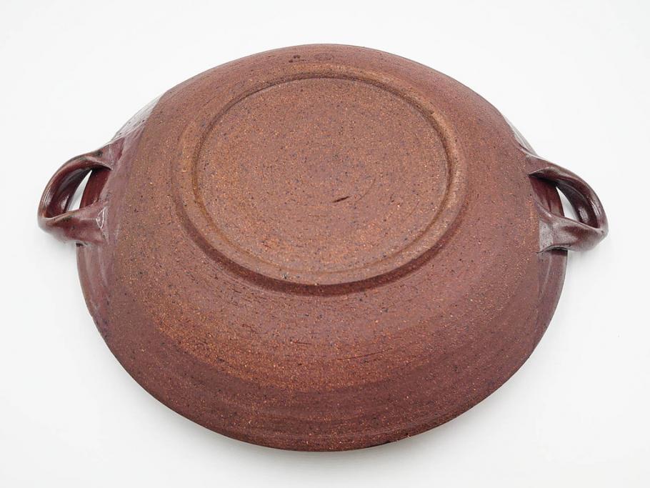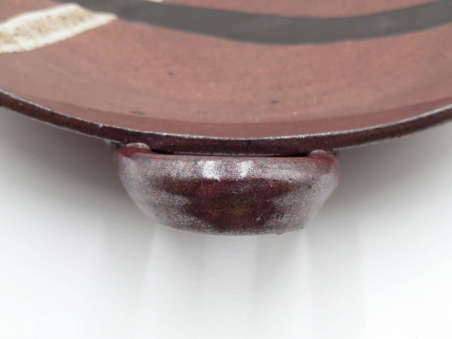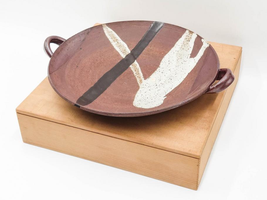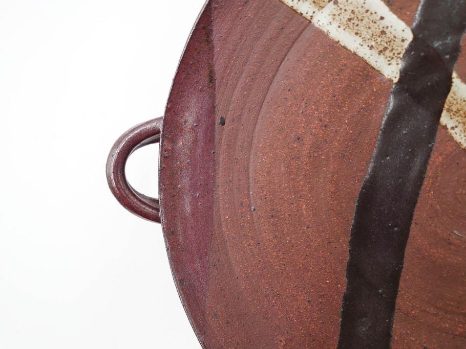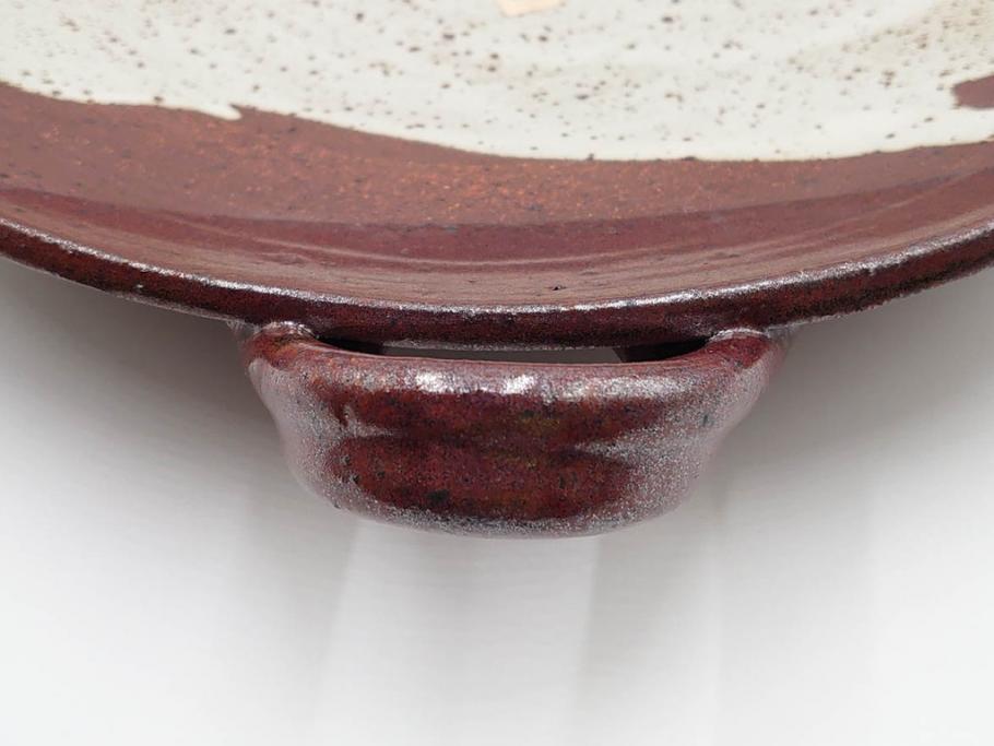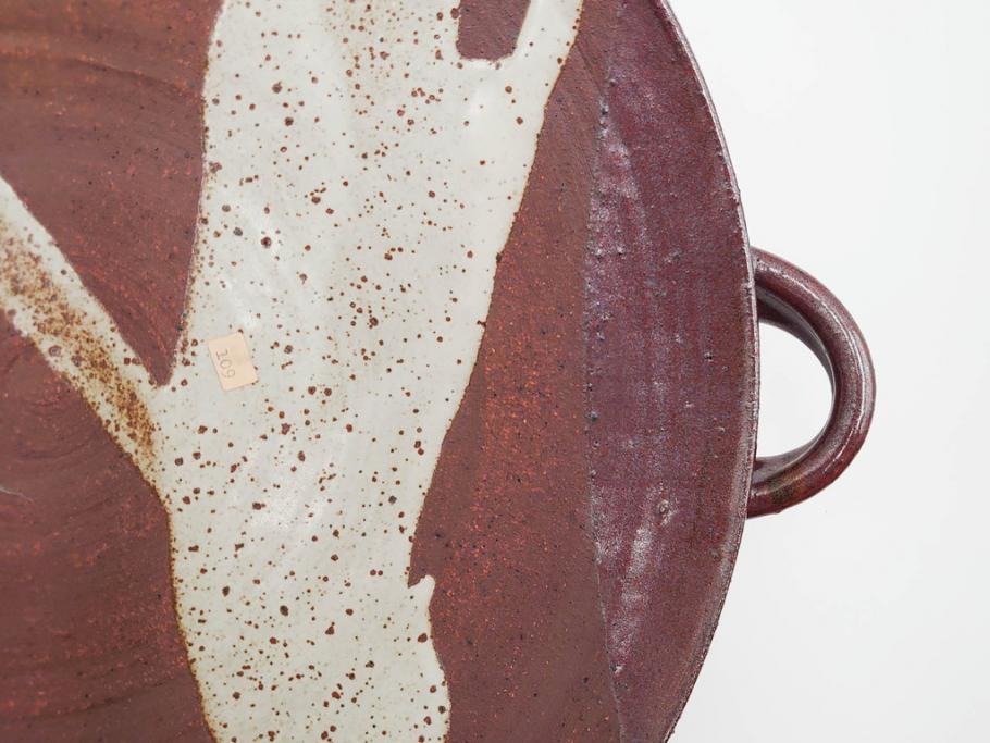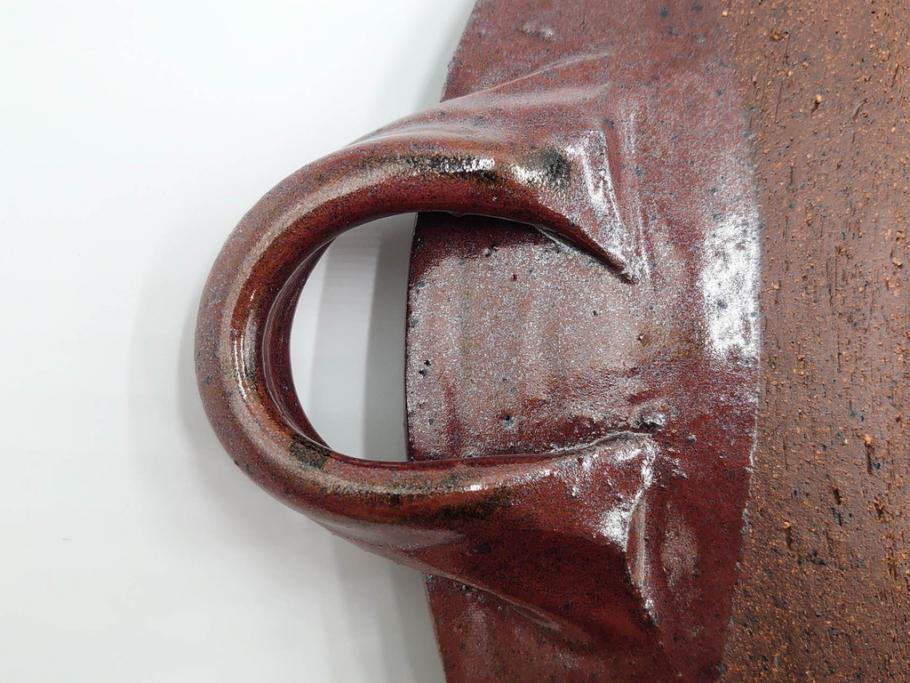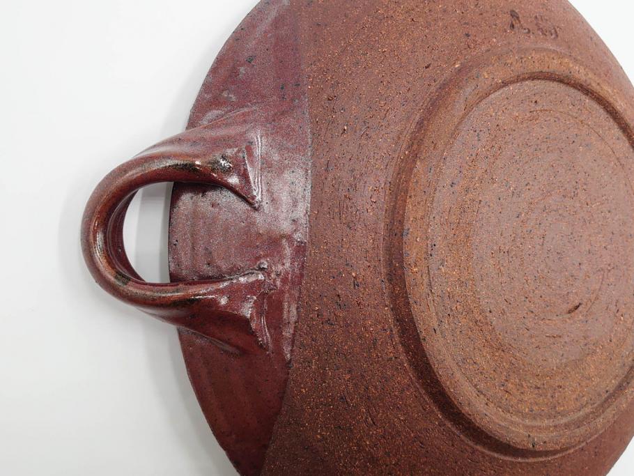 ラフジュ工房> 和食器・茶道具> 皿 > 1981年作 ジャネット・リーチ(Janet Leach) 取っ手付 赤地流釉 バーナード・リーチ夫人 約39cm 趣ある大皿(J・L、陶器、共箱付)(R-084379)