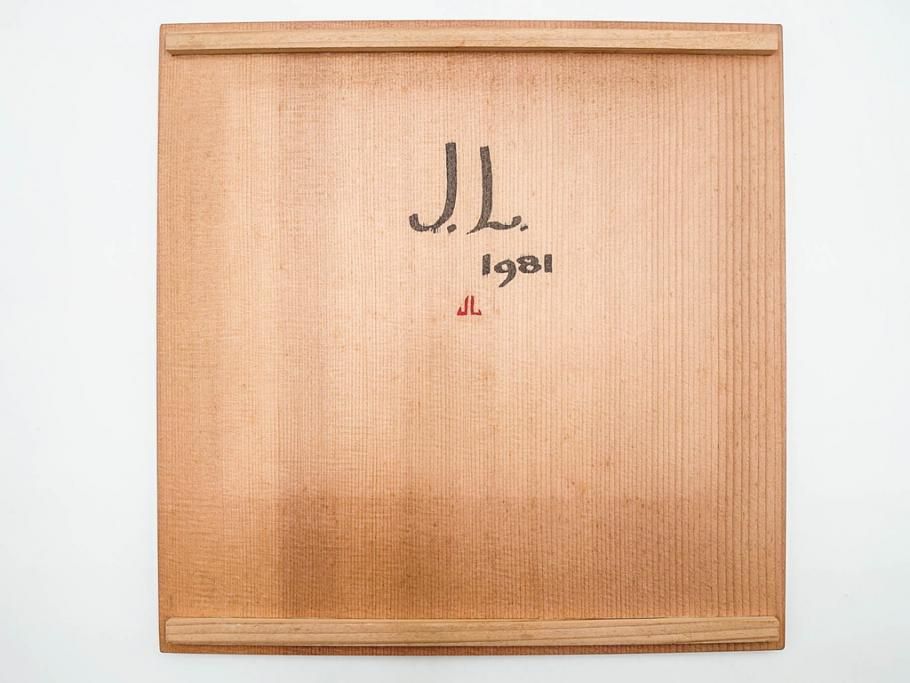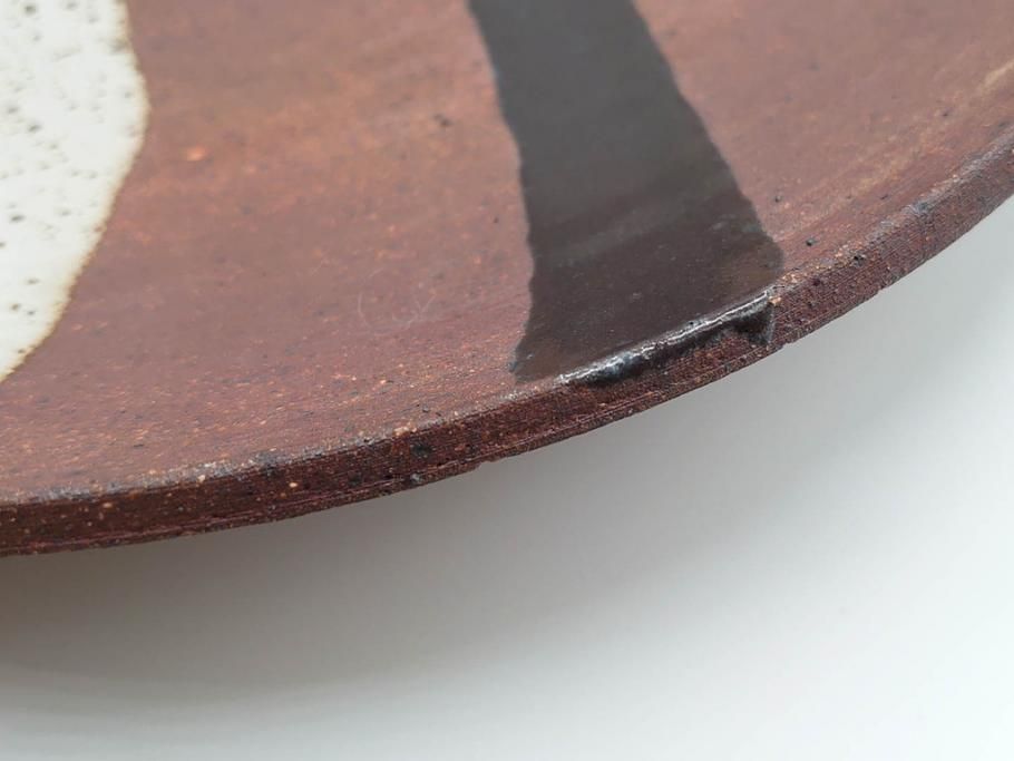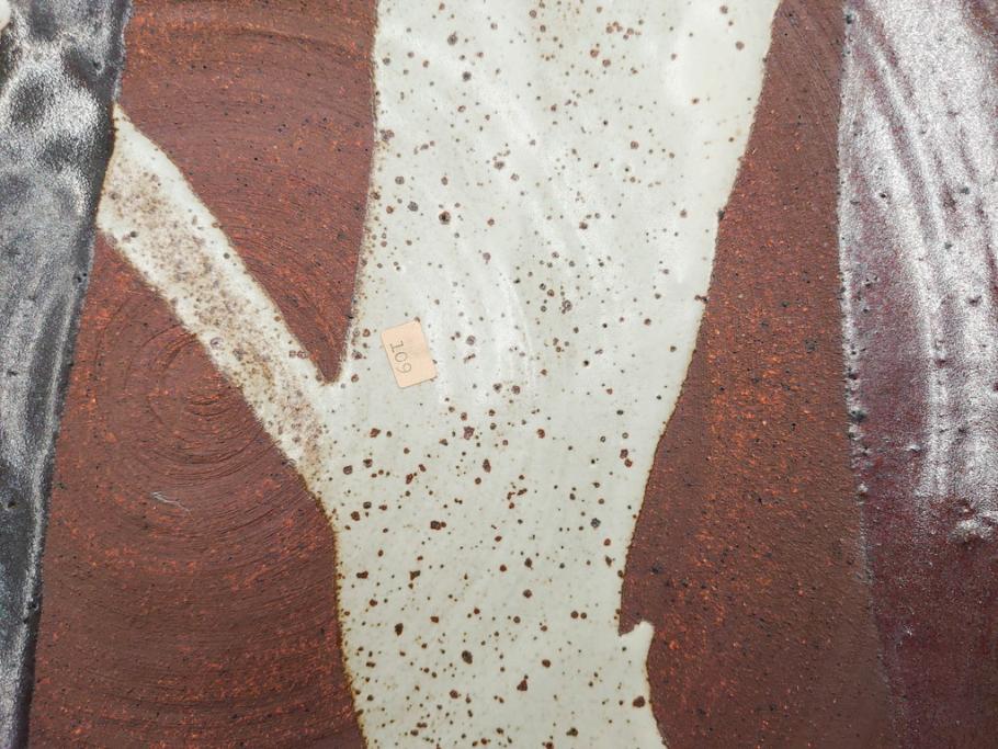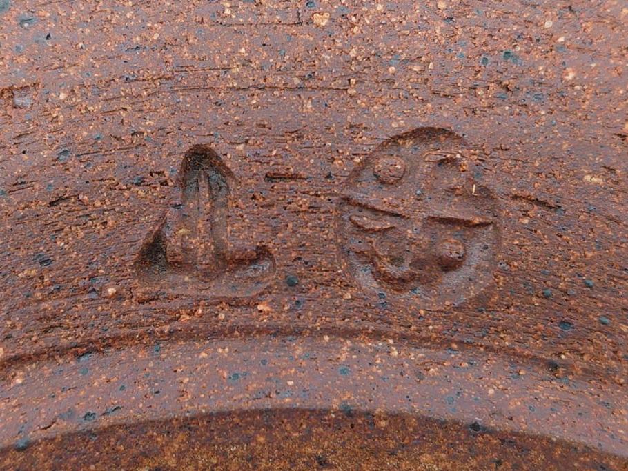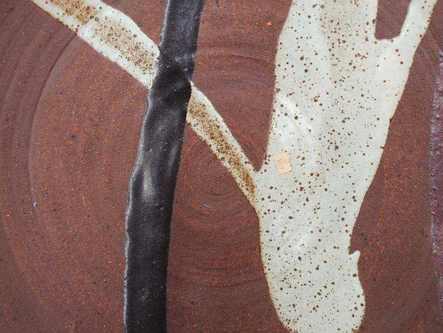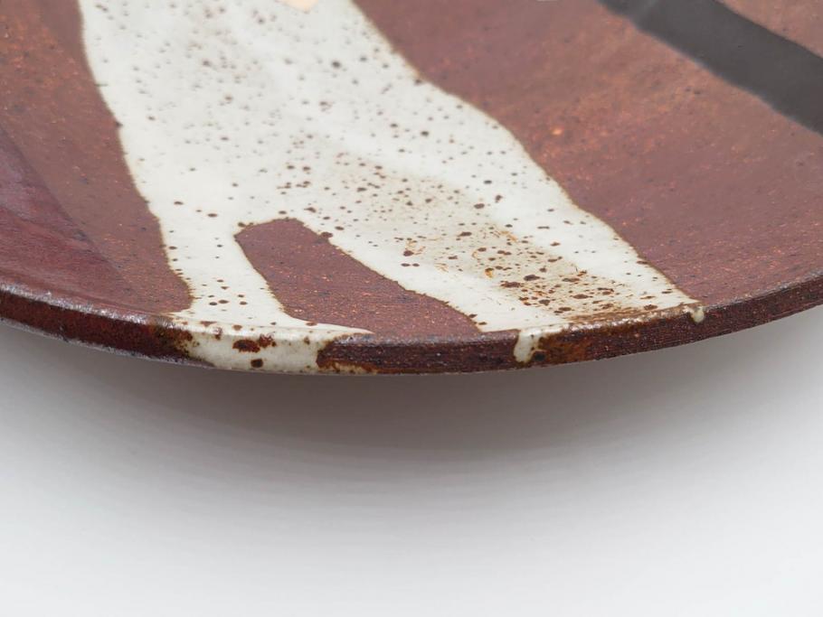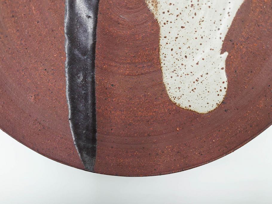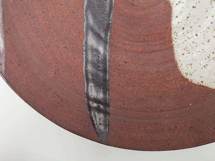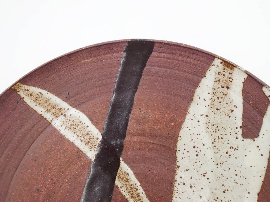ラフジュ工房> 和食器・茶道具> 皿 > 1981年作 ジャネット・リーチ(Janet Leach) 取っ手付 赤地流釉 バーナード・リーチ夫人 約39cm 趣ある大皿(J・L、陶器、共箱付)(R-084379)