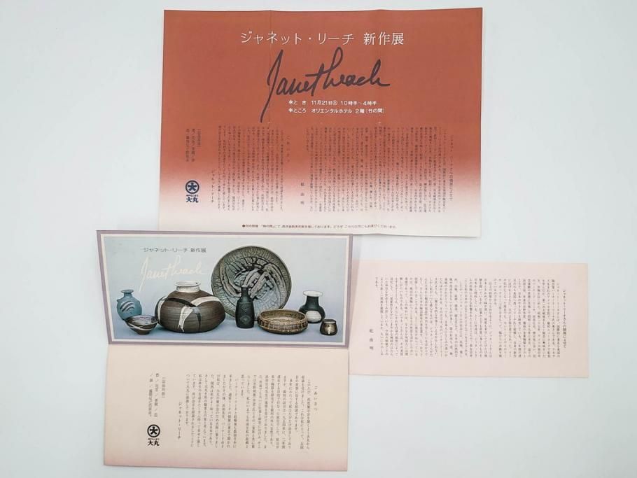 1981年作 ジャネット・リーチ(Janet Leach) 取っ手付 赤地流釉 バーナード・リーチ夫人 約39cm 趣ある大皿(J・L、陶器、共箱付)(R-084379)