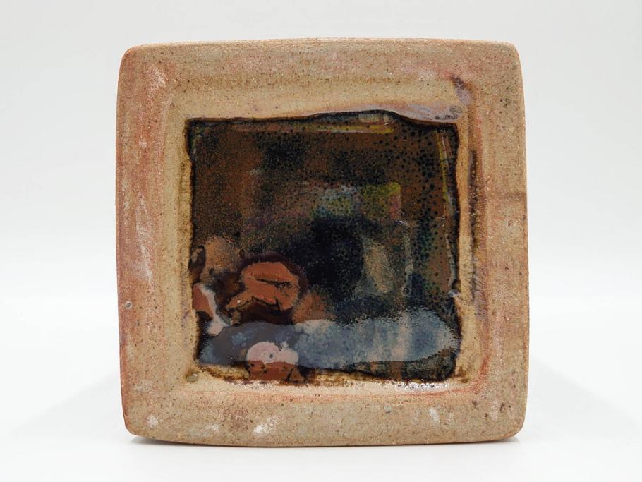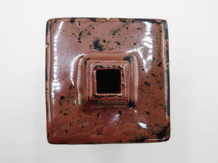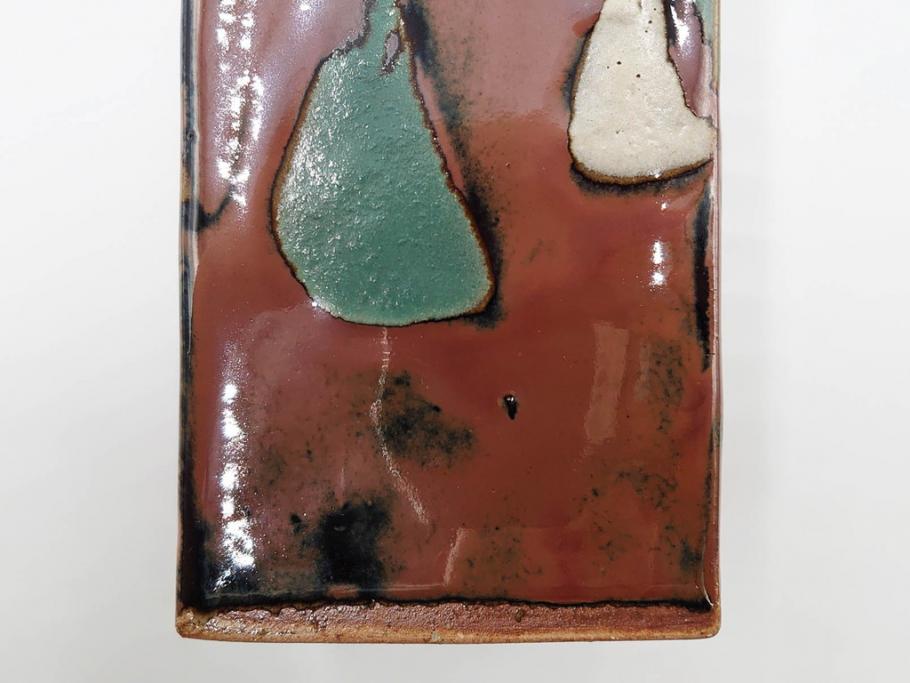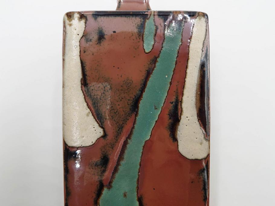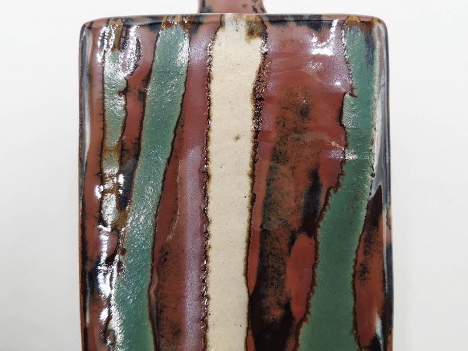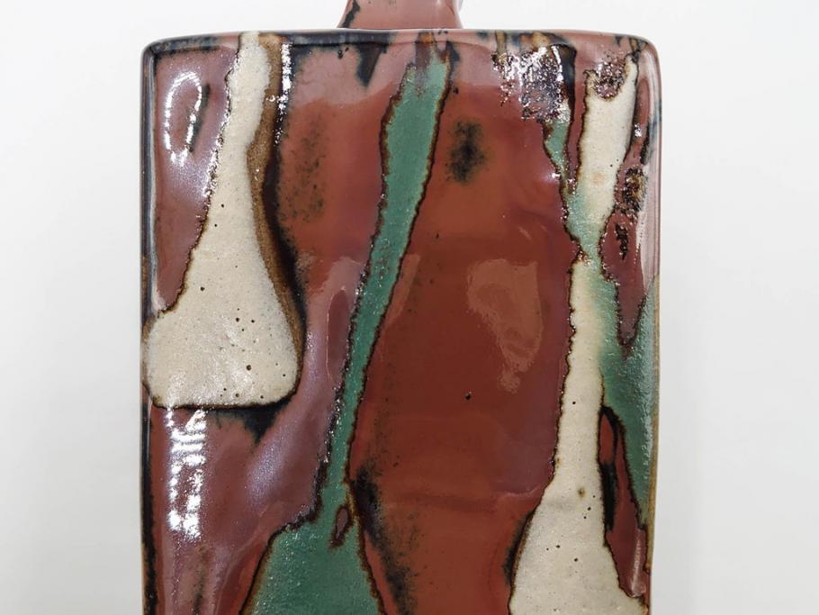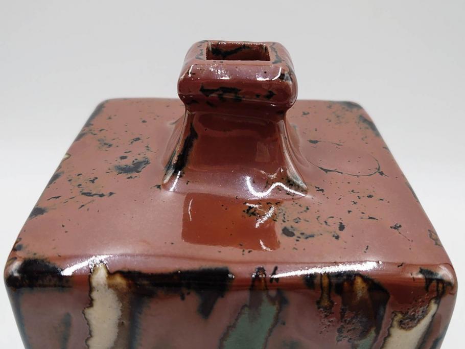 ラフジュ工房> 骨董・美術品> 骨董-陶磁器 > 人間国宝 濱田庄司(浜田庄司) 益子焼 柿釉青流 空間に奥行きと趣を与える角瓶(花瓶、花生、花入、花器、フラワーベース、壺、壷、共箱付)(R-084380)
