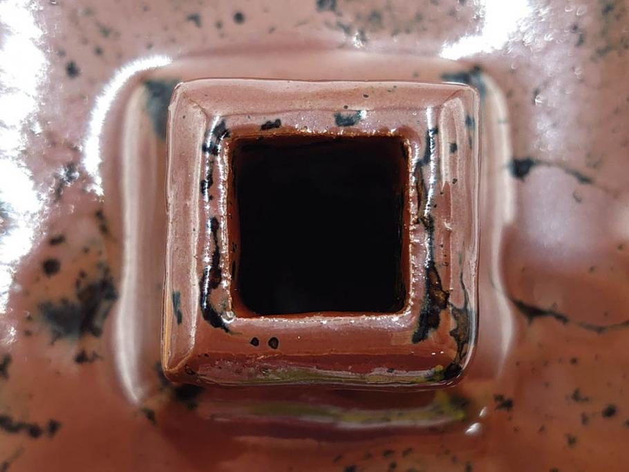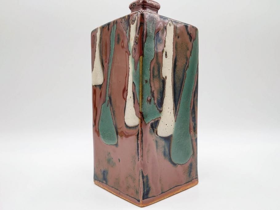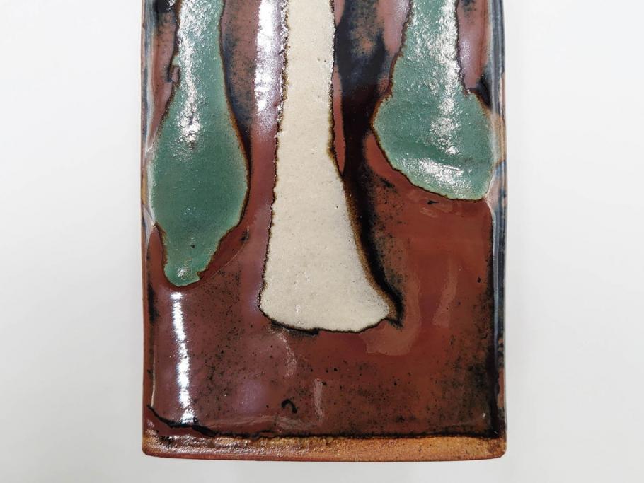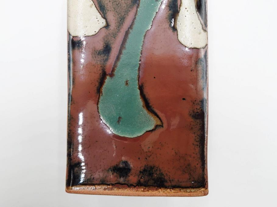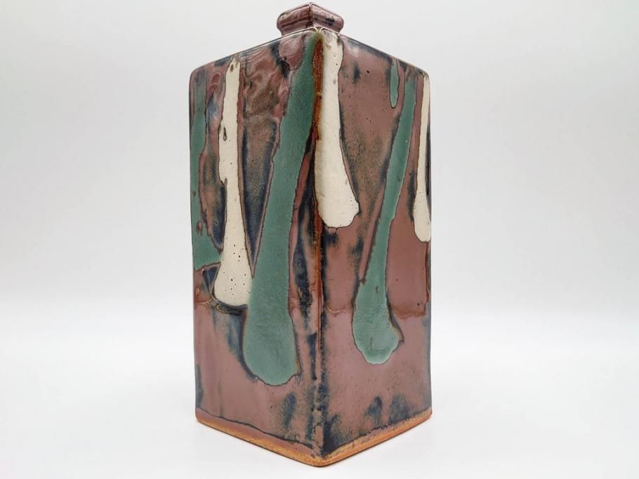 ラフジュ工房> 雑貨> ガラス瓶・花瓶 > 人間国宝 濱田庄司(浜田庄司) 益子焼 柿釉青流 空間に奥行きと趣を与える角瓶(花瓶、花生、花入、花器、フラワーベース、壺、壷、共箱付)(R-084380)