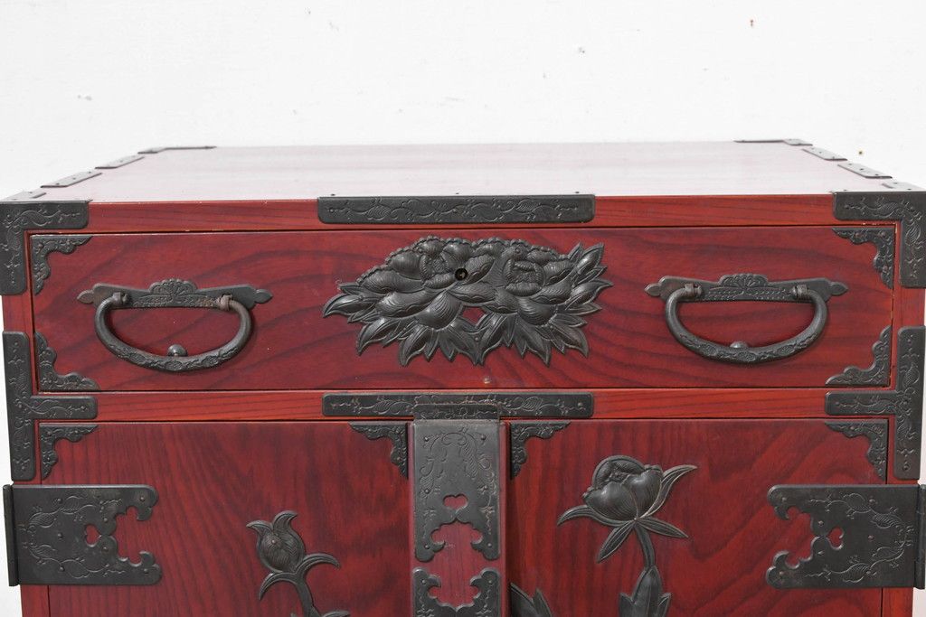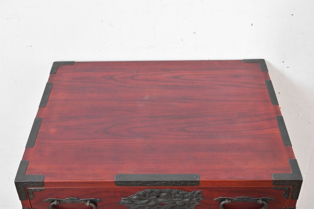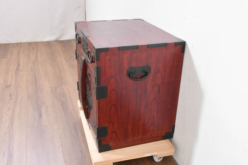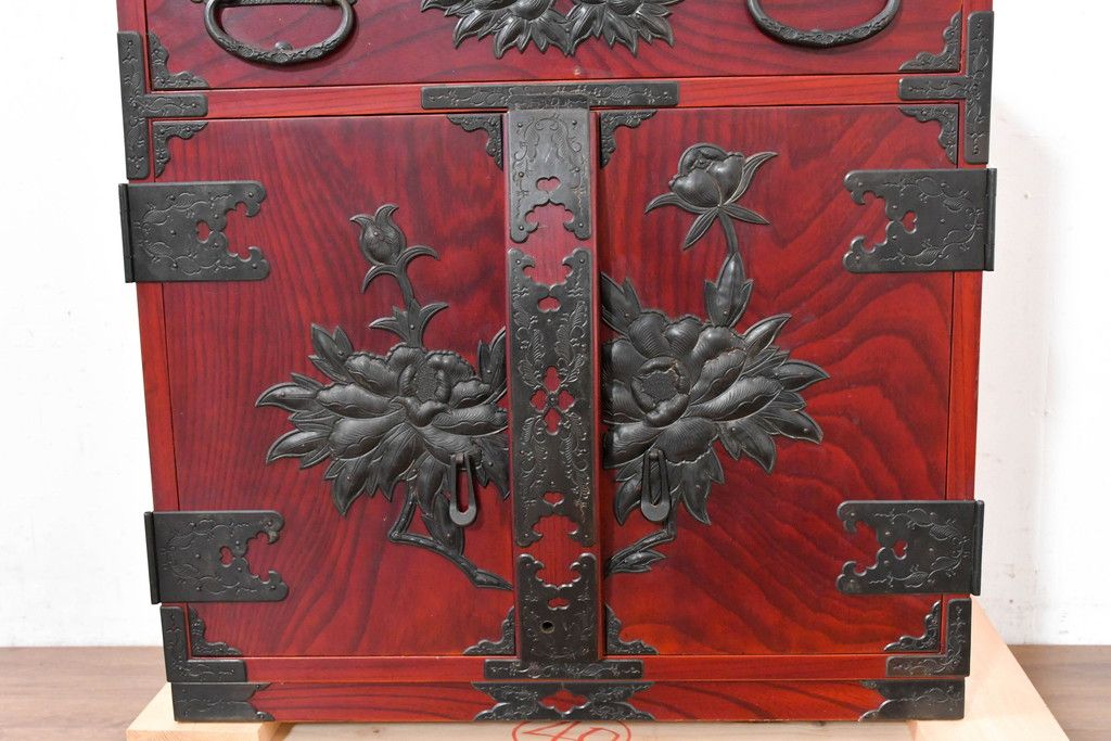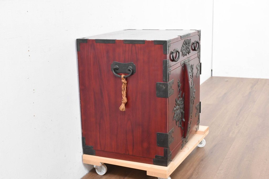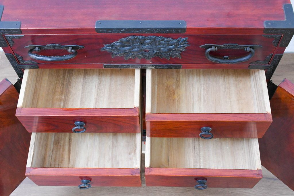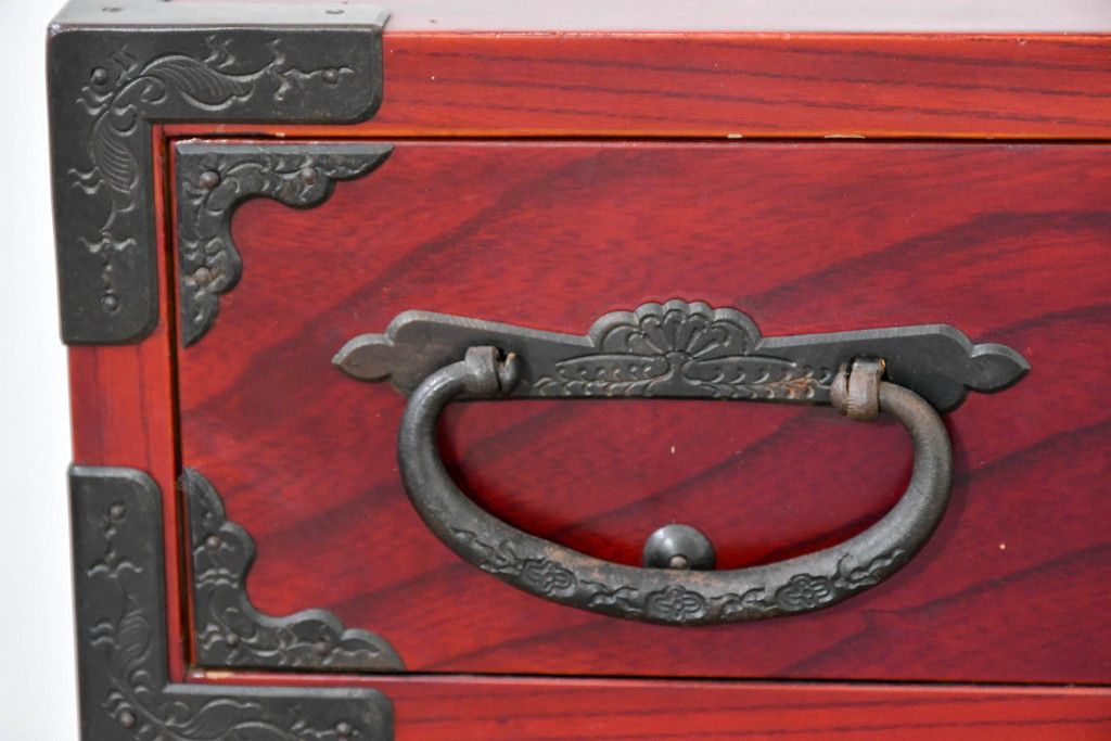 和箪笥> 小箪笥 > 和製ビンテージ 木地呂塗り 閂(かんぬき)付き 味わい深い色合いが魅力のカラクリ付き仙台小箪笥(仙台箪笥、収納箪笥、和たんす、整理タンス、引き出し、ヴィンテージ)(R-084385)