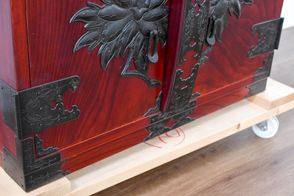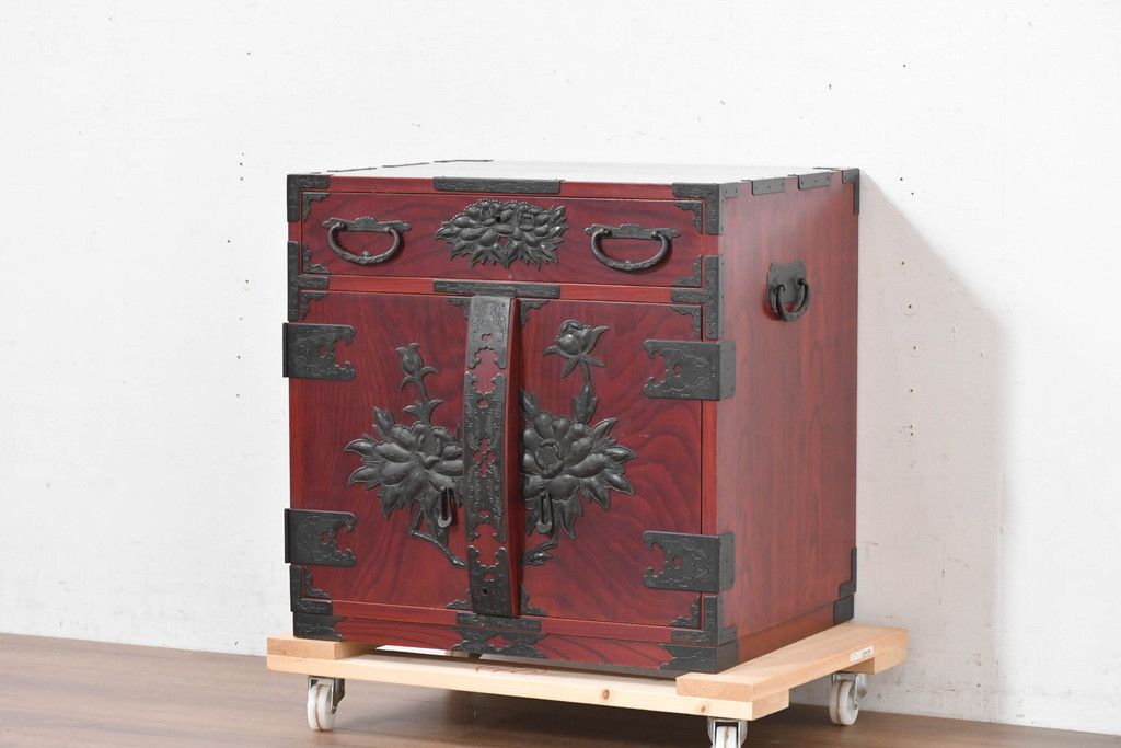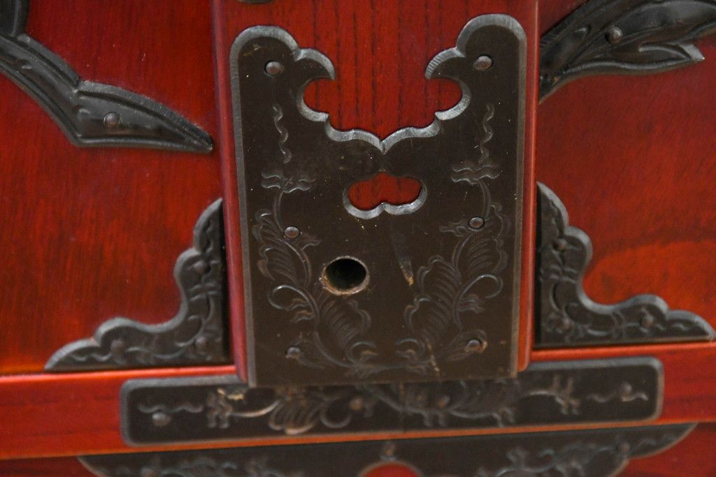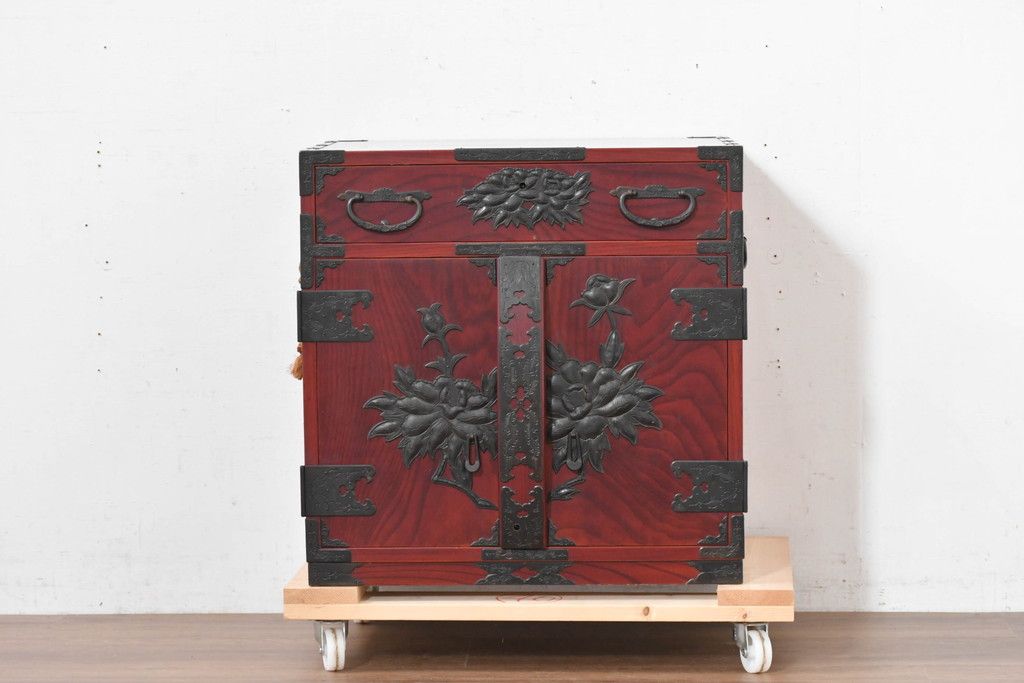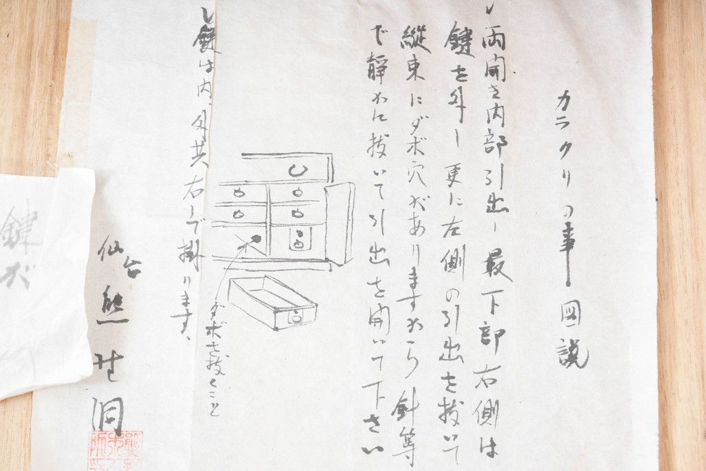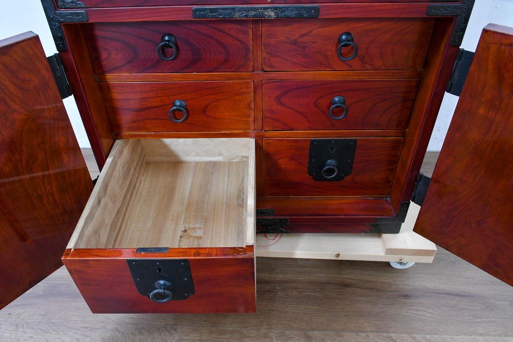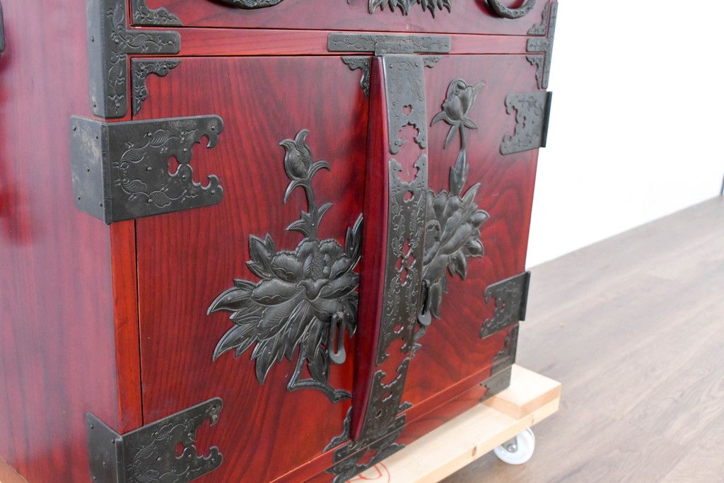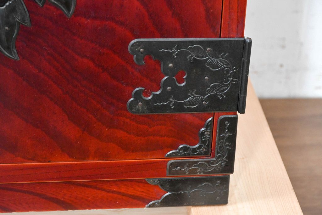 和箪笥> 小箪笥 > 和製ビンテージ 木地呂塗り 閂(かんぬき)付き 味わい深い色合いが魅力のカラクリ付き仙台小箪笥(仙台箪笥、収納箪笥、和たんす、整理タンス、引き出し、ヴィンテージ)(R-084385)