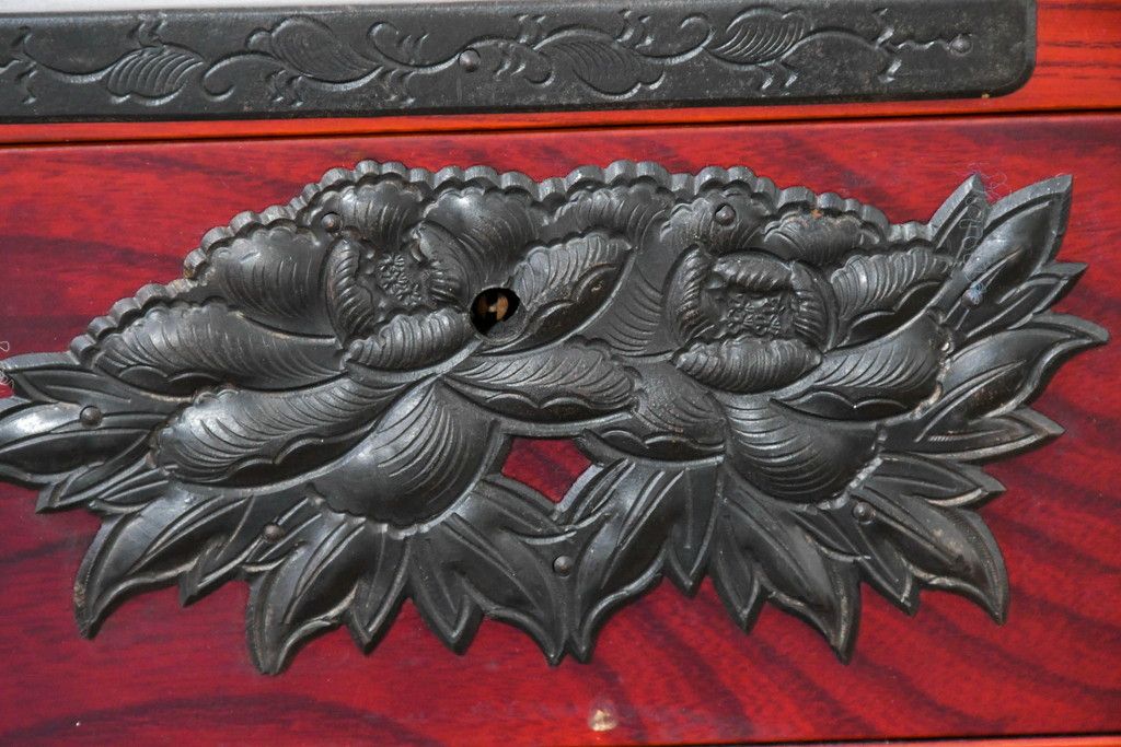 和製ビンテージ 木地呂塗り 閂(かんぬき)付き 味わい深い色合いが魅力のカラクリ付き仙台小箪笥(仙台箪笥、収納箪笥、和たんす、整理タンス、引き出し、ヴィンテージ)(R-084385)