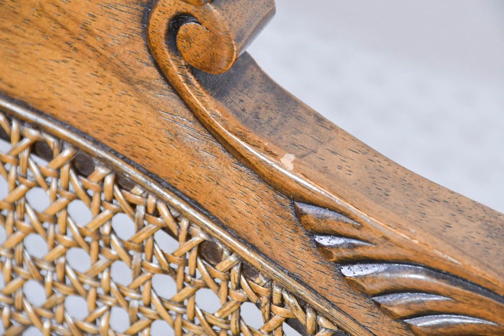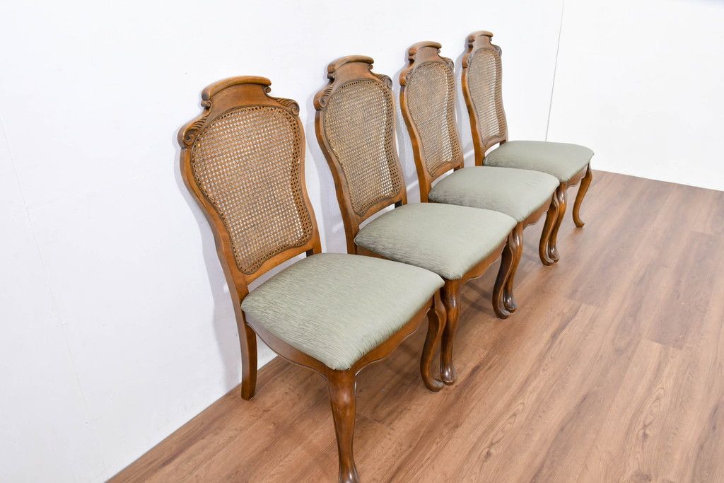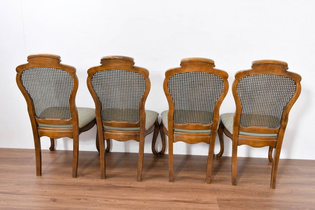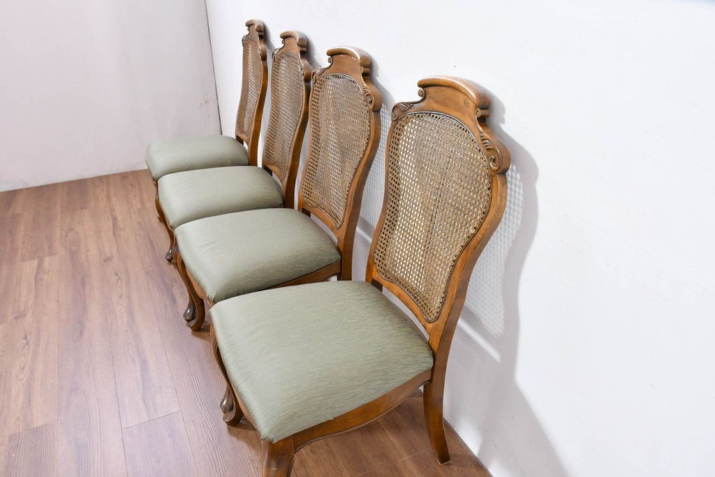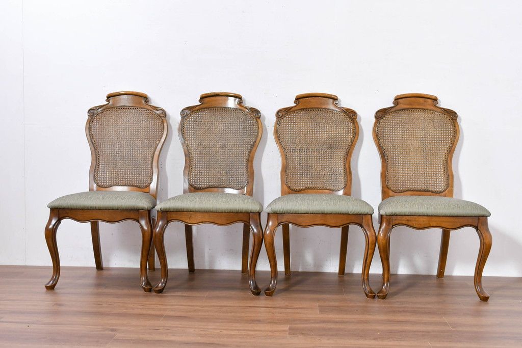 中古 アメリカ 落ち着いた色合いとクラシカルな装飾が調和した高級感あふれるチェア4脚セット(ダイニングチェア、椅子、イス、バラ売り可能)(R-084388)です。