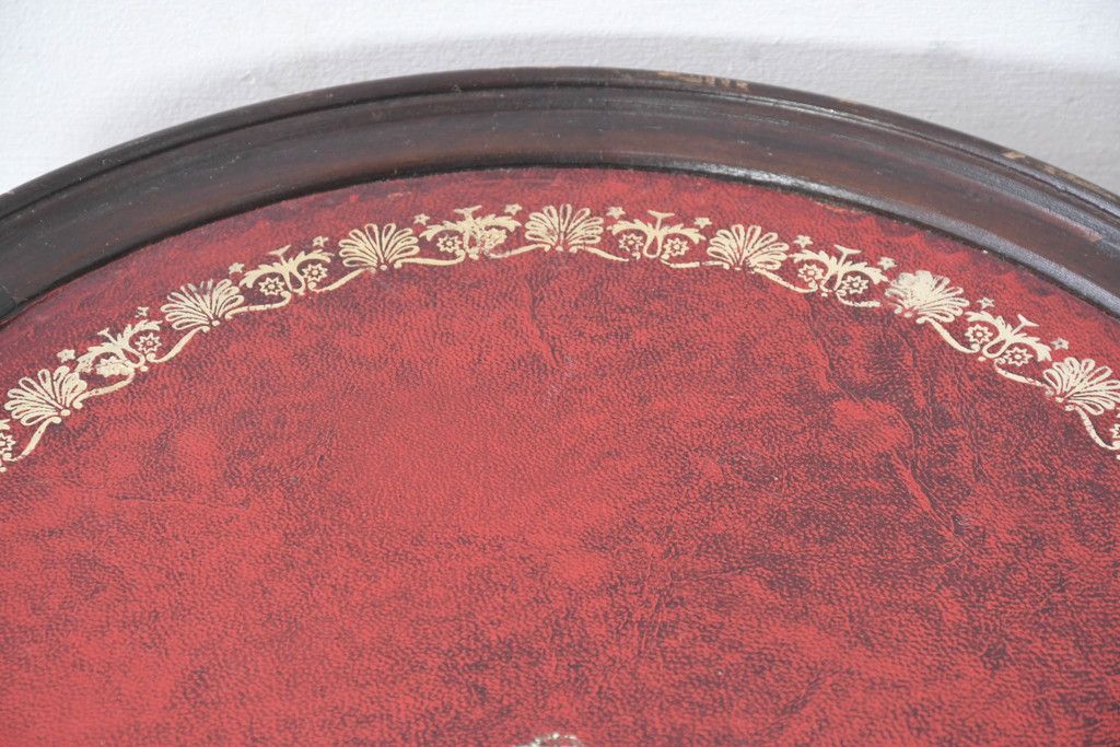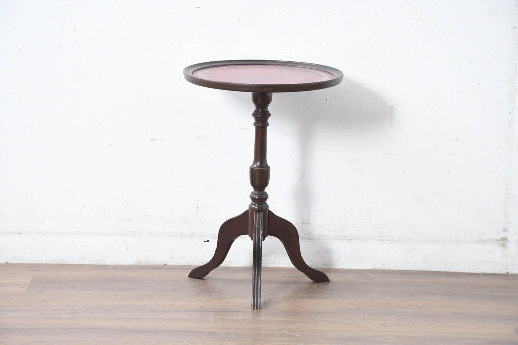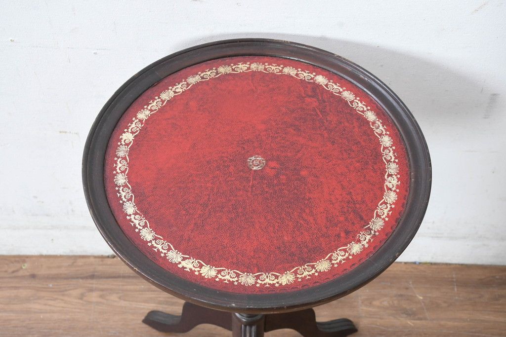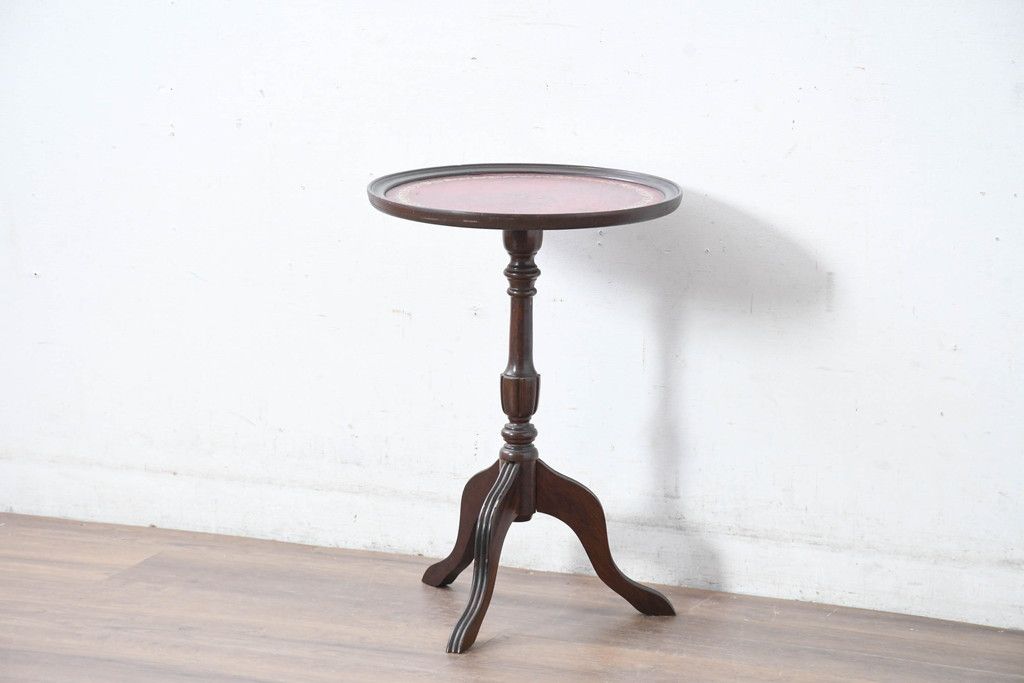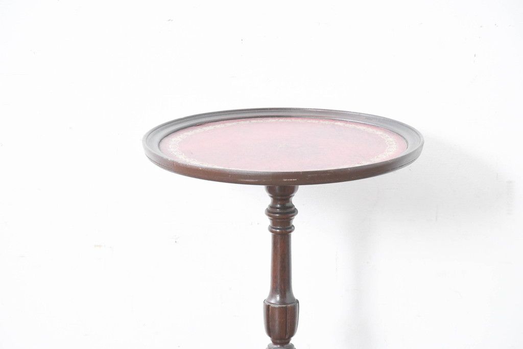 ラフジュ工房> テーブル> カフェテーブル・コーヒーテーブル > イギリスビンテージ クラシカルな佇まいが魅力のレザートップワインテーブル(サイドテーブル、コーヒーテーブル、カフェテーブル、丸テーブル、ラウンドテーブル、花台、ヴィンテージ、英国)(R-084390)