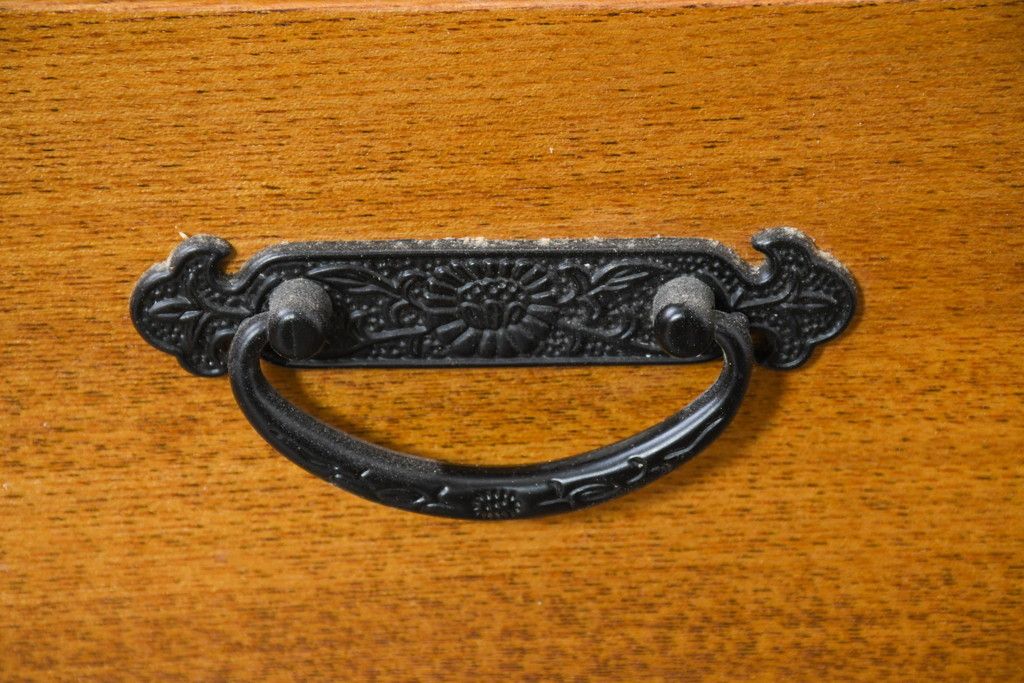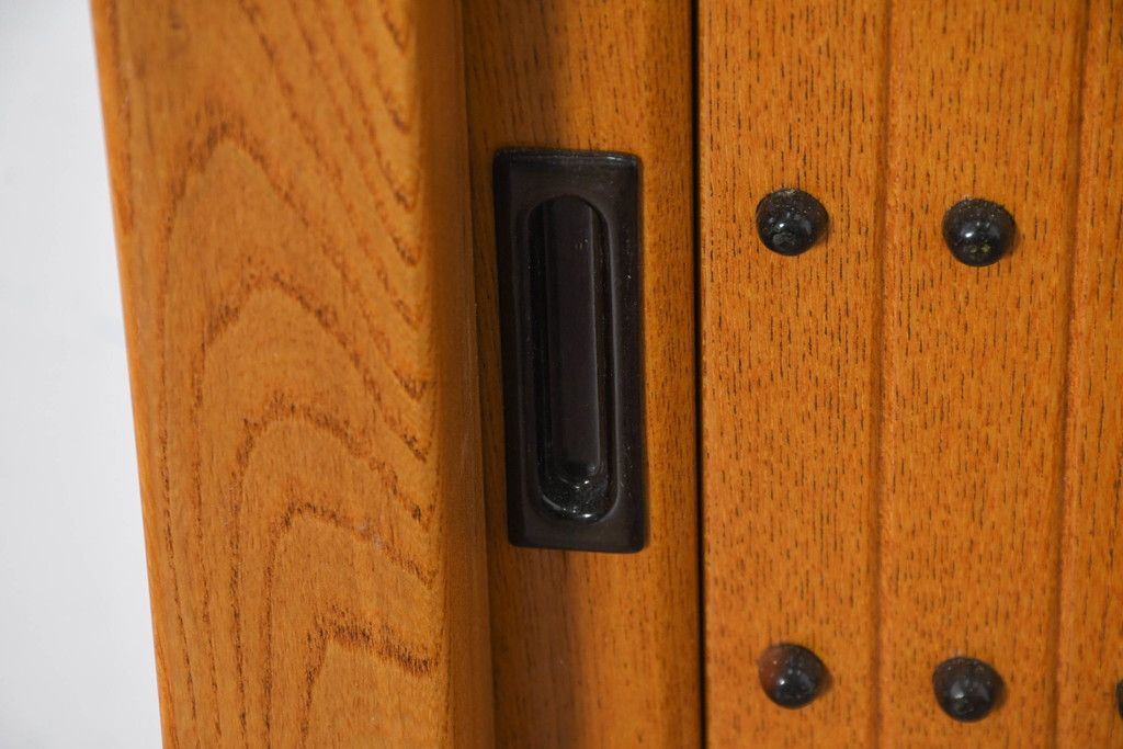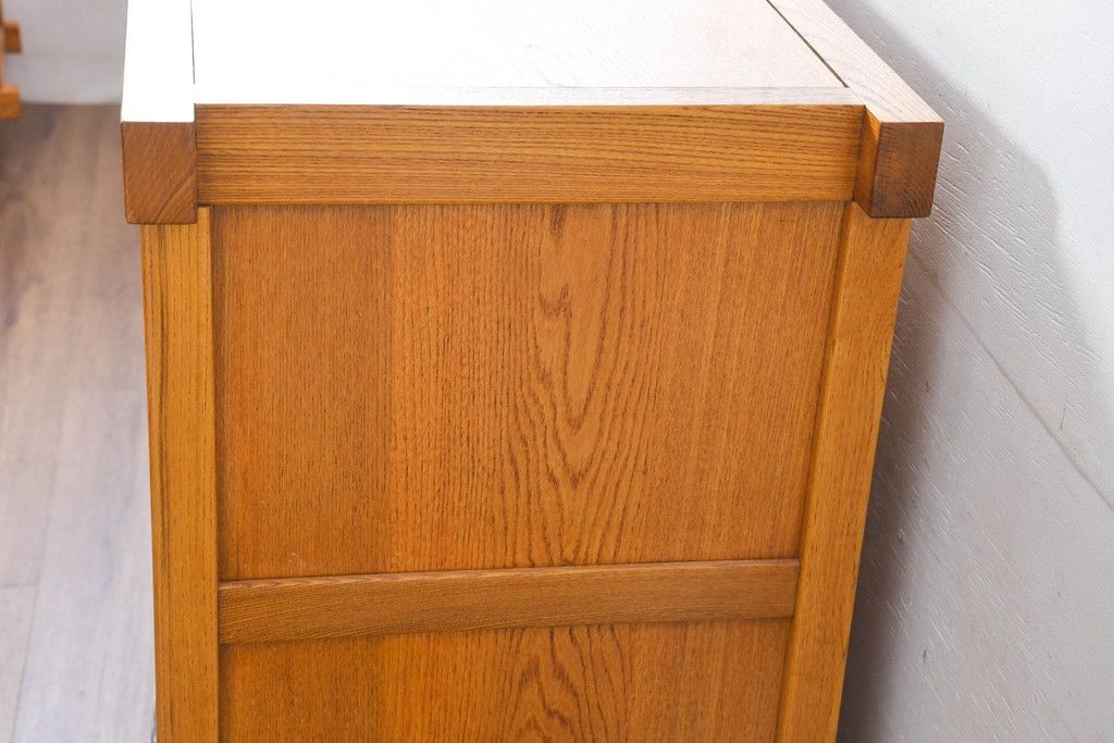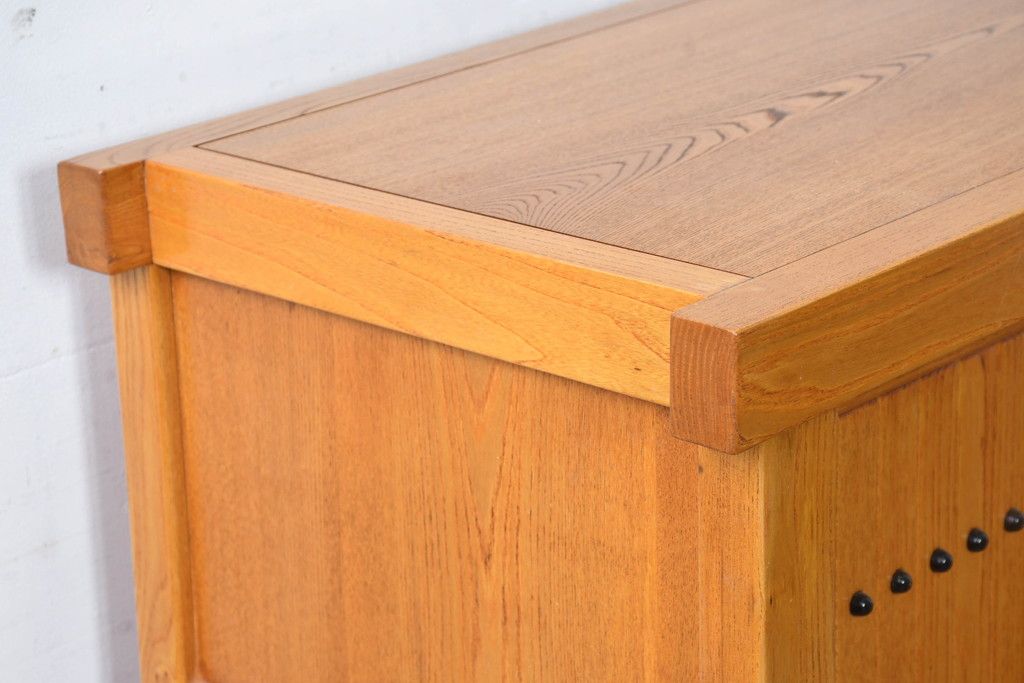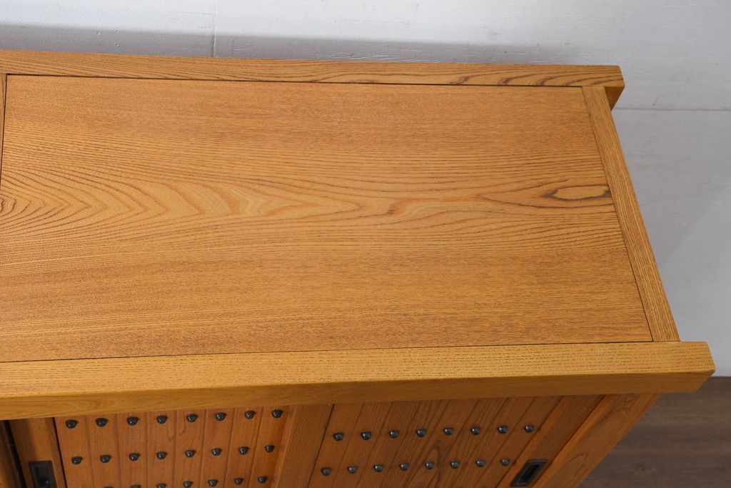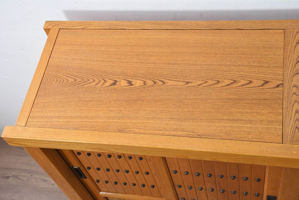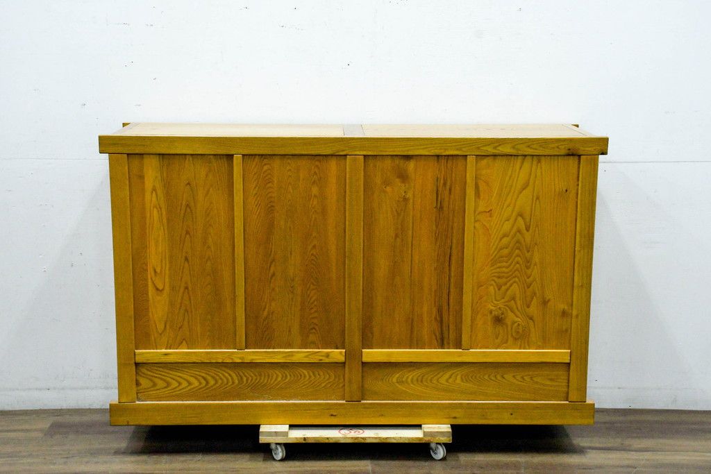 中古 美品 ニレ材 暮らしに和の温もりと重厚な存在感を添える水屋箪笥サイドボード(食器棚、収納棚、戸棚、カップボード、サイドキャビネット)(R-084394)です。