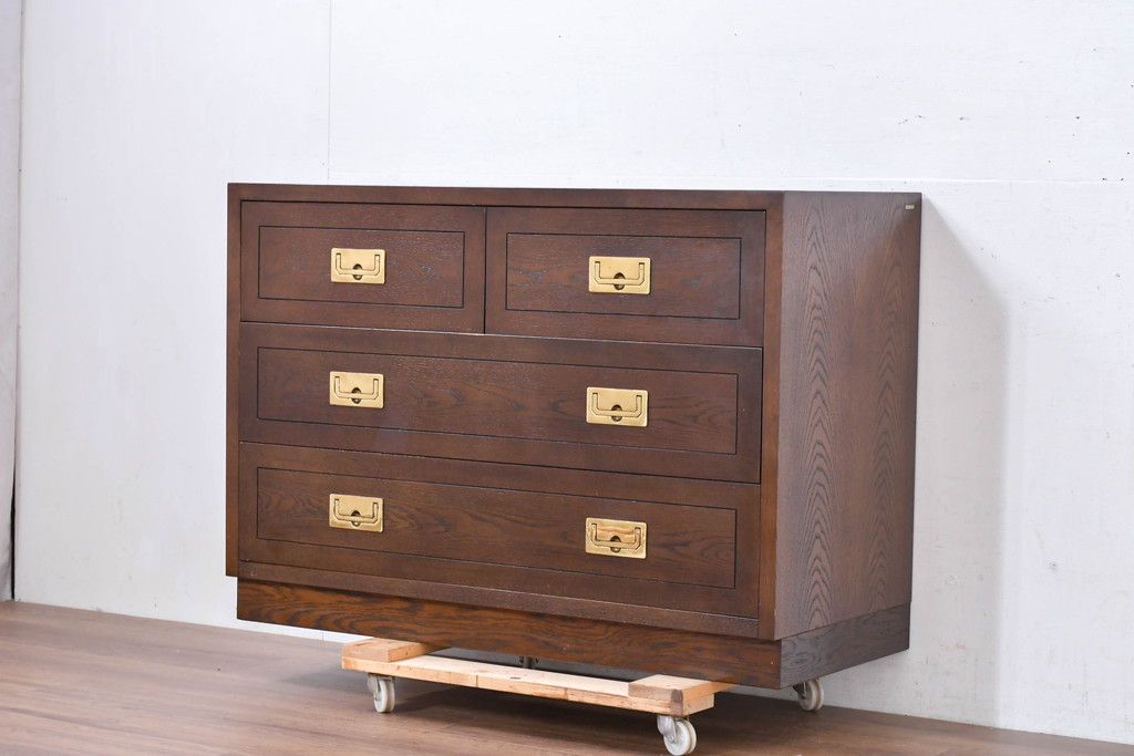 チェスト・引き出し > 中古 美品 カリモク家具(karimoku) domani(ドマーニ) Morganton(モーガントン) 落ち着きのあるブラウンにゴールドの取っ手が映えるチェスト(サイドチェスト、引き出し)(定価約30万円)(R-084397)