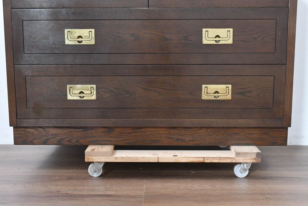 中古 美品 カリモク家具(karimoku) domani(ドマーニ) Morganton(モーガントン) 落ち着きのあるブラウンにゴールドの取っ手が映えるチェスト(サイドチェスト、引き出し)(定価約30万円)(R-084397)