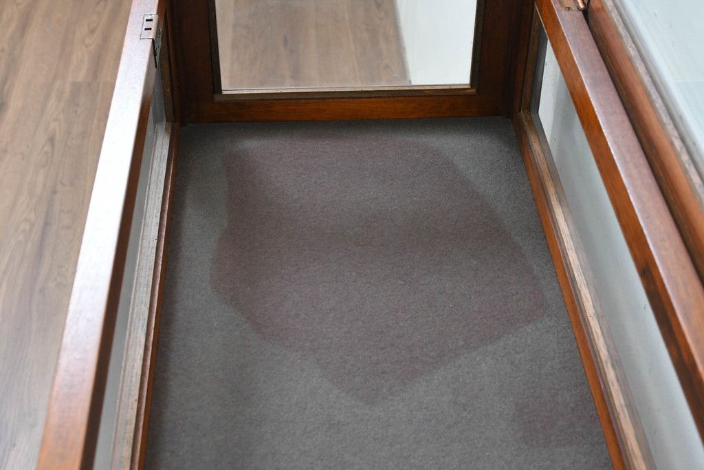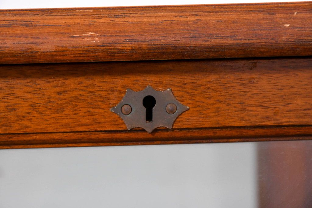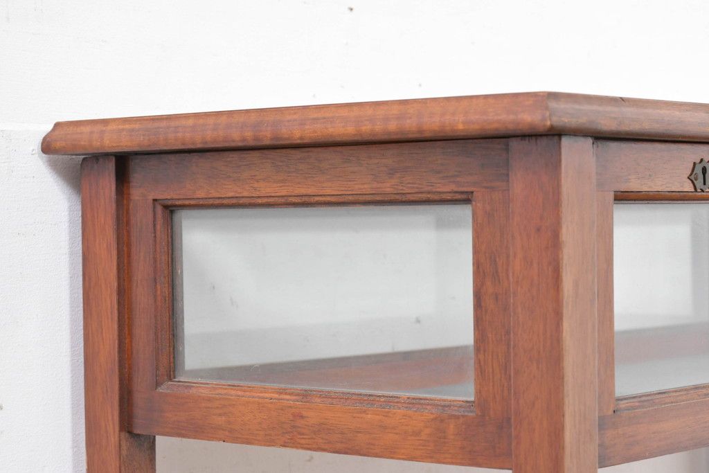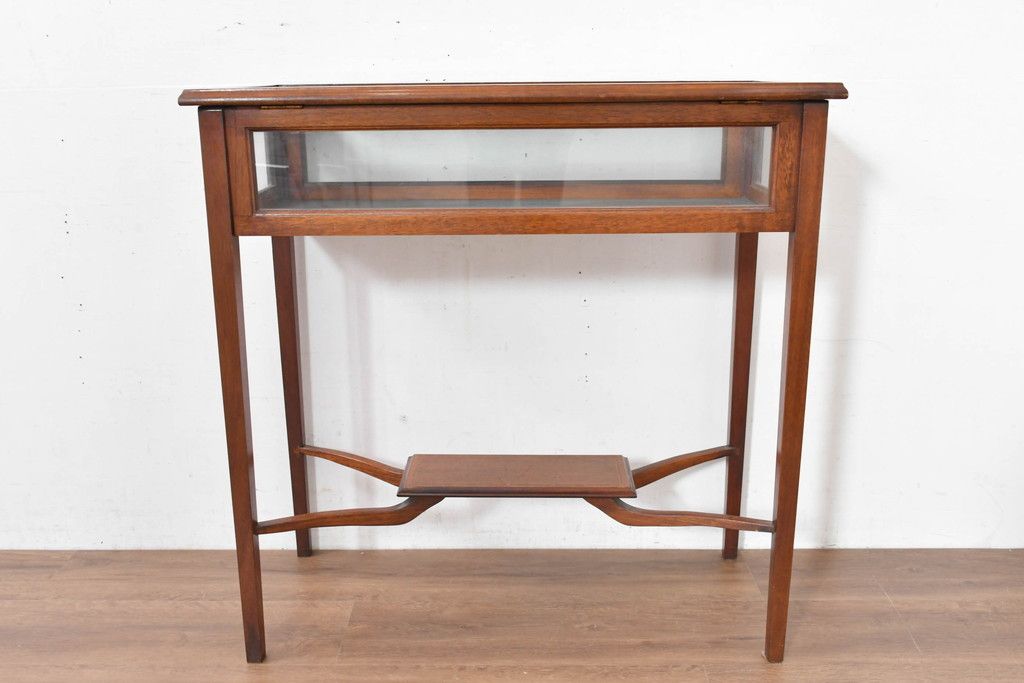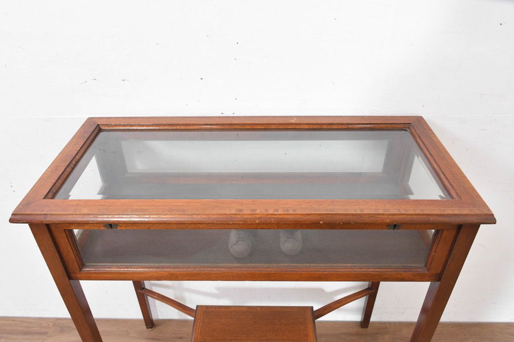 ガラスケース・ショーケース> コレクションケース > イギリスビンテージ マホガニー材 象嵌入り 美しさと機能性を兼ね備えた魅せる収納が叶う上開き扉付きショーケース(ガラスケース、Gケース、ディスプレイケース、コレクションケース、飾り棚、陳列棚、店舗什器、ヴィンテージ、英国)(R-084401)
