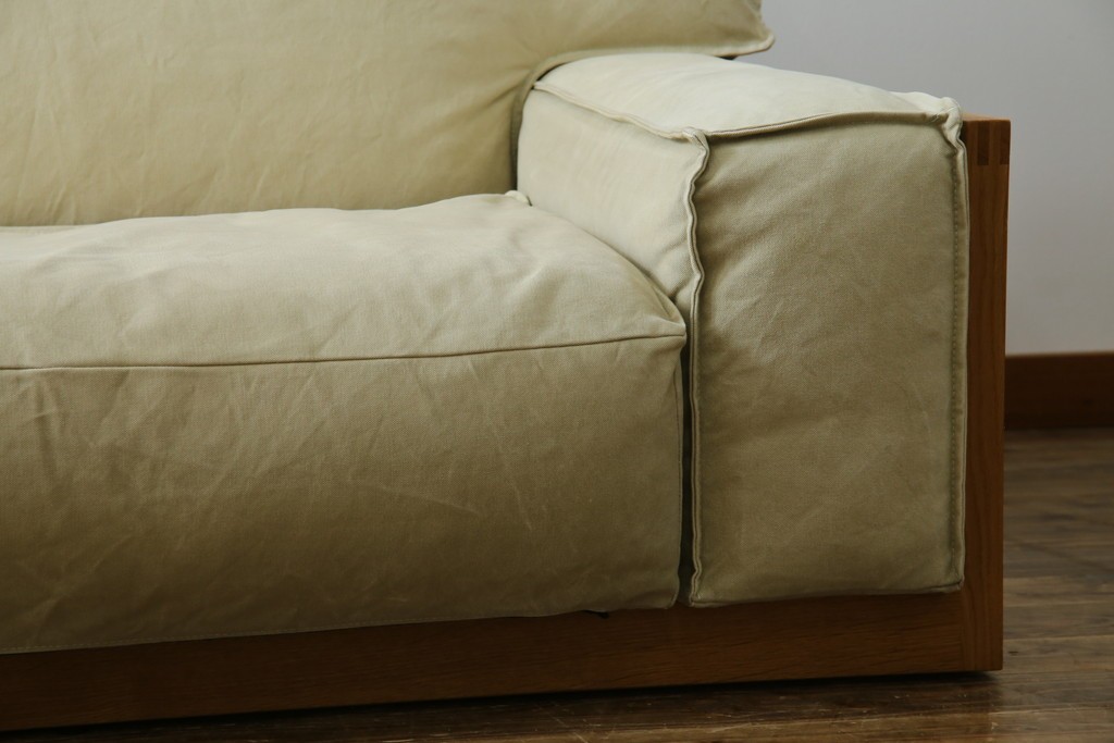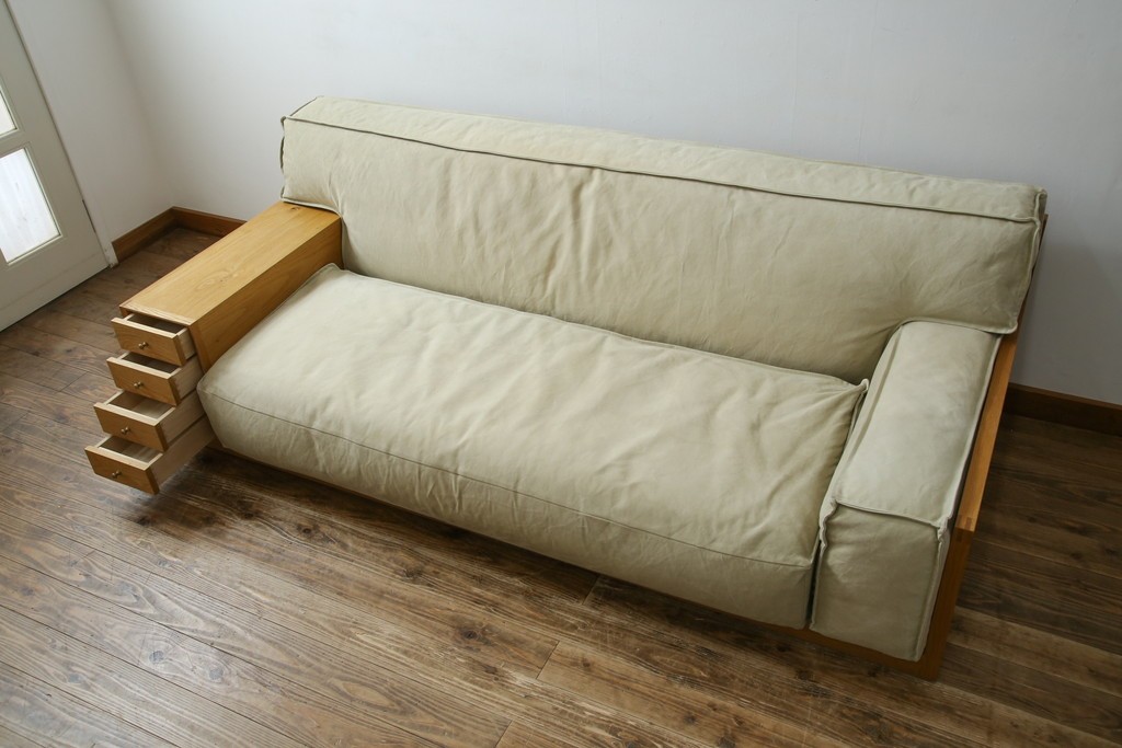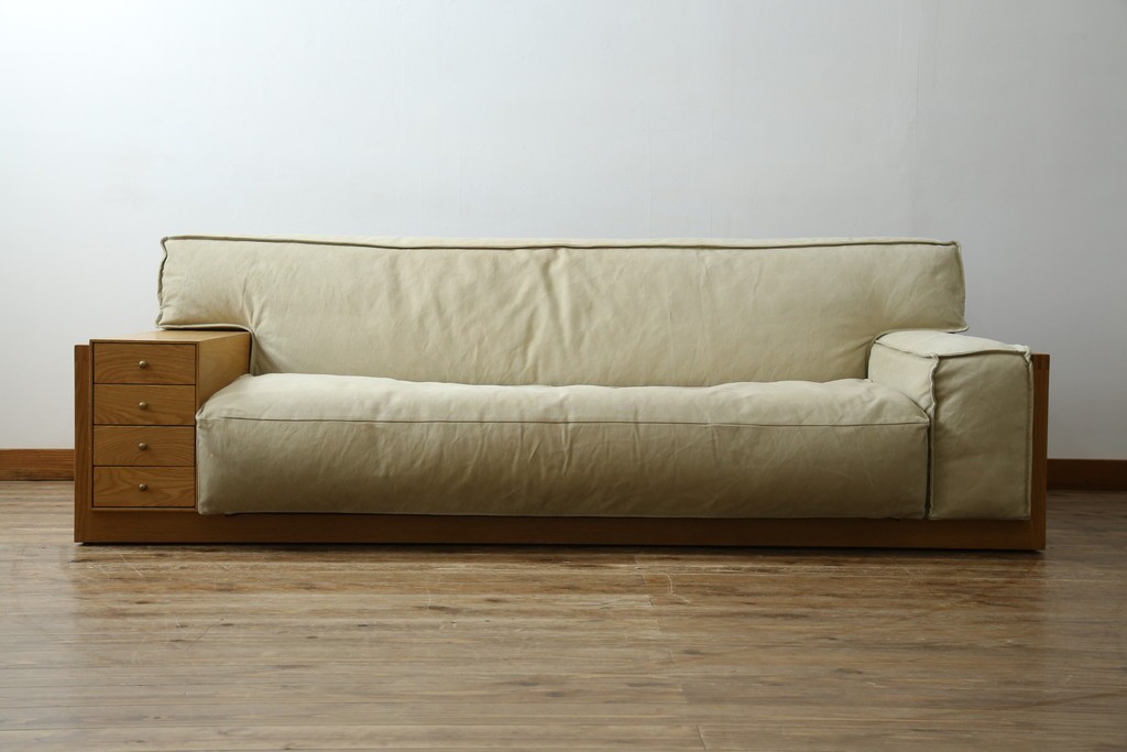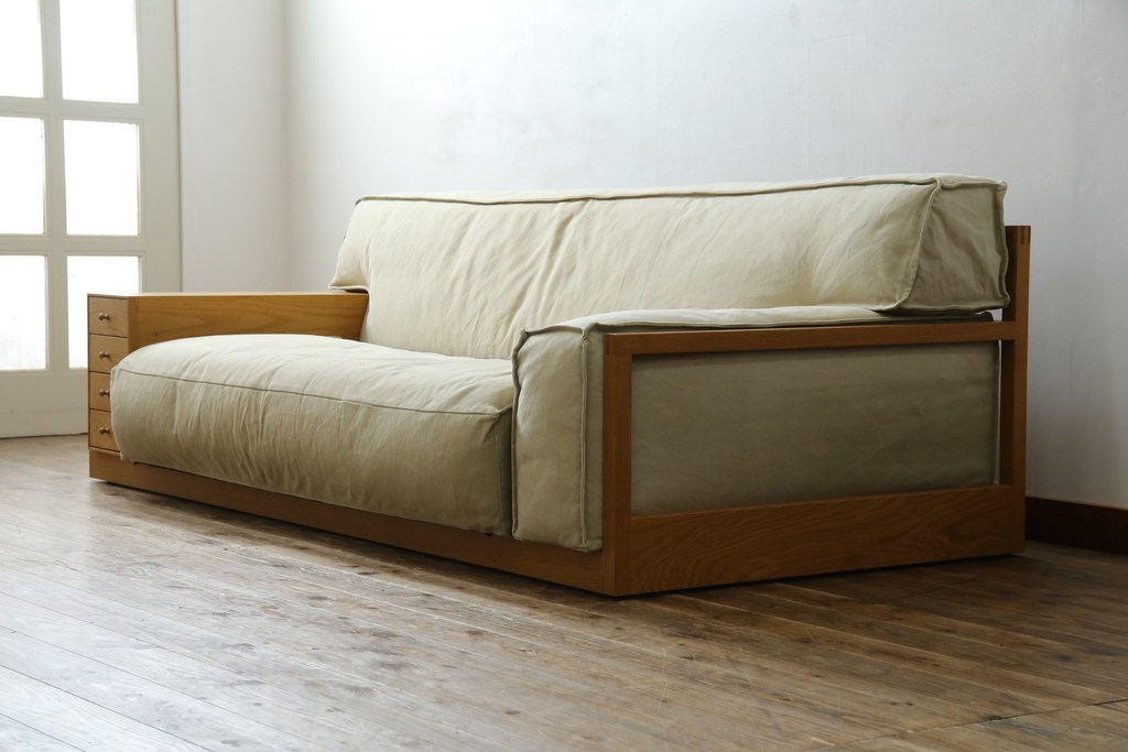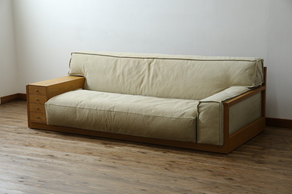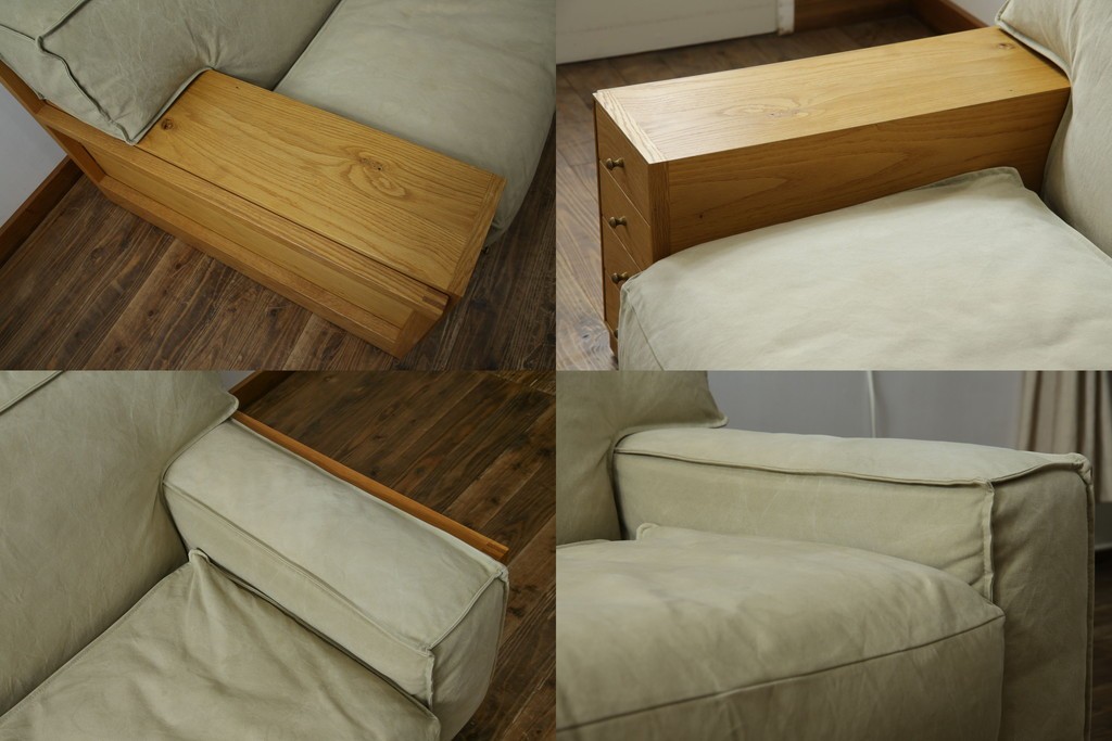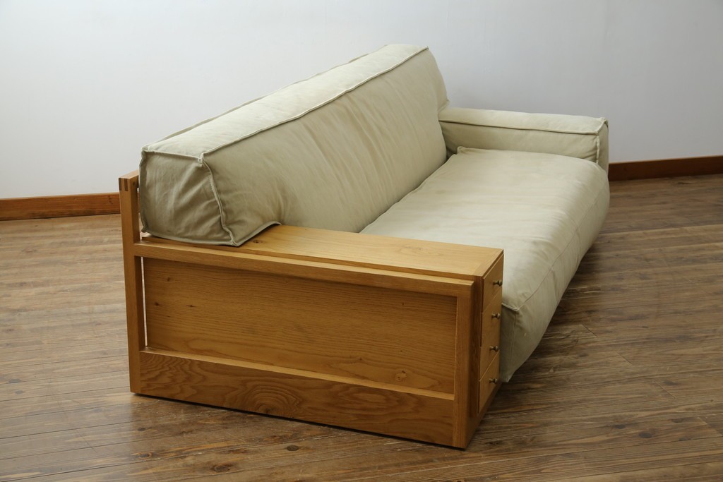 中古 広松木工 コルニーチェ(CORNICE) ブロックワンアーム ドロワータイプ 木の温もりと収納力を備えた機能美あふれる2.5人掛けソファ 定価約83万円相当 (R-084406)