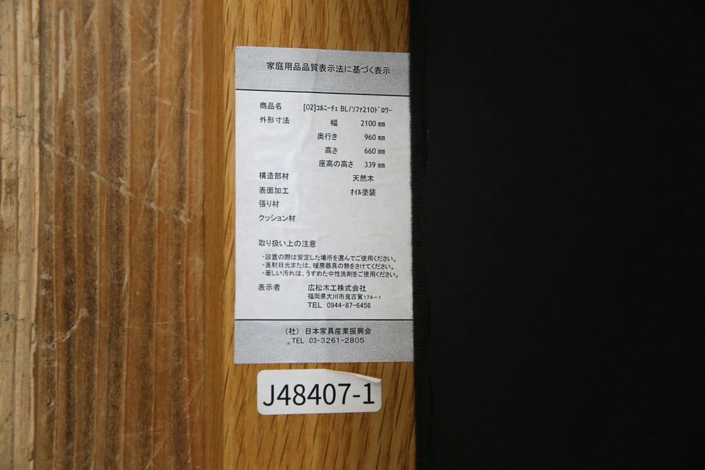 ソファ> 2人掛けソファ > 中古 広松木工 コルニーチェ(CORNICE) ブロックワンアーム ドロワータイプ 木の温もりと収納力を備えた機能美あふれる2.5人掛けソファ 定価約83万円相当 (R-084406)