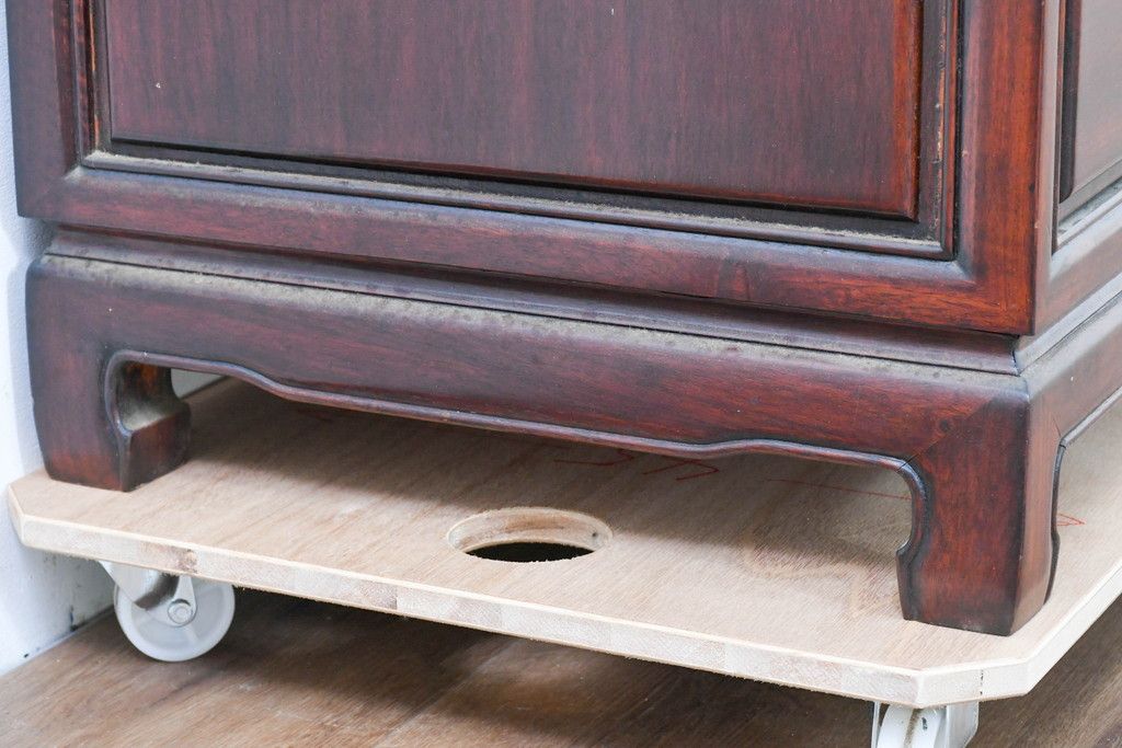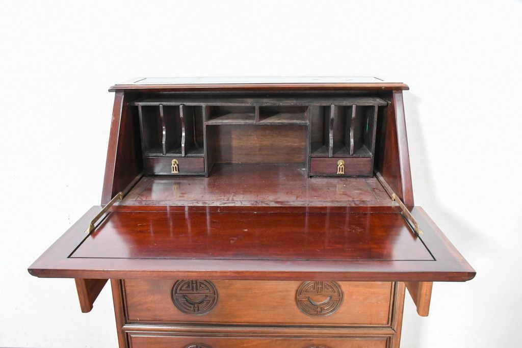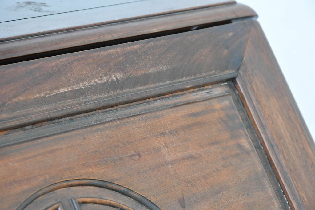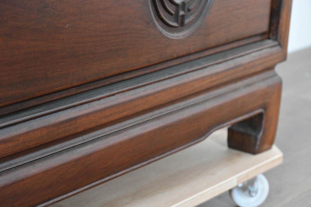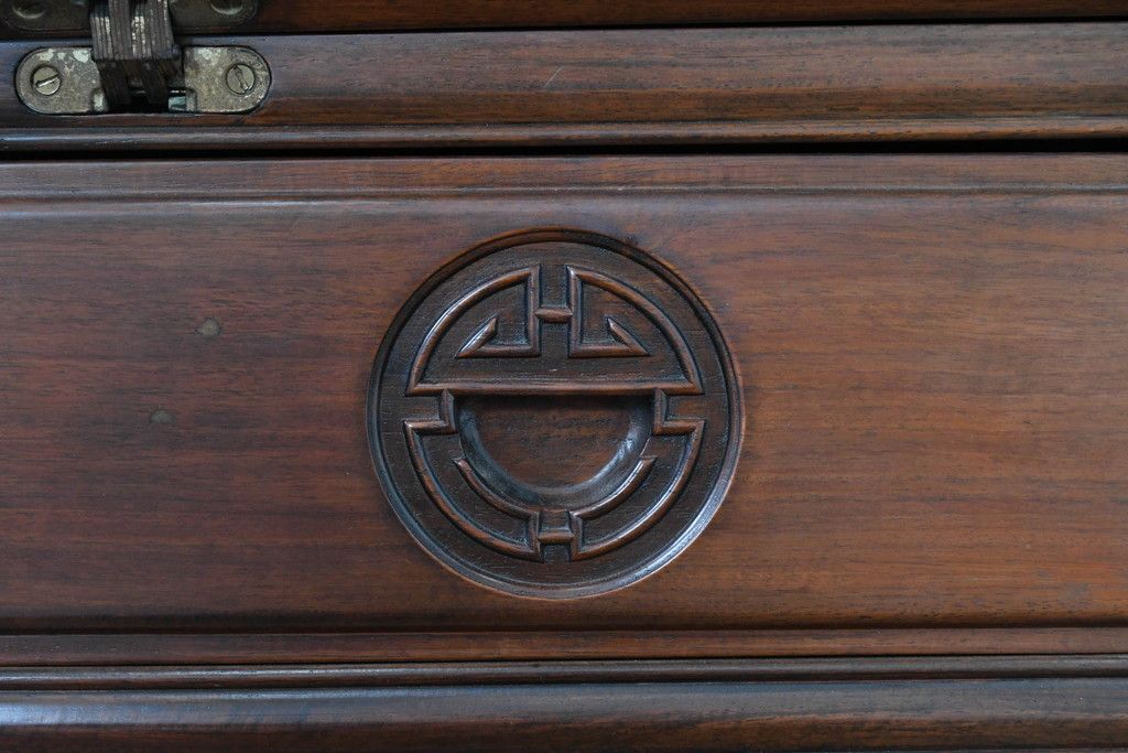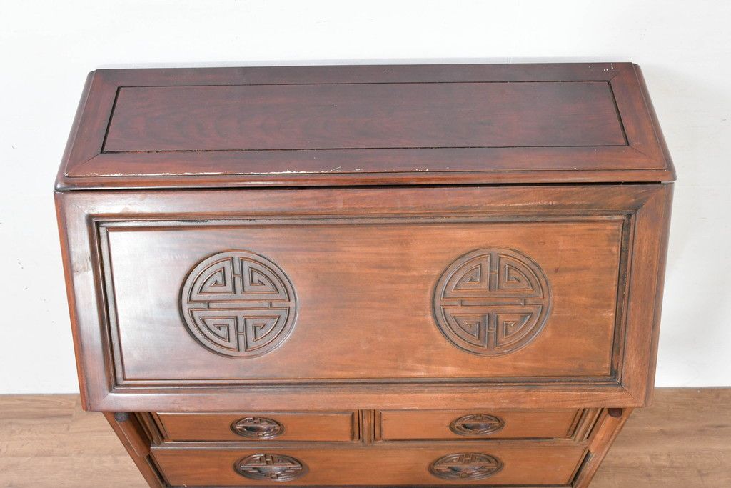 チェスト・引き出し> サイドチェスト > 中国ビンテージ 花梨(カリン)材 唐木 寿字文(じゅじもん)入り 縁起の良い彫刻装飾が施されたライティングビューロー(簿記机、ワークデスク、在宅用、在宅ワーク用、サイドチェスト、引き出し、ヴィンテージ)(R-084409)
