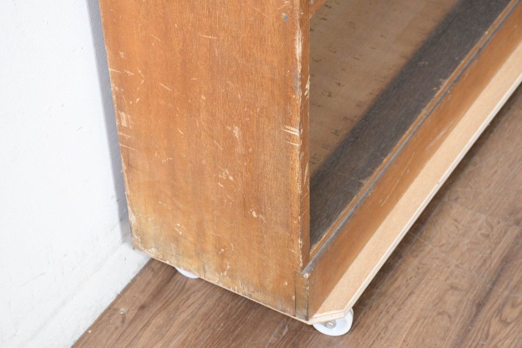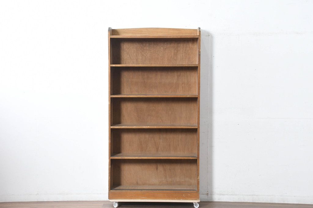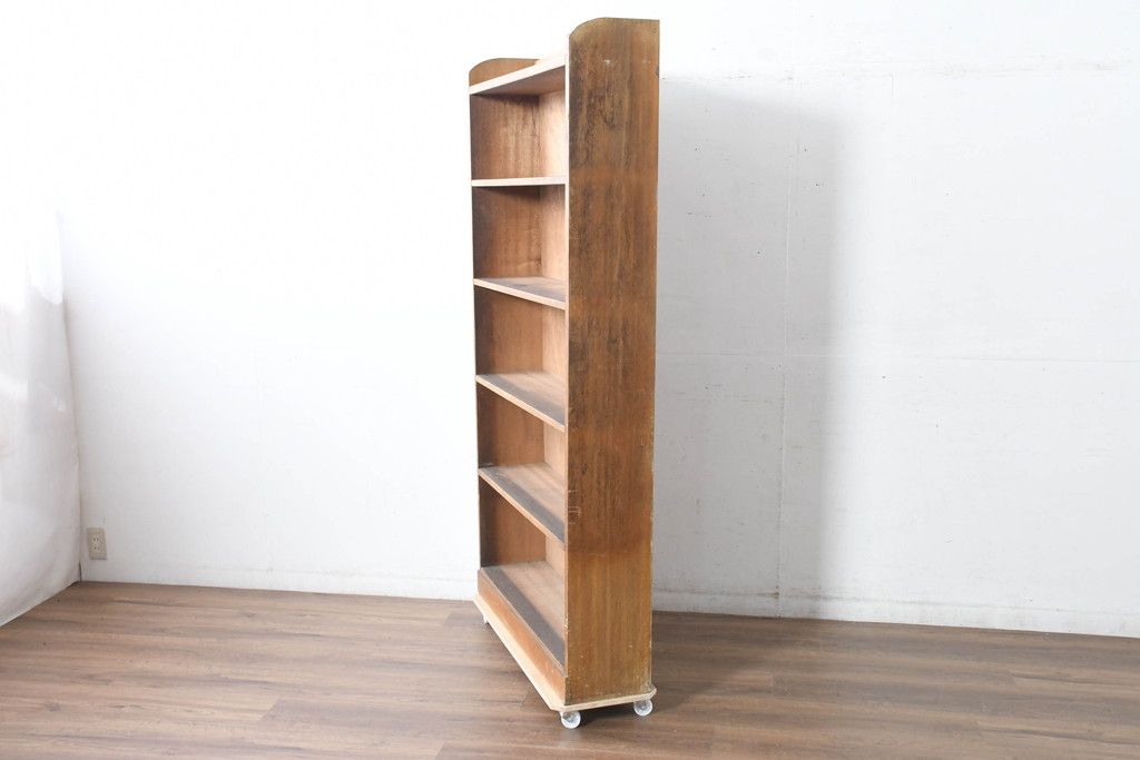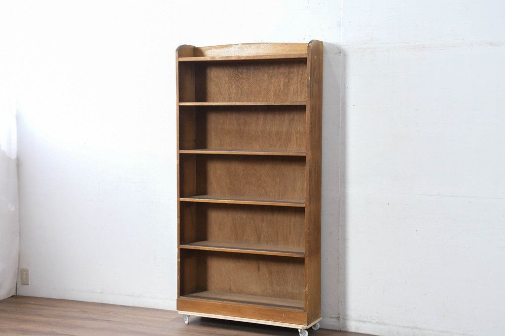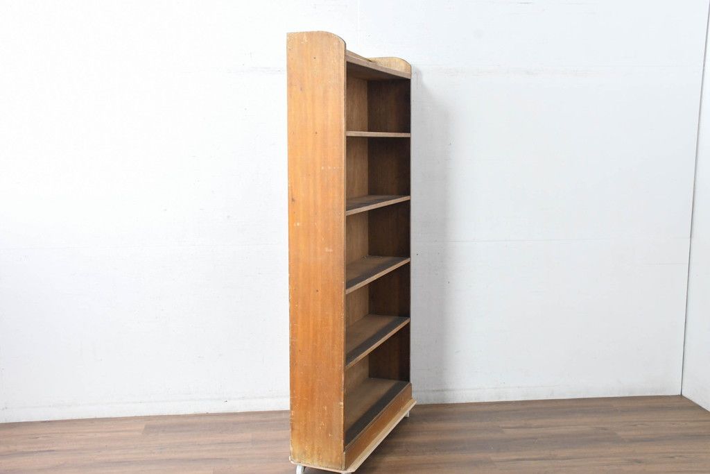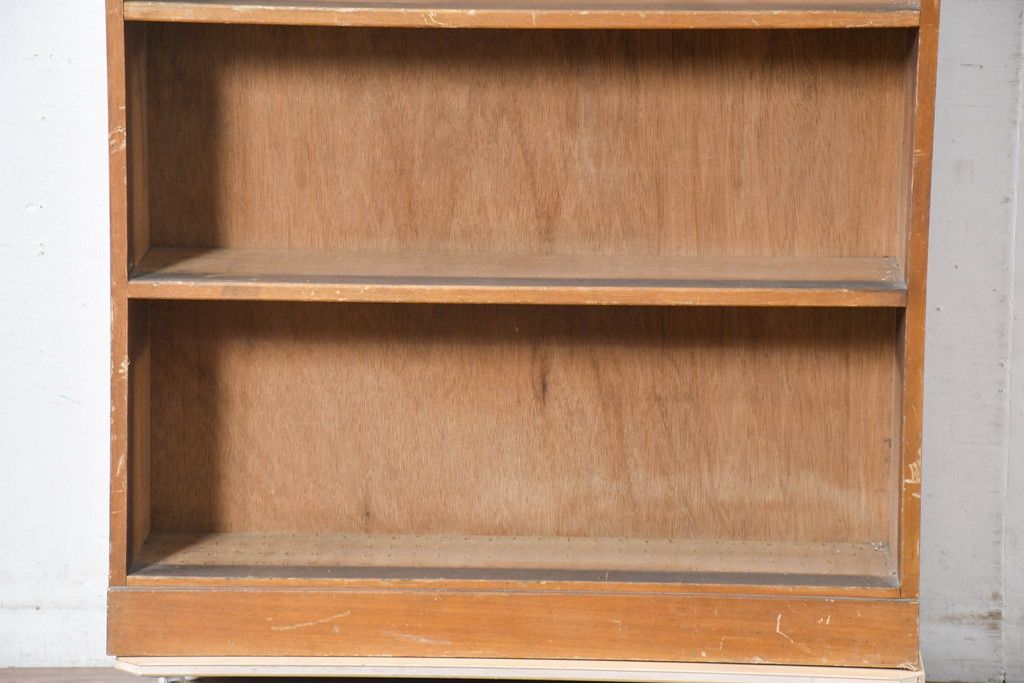和製アンティーク ラワン材のシンプルでレトロな本棚(飾り棚、陳列棚、オープンシェルフ、ブックシェルフ、ディスプレイラック、オープンラック、収納棚)(R-084412)