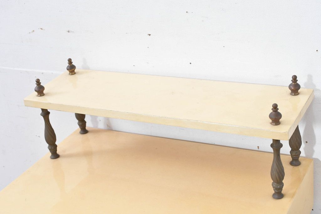 テーブル> コンソールテーブル > イタリアビンテージ 高級家具 アルド・トゥーラ(ALDO TURA) 仔山羊革張り 優雅な縦ラインを強調する三層構造と繊細な装飾脚が魅力的なサイドキャビネット(コンソールテーブル、サイドテーブル、飾り棚、ヴィンテージ)(R-084416)